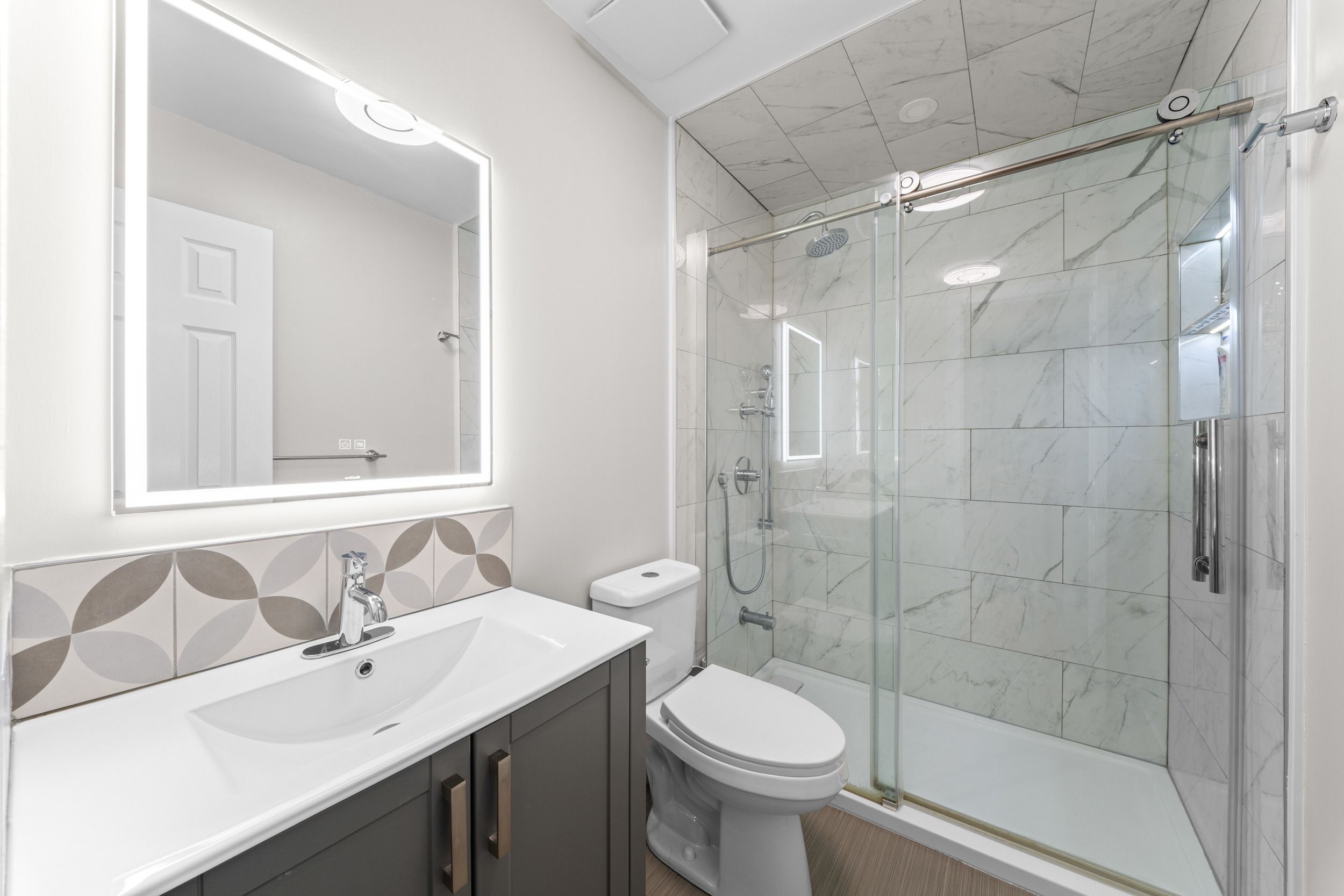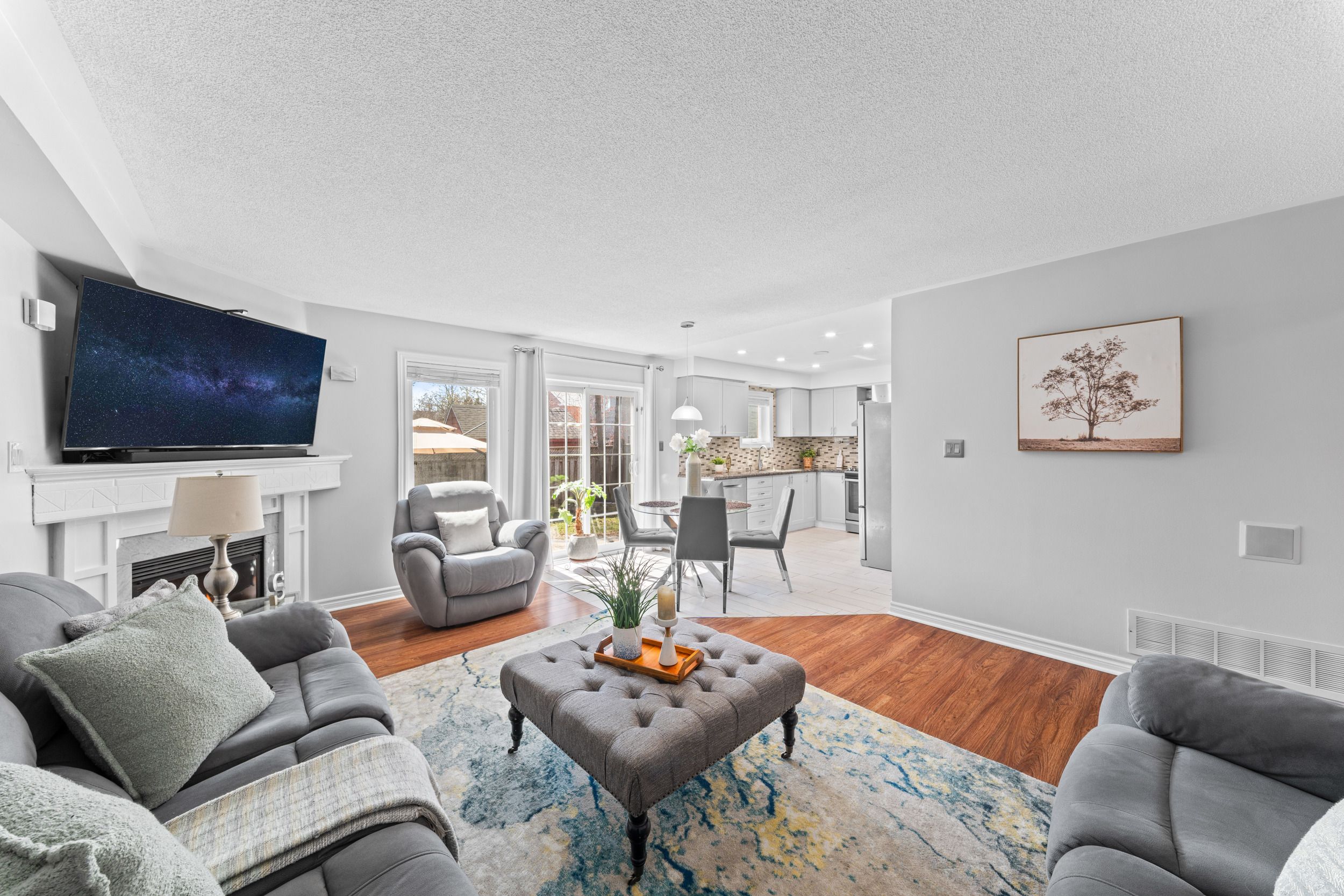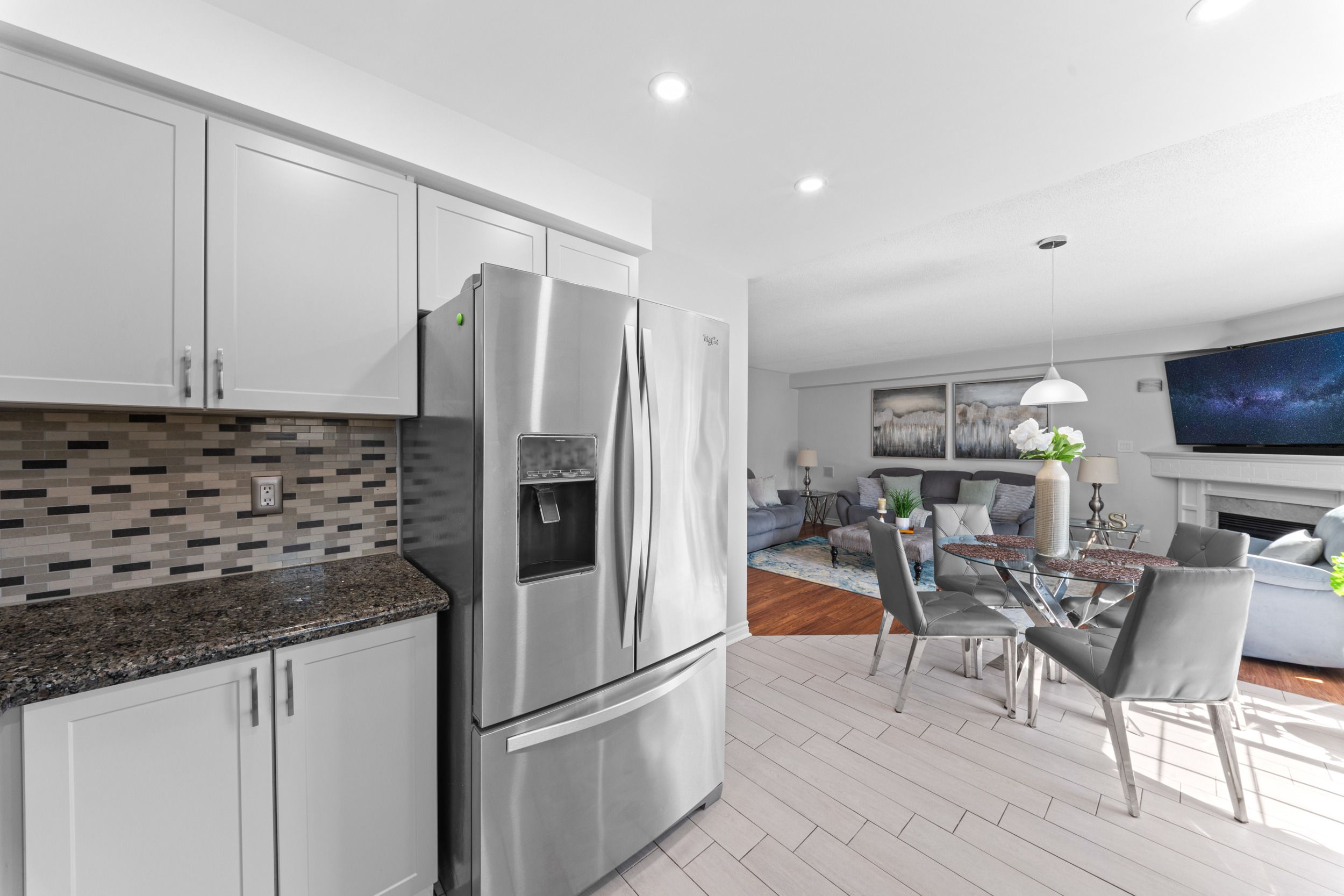 • Recently renovated kitchen with modern finishes and stainless steel appliances.