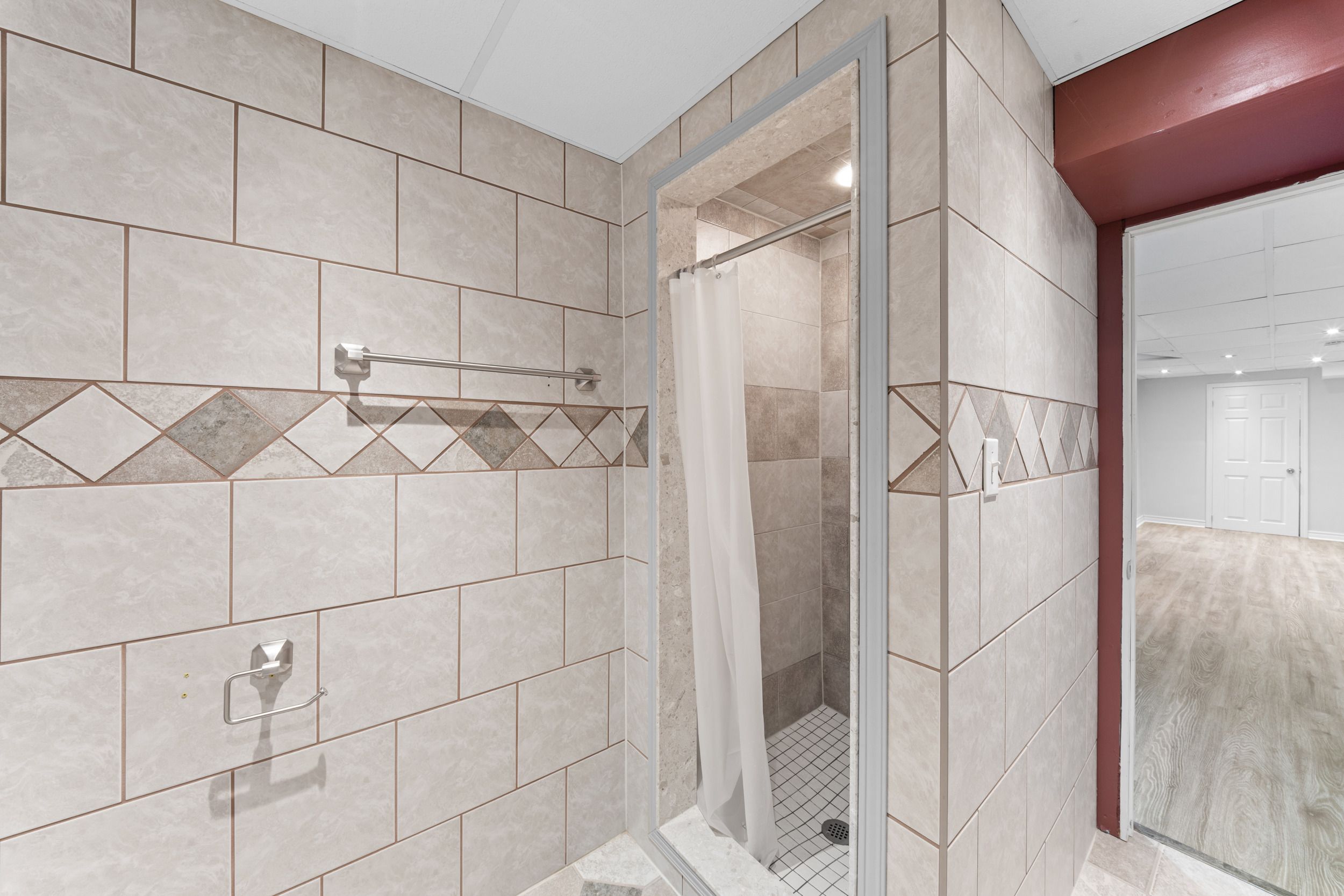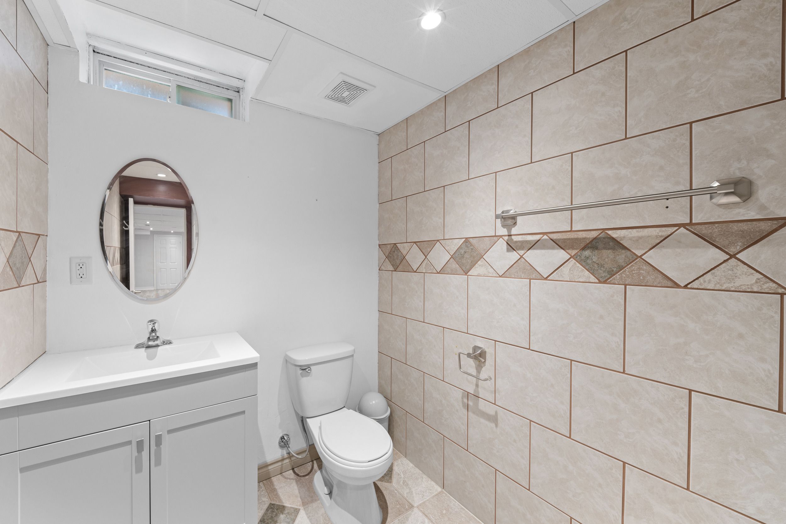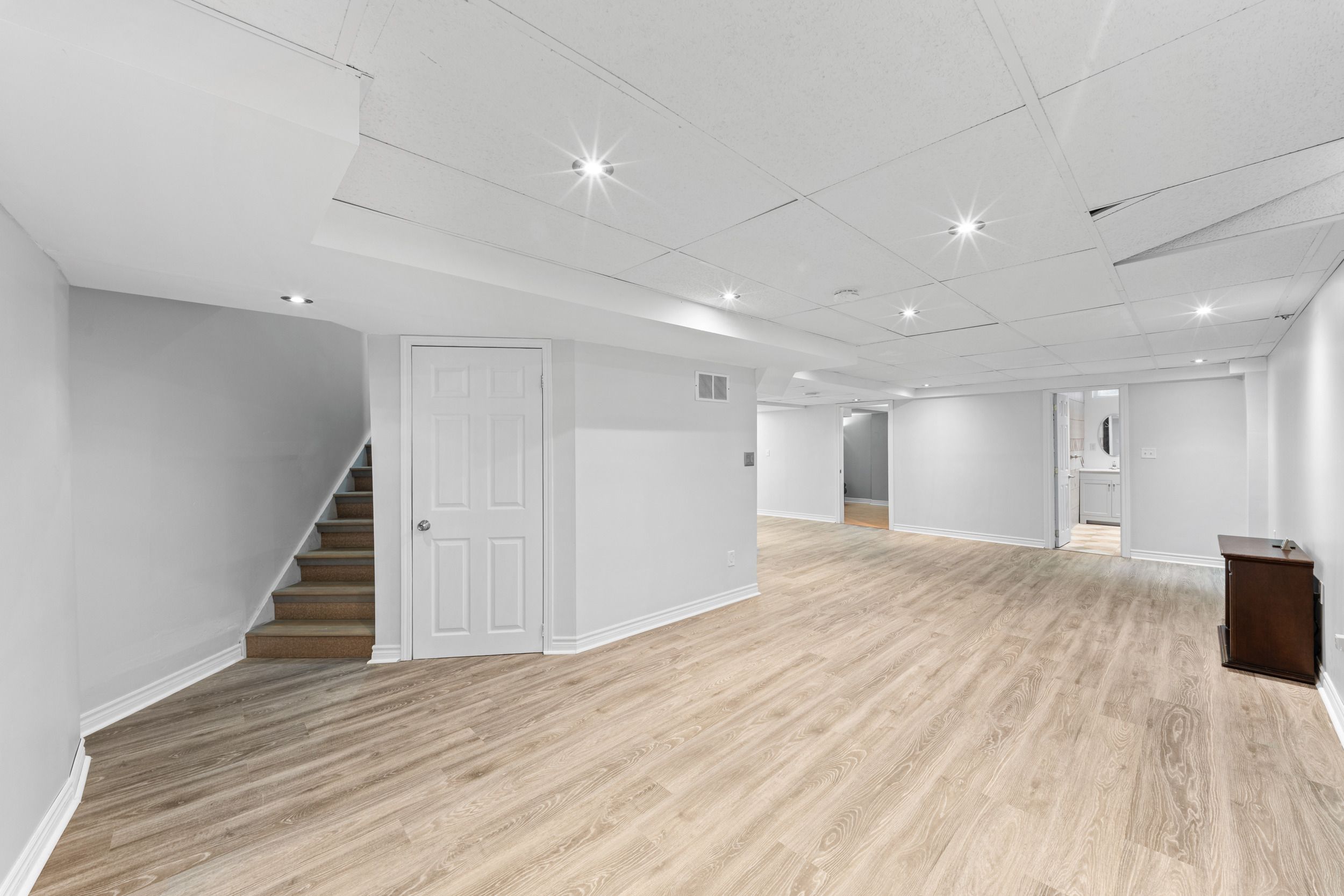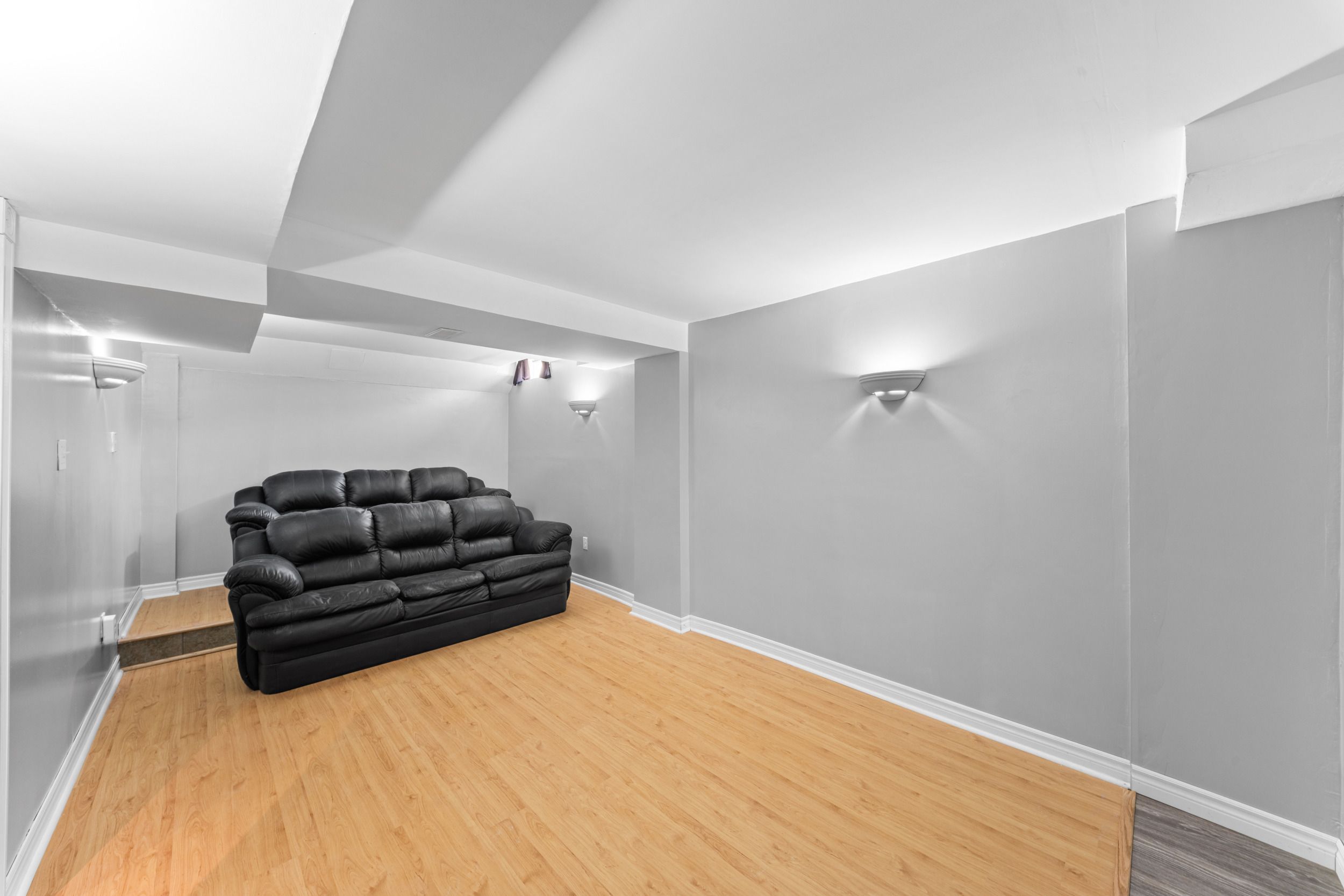• Finished basement includes a recreation area, wet bar, and extra bathroom.