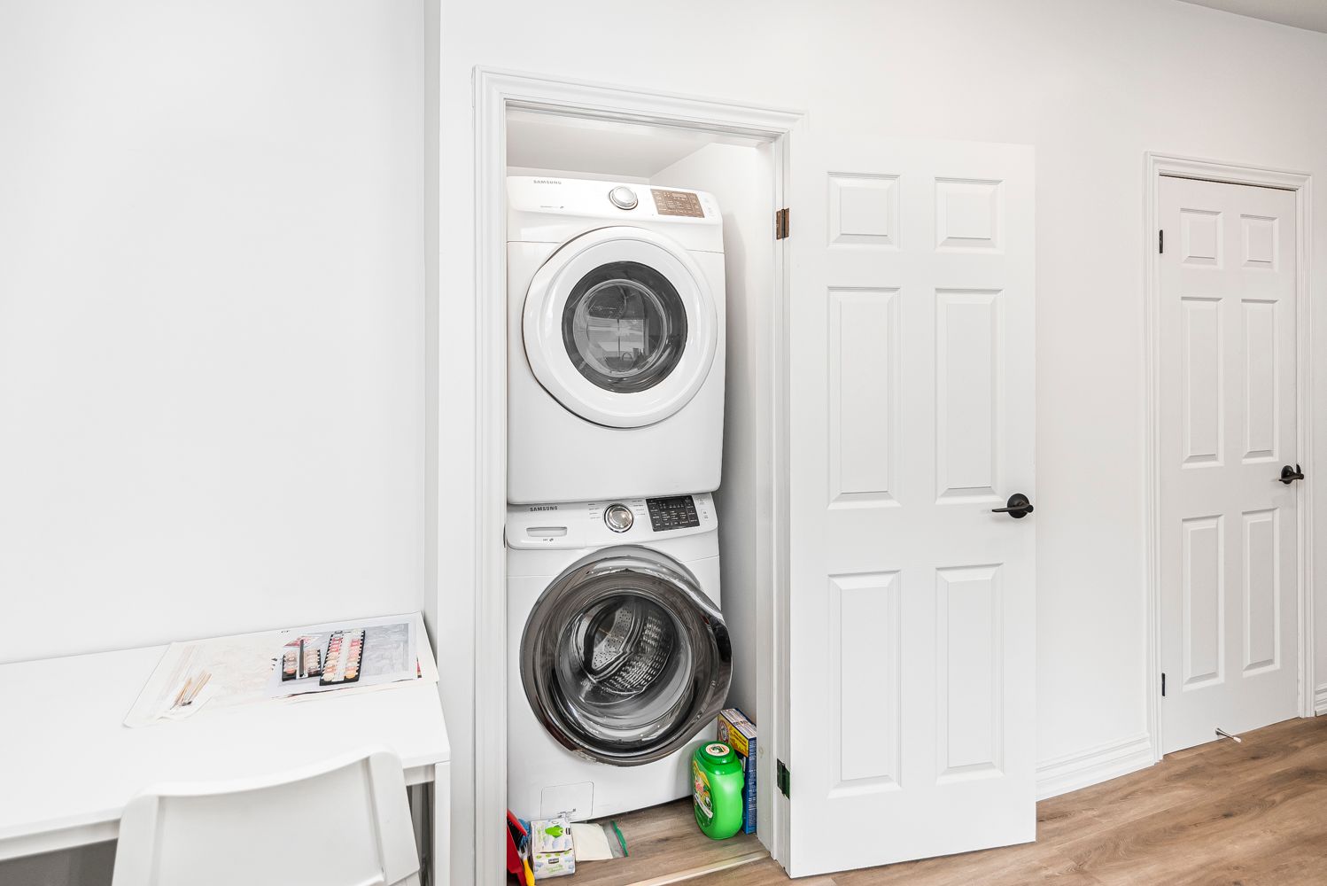 • Main floor unit with 2 bedrooms, in-unit laundry, and backyard deck.