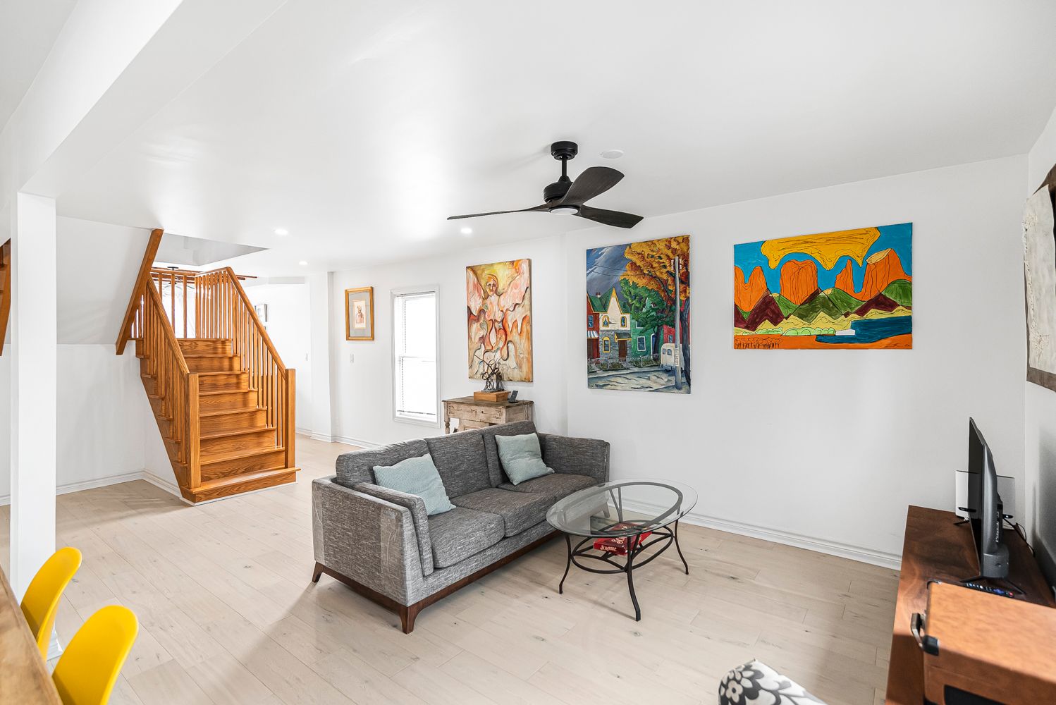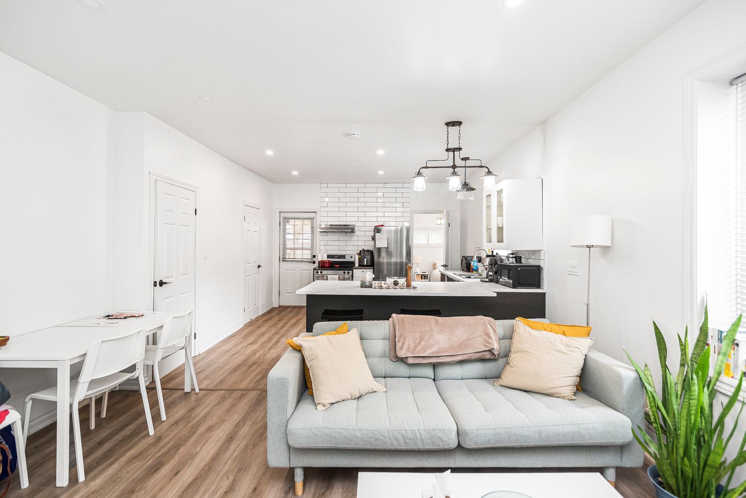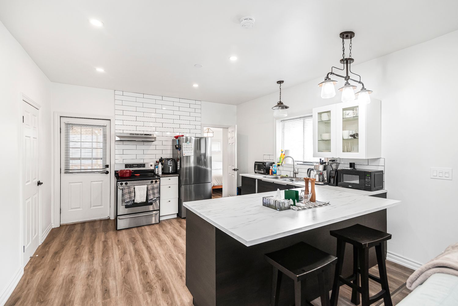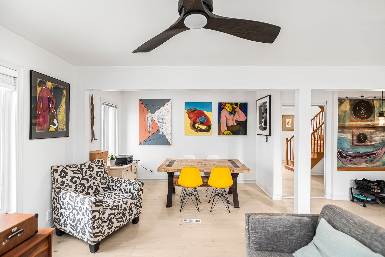 Two family home set up with separate entrances and separate hydro, offering flexibility for investors or buyers looking to live in one unit and use the other for extended family or income potential. Main floor unit is currently rented and features 2 bedrooms, open-concept kitchen with eating area and living room, 3-piece bathroom, and in-unit laundry. 9. 5 ft ceilings and tall windows add to the sense of space, and the kitchen offers a walk out to the backyard deck. Upper unit spans the second and third floors with open-concept kitchen, dining, and living area. The 2nd floor kitchen features exposed wood beams and walks out to a generous deck with fire escape. Third-floor loft features a spacious primary bedroom with vaulted ceiling, exposed beams, heat pump for heating and cooling, and laundry. Updated flooring, freshly painted, and tasteful lighting fixtures throughout. Furnace and water heater approximately 4 years old. Unfinished basement. Double detached garage off alley plus 2-car interlocking driveway at the front. Ample green space in fully fenced backyard. Located in west hamilton on a family-friendly street, just minutes to locke street shops, restaurants, and cafés, dundurn castle, the waterfront, and mcmaster university, with convenient access to transit and major routes.