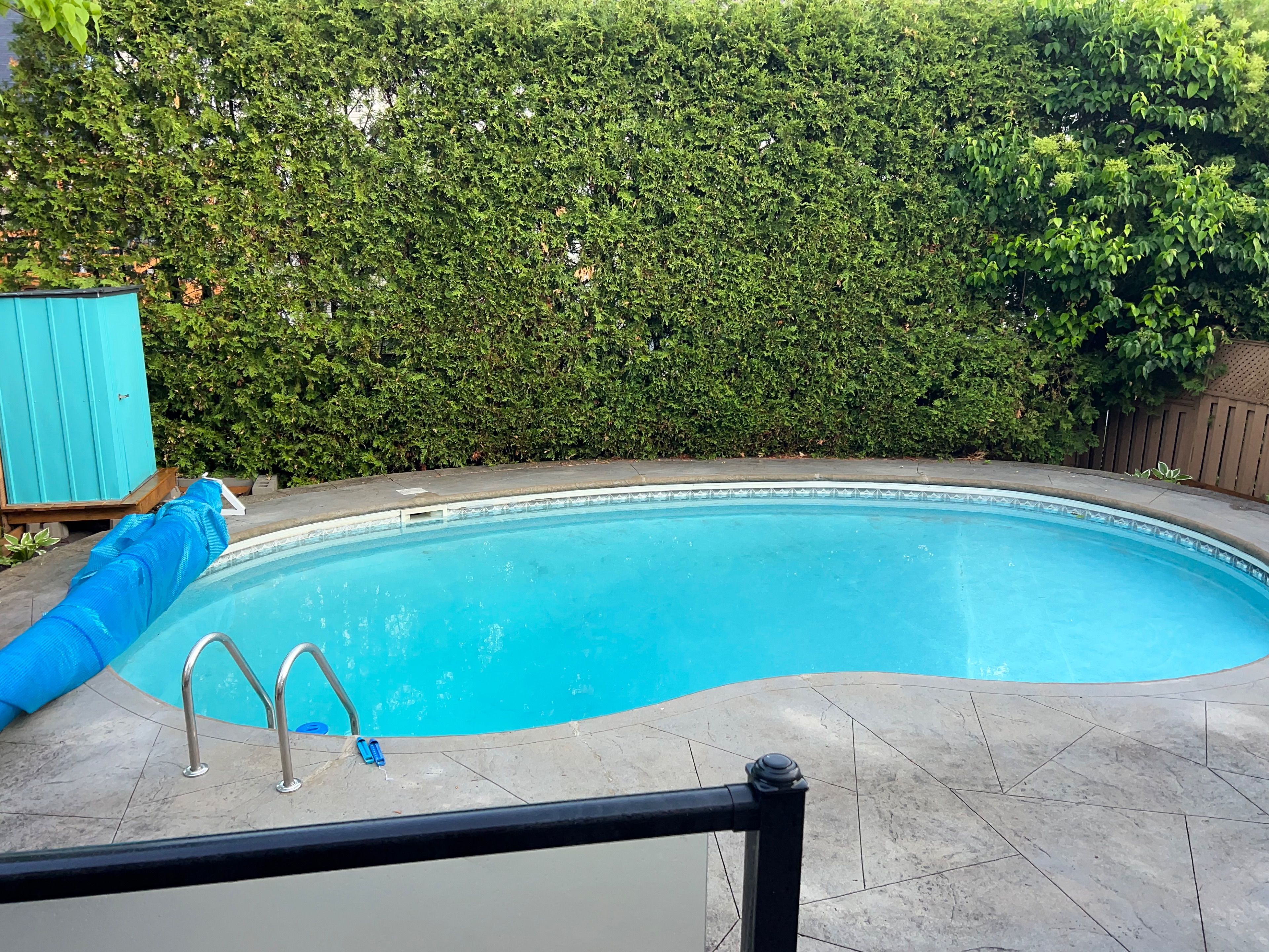 • Beautiful backyard oasis featuring a heated pool and gazebo.