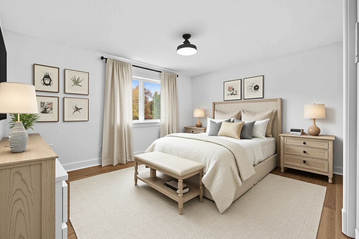 • Spacious primary bedroom with ensuite and walk-in closet.