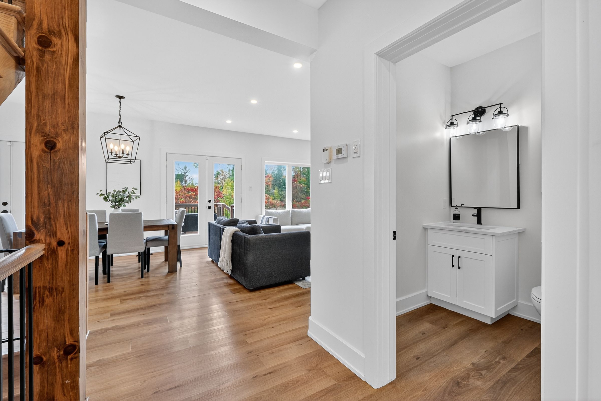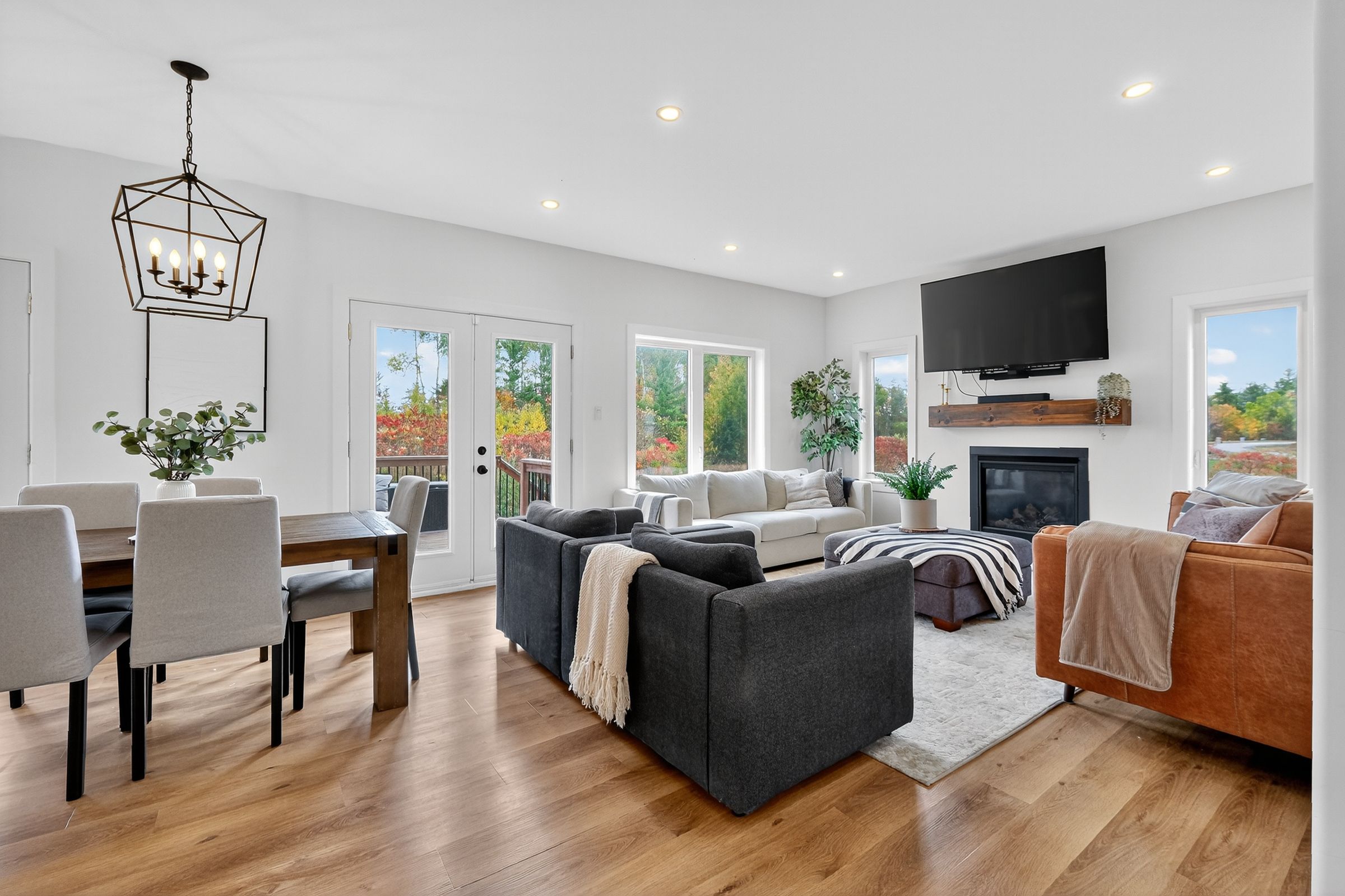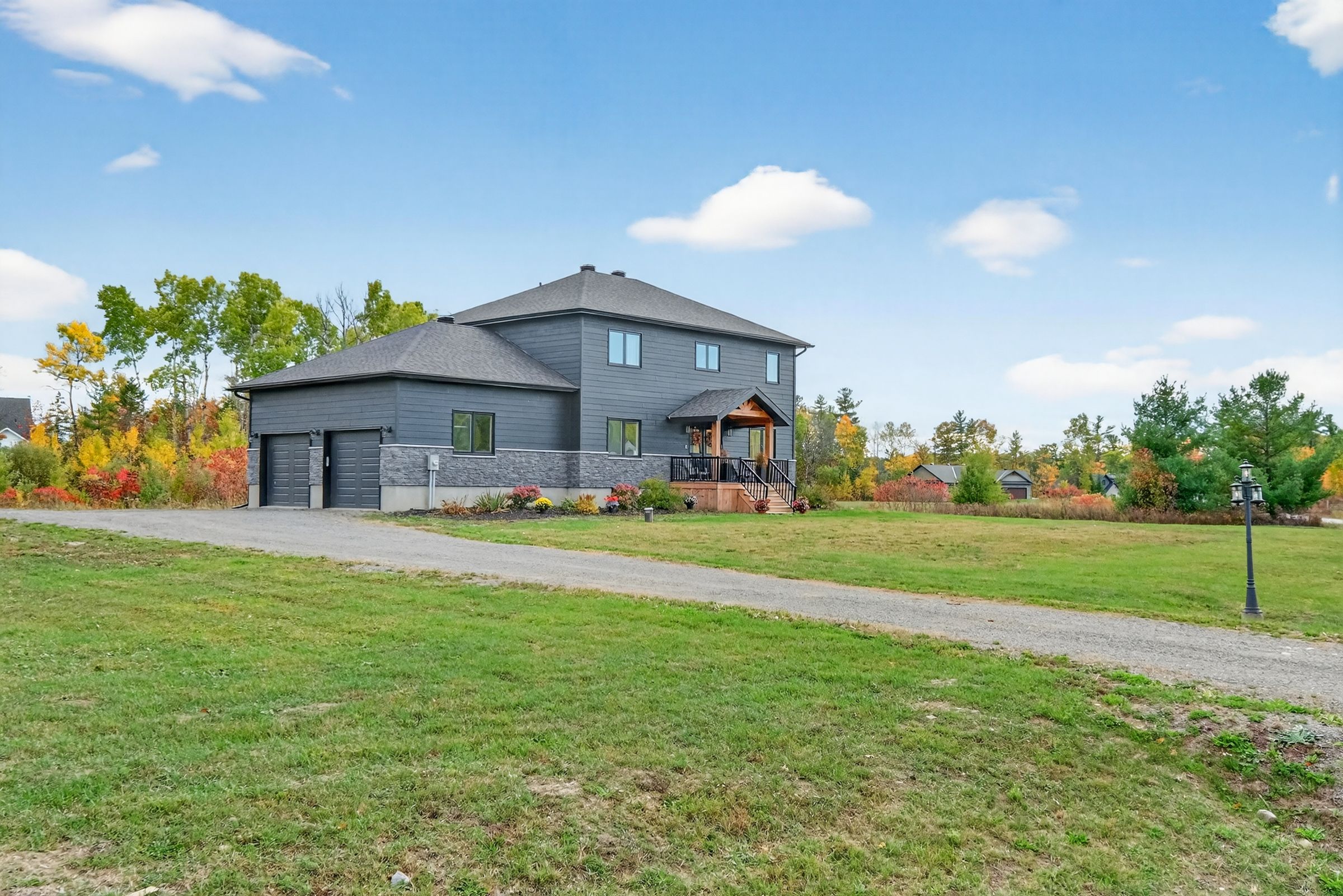 Beautiful & peaceful country living in the madawaska shores area is move-in ready for your family and pets to run and play. Fabulous 2021 custom built two-storey home sits on 2. 5 acres with close to 2500 sq' of living space above grade, and another approx 1200 sq' in the basement. A covered front porch welcomes you into this carpet-free home with wood-look luxury vinyl plank flooring, marble-inspired ceramic tile, sophisticated oak & black iron railings, refined light fixtures, and a neutral color palette throughout. Two of the 4 bedrooms have walk-in closets, with one conveniently located on the main floor which serves perfectly as an office/den through french doors off the foyer. The 3 bathrooms include a powder rm on the main and two full bathrms on the upper level. Open-concept main floor with 9' ceilings features a pristine kitchen equipped with white cabinetry, quartz countertops, 7 premium stainless-steel appliances, a butler's pantry and a generously sized walk-in pantry, plus a huge mudrm with convenient access from garage to kitchen. Clear sightlines to family and guests from kitchen to dining area and living rm, with a gas fireplace and two sets of double glass doors to a rear deck perfect for enjoying the sights and sounds of nature and stunning sunsets. Second floor comprises a spacious primary bedrm with walk-in closet and a 5-piece ensuite featuring double vanity sinks, soaker tub, and generous walk-in glass shower. Two additional bedrms are bright and roomy, each with double closets; plus a 4-piece bathrm, laundry rm, and two expansive linen closets. Basement level features floors of same luxury vinyl as the rest of the house, walls finished and trimmed, and a roughed-in bathrm. Lots of space for more bedrms. Deep 2-car garage plus driveway parking for 8+ is ideal for contractor vehicles, rvs & boats. Short 10-minute drive to shopping, restaurants and hwy 417. Approx 30 minutes to kanata, and 60 minutes to downtown ottawa. Don't miss this beauty!