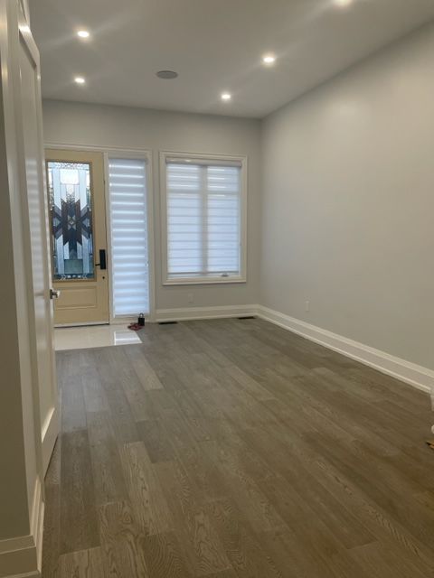Beautiful 2-storey luxury custom home, stone, brick and stucco finished exterior with large windows, stone interlocked double driveway, 11ft ceiling in main flr, 10ft ceiling in 2nd floor. 5 bedrooms and 5. 5 washrooms, 4 bedrooms w/ensuite wr. Main lever powder room, engineered hardwood floor all throughout, zebra blinds, 8ft high doors, led pot lights and light fixtures, open concept family and kitchen, built-in microwave & stove, quartz counter, two kitchen sinks w/ faucets in kitchen, w/o (floor to ceiling) large door family to deck, main floor office, master bed w/o balcony, 5 pc ensuite, walk in closet w/organizer, 2nd floor laundry, mezannine above garage (in-between) bed w/ensuite, spray-foam insultation in all walls. Hi efficiency commercial grade water heater, fenced backyard, skylight, school, place of worship, go, ttc.