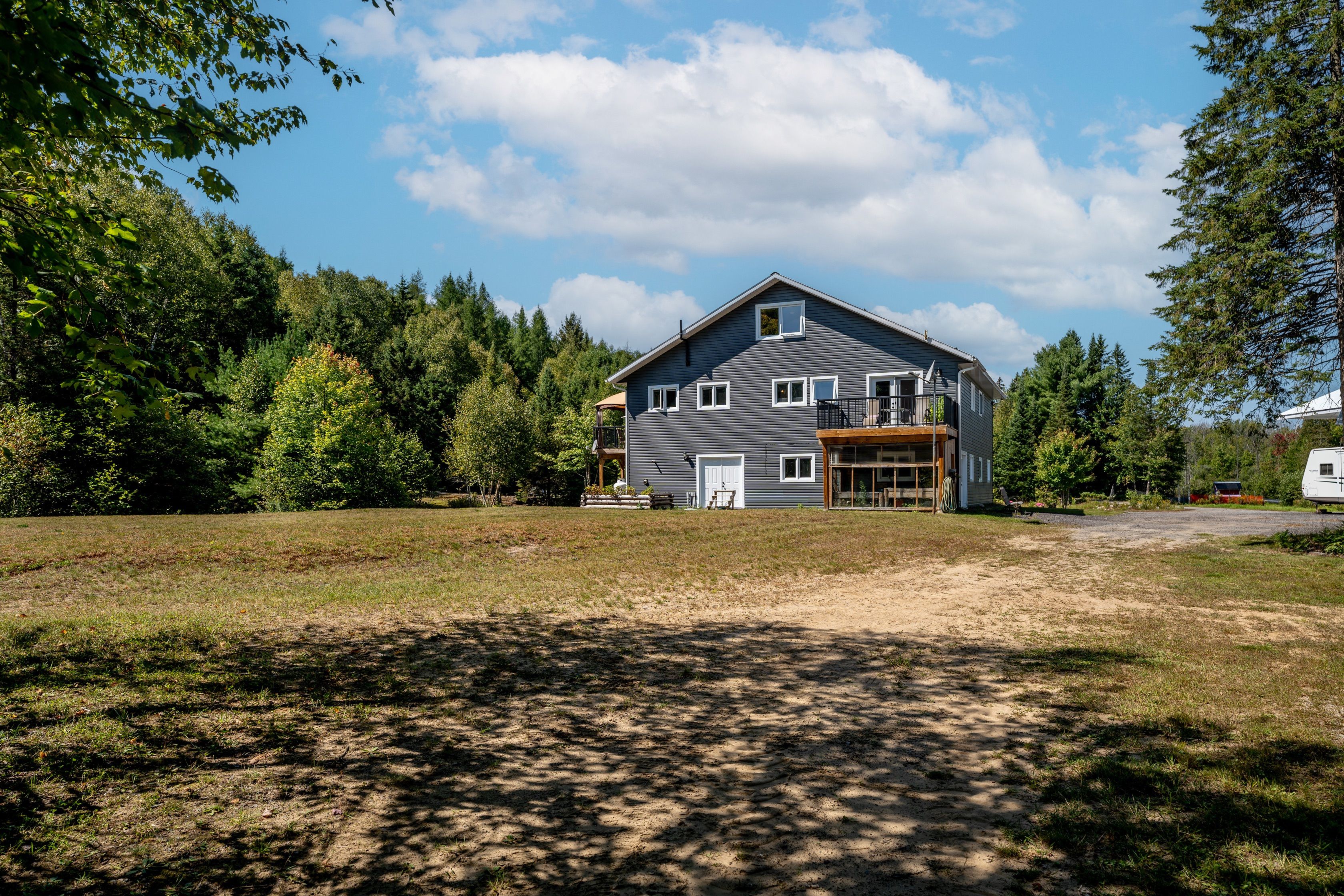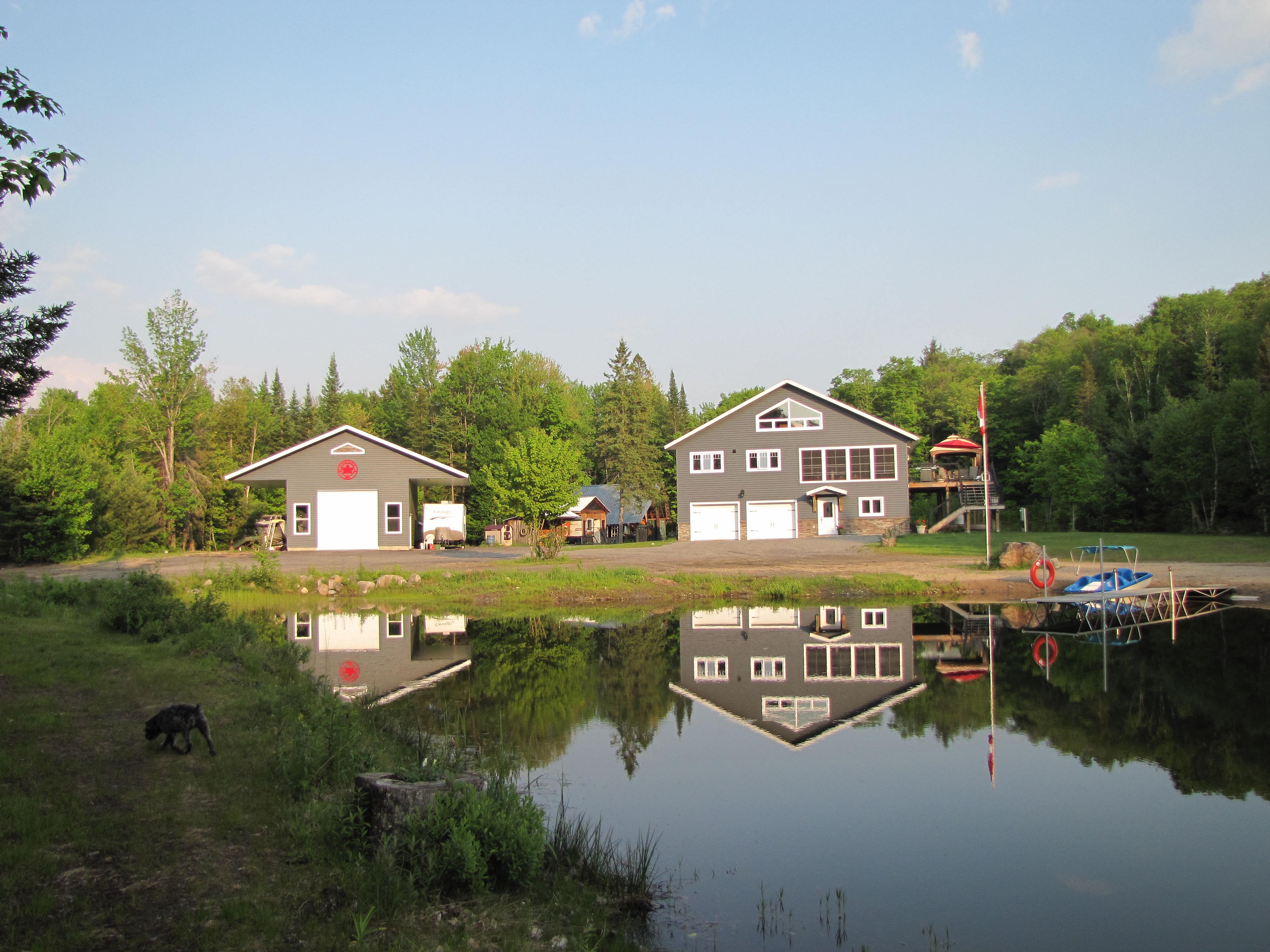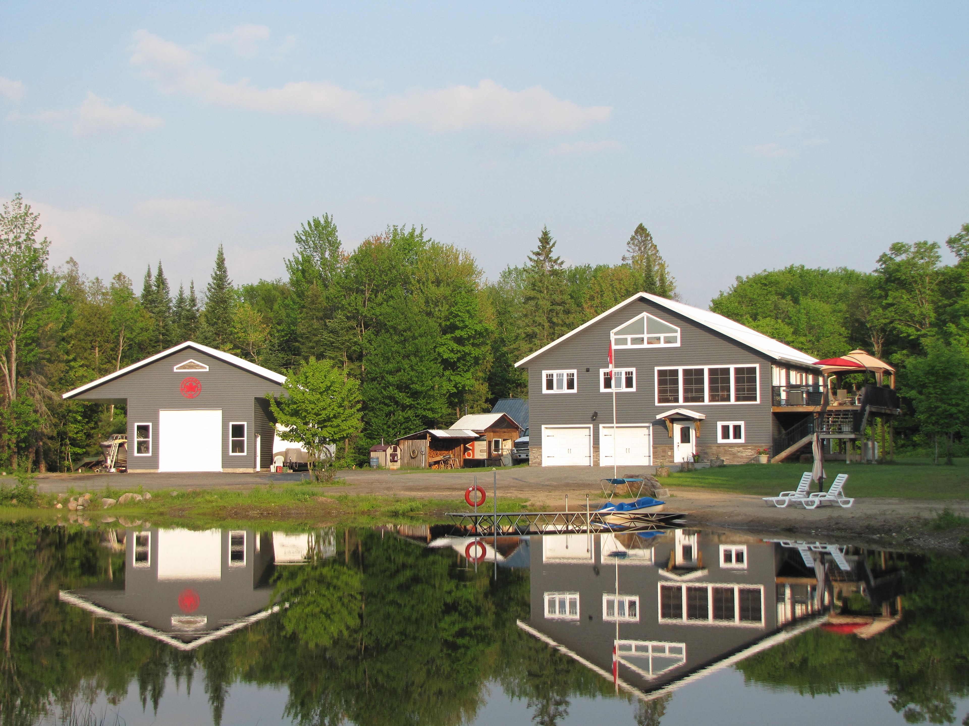 Now hooked up to hydro! This truly unique north muskoka living experience boasts 24+ acres complete with a beautiful 12' deep spring fed pond & sandy beach area ~ perfect for swimming in! Only 15 min north of huntsville with trails throughout the property + sugar maple trees to make your own syrup & tons of firewood to feed the outdoor boiler. Built in 2015, this lovely family home was designed for self sufficiency in mind including icf to the rafters to maximize energy efficiency. Recently connected to hydro grid with solar power & generator back-up. Enjoy 3400 sf on 3 levels making this the perfect multi-generational home. The ground floor (in-floor heat) offers a larger foyer, 2 guest bedrooms, 3-pce bath, utility rm, super large mudroom w/loads of storage + access to the oversized dbl garage. The adjacent workshop with w/o is a bonus while the convenient "dumb waiter" in the mudroom transports your groceries to the kitchen above! Main floor offers an open concept plan with a very spacious kitchen that features a new backsplash, loads of oak cupboards, pantry & 9' island. Good sized dining & living areas provide the ideal entertaining space w/access to the jumbo sized sundeck & 10x20 3-season muskoka rm overlooking the pond. You will also find a 2-pce powder rm, laundry & office/nursery off the primary bedroom complete w/5 pce ensuite, wic & w/o to your own private deck. The 3rd level hosts a 4th bedroom & spacious games room/workout space w/exceptional views of the pond. Many outbuildings include a chicken coop, insulated bunkie, 32x28 pole barn for all your equipment & wood shed. The best part is the 24'x34' detached garage/shop with carports on either side for storing your rv, boat or tractor. Cozy in-floor heat so you can work on yourequipment throughout the winter. This property is truly a hidden gem especially for those that love the outdoors. Snowmobiling, atving, hiking, hunting or simply enjoying the beautiful surroundings~it's all here waiting for you!