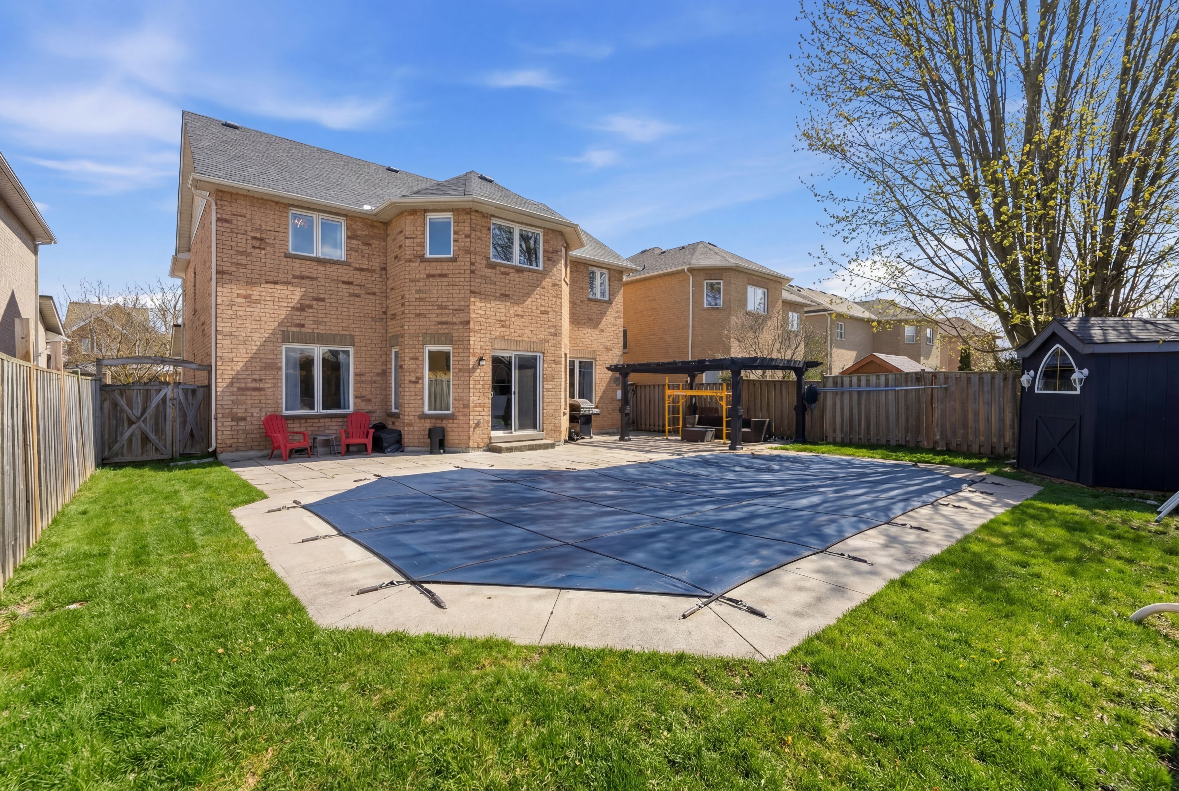 • Private landscaped backyard with an inground saltwater pool and gazebo.