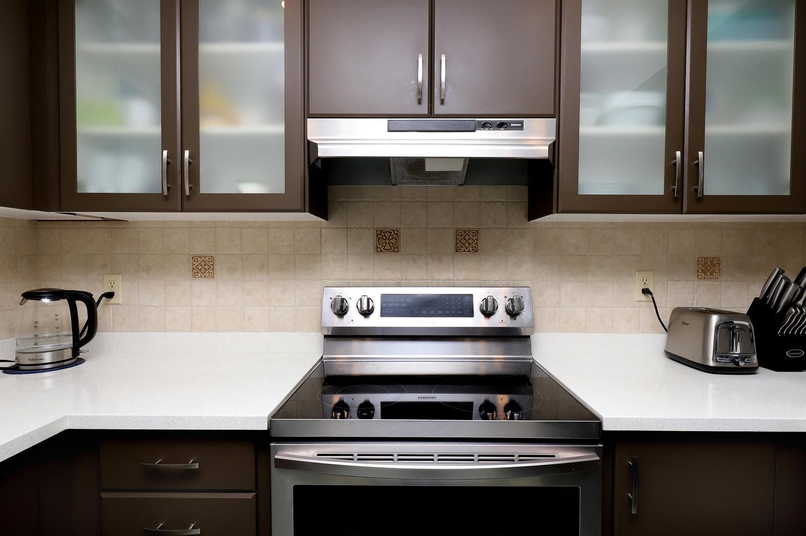 • Renovated kitchen featuring quartz countertops and stainless steel appliances.