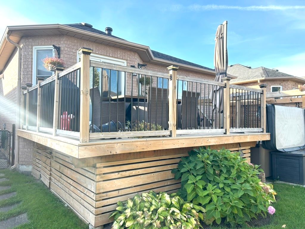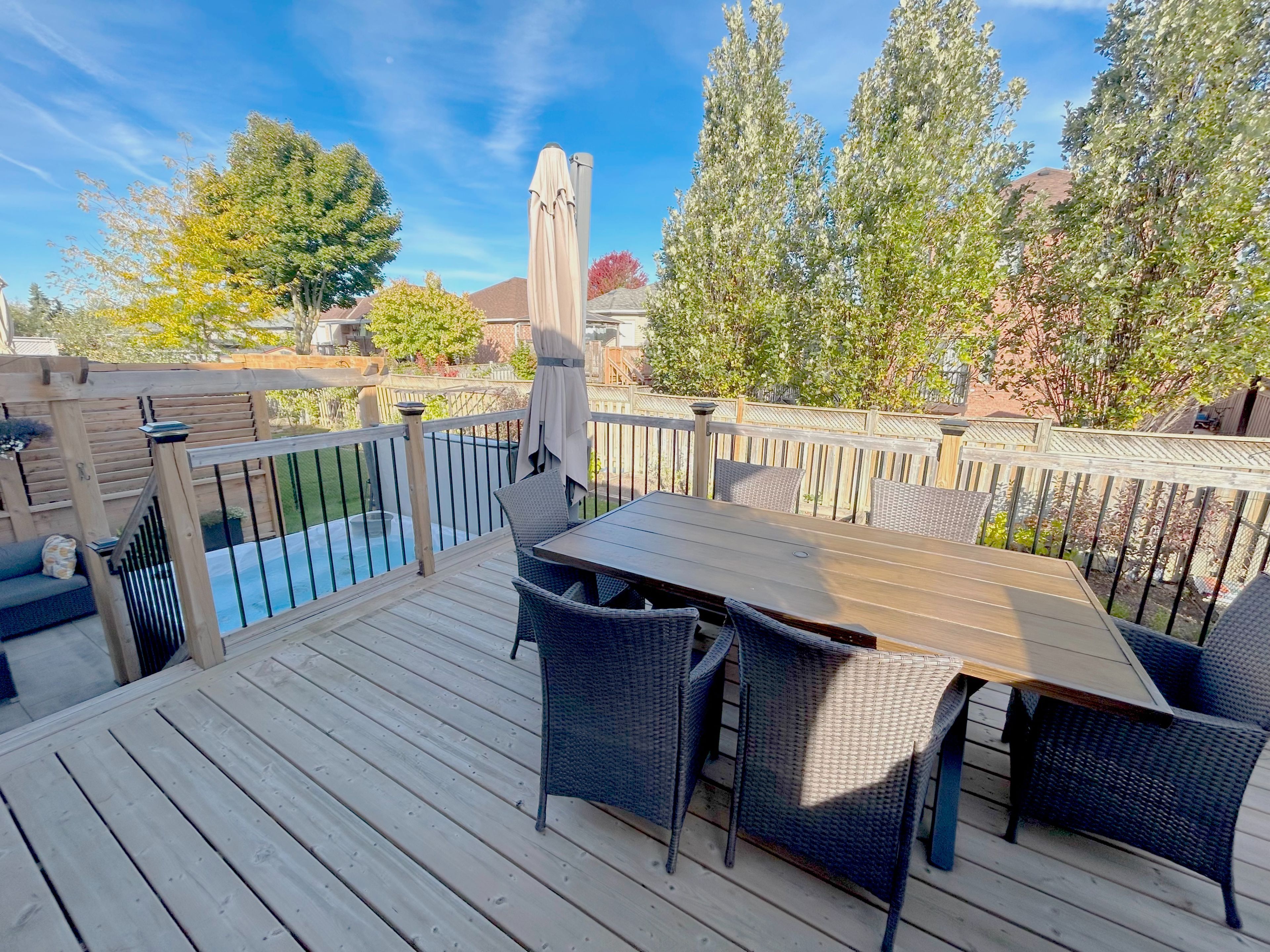 • Backyard designed for entertaining with upper deck and lower patio.