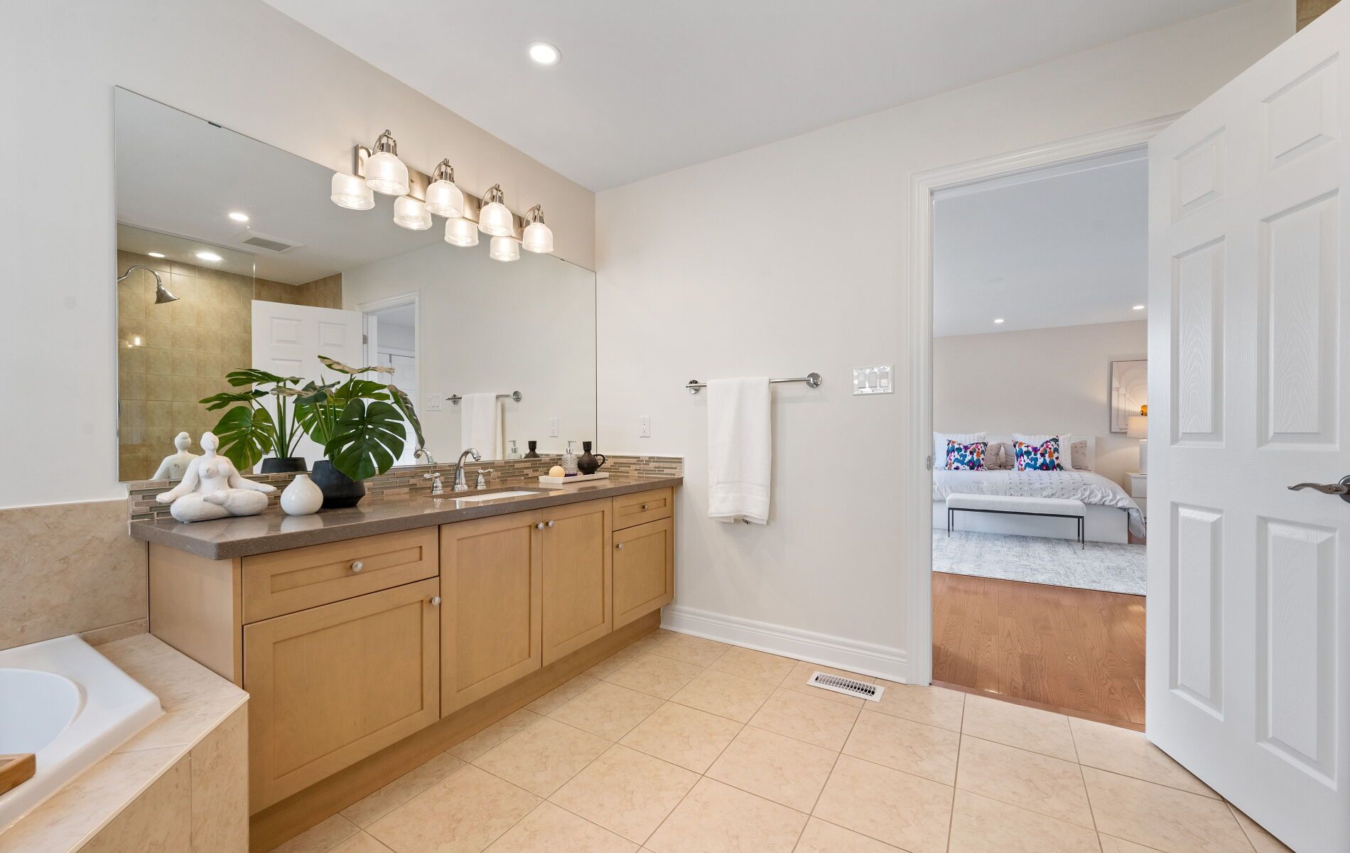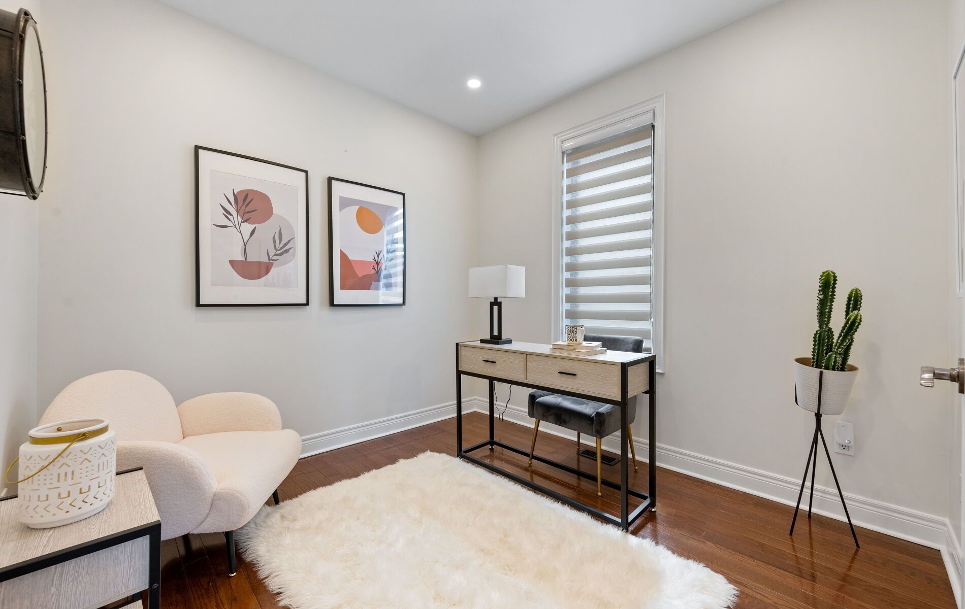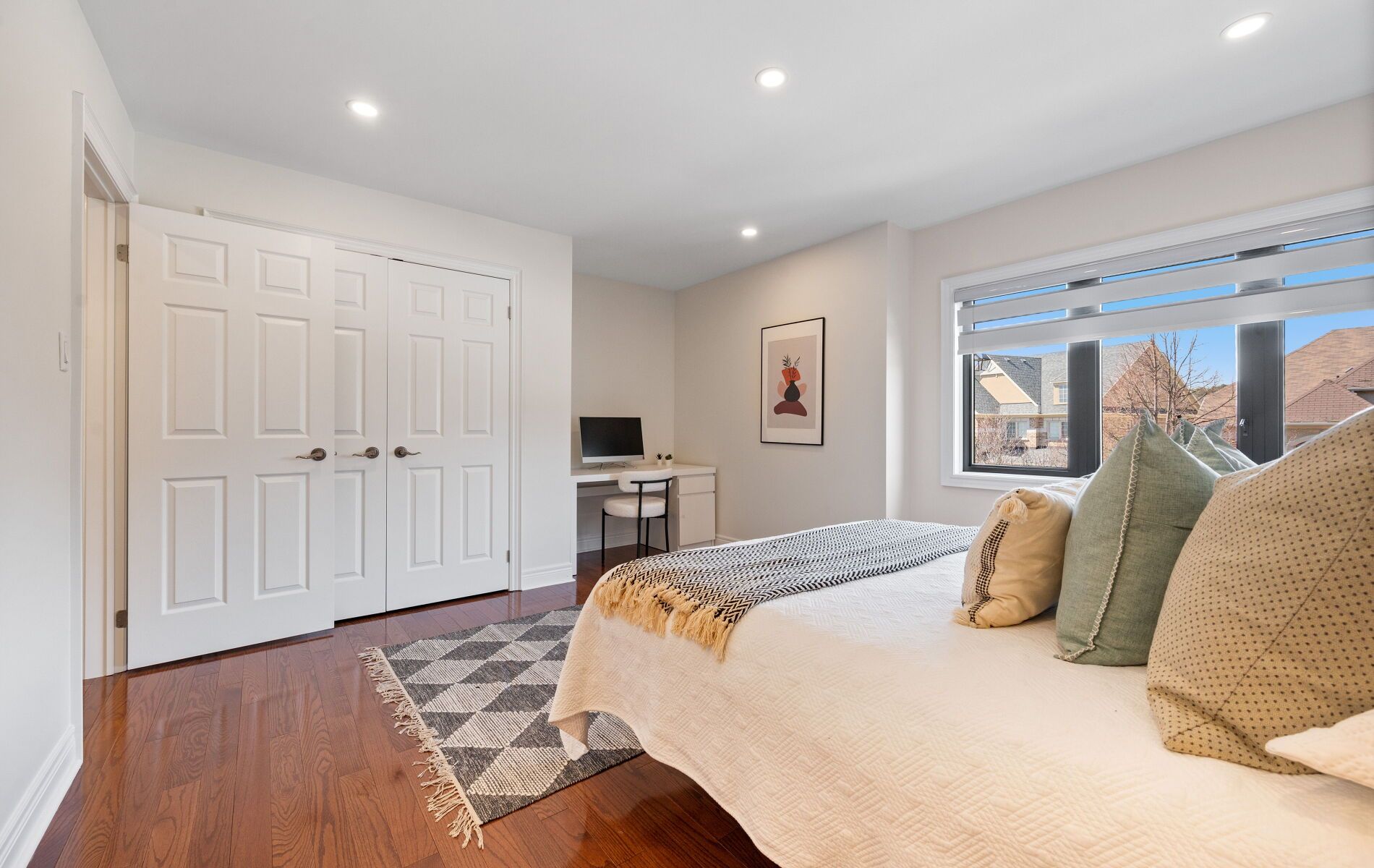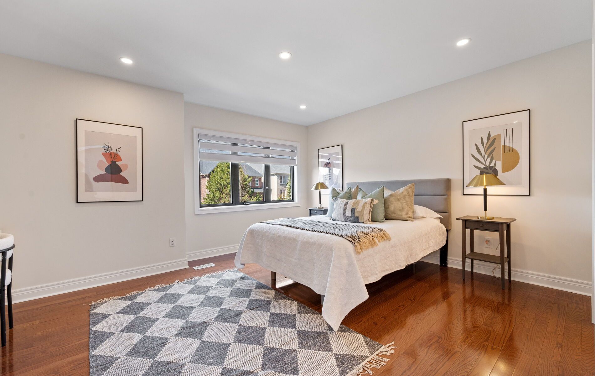 • Open-concept living and dining area with hardwood flooring and pot lights.