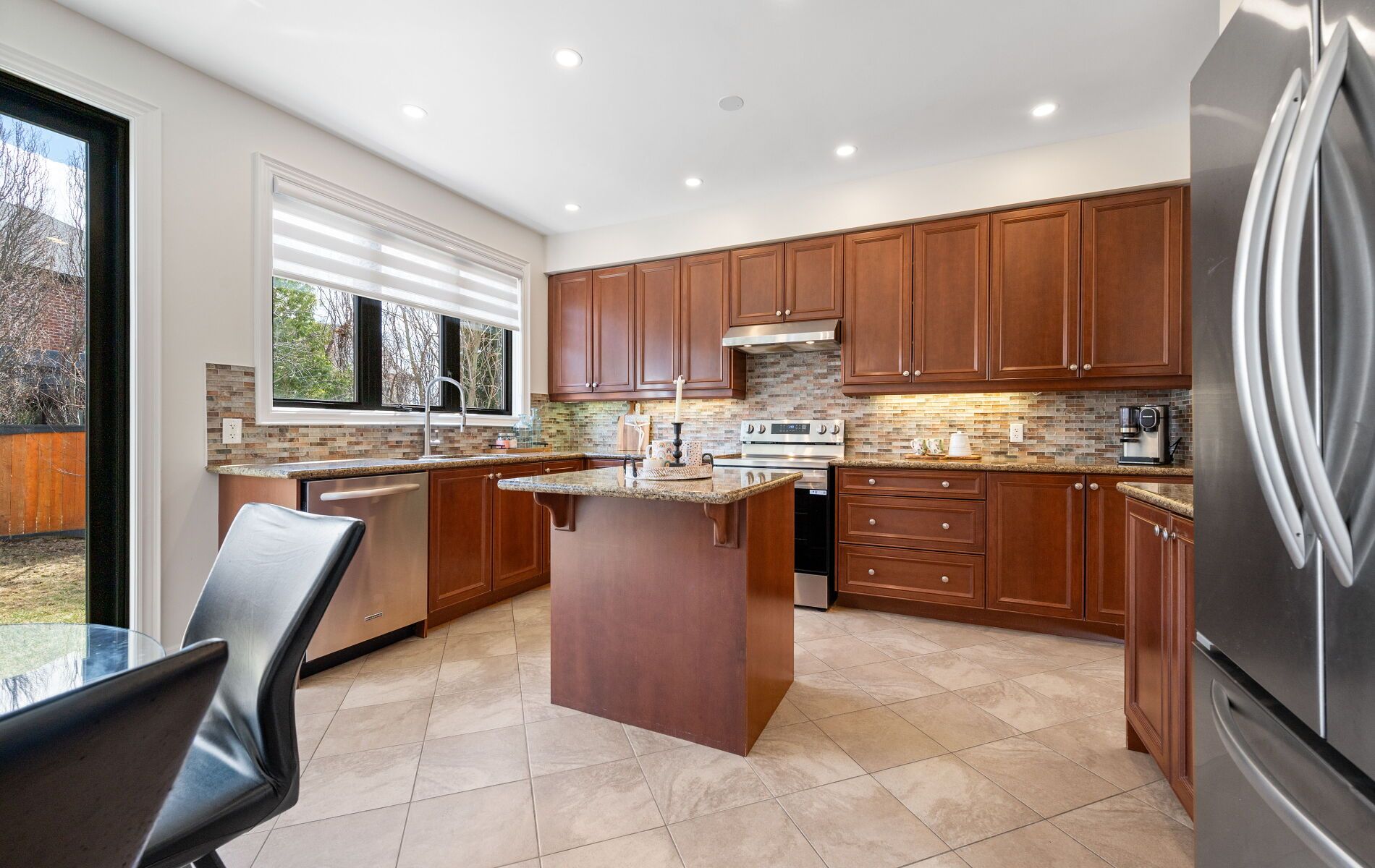 • Spacious kitchen with stainless steel appliances and direct backyard access.