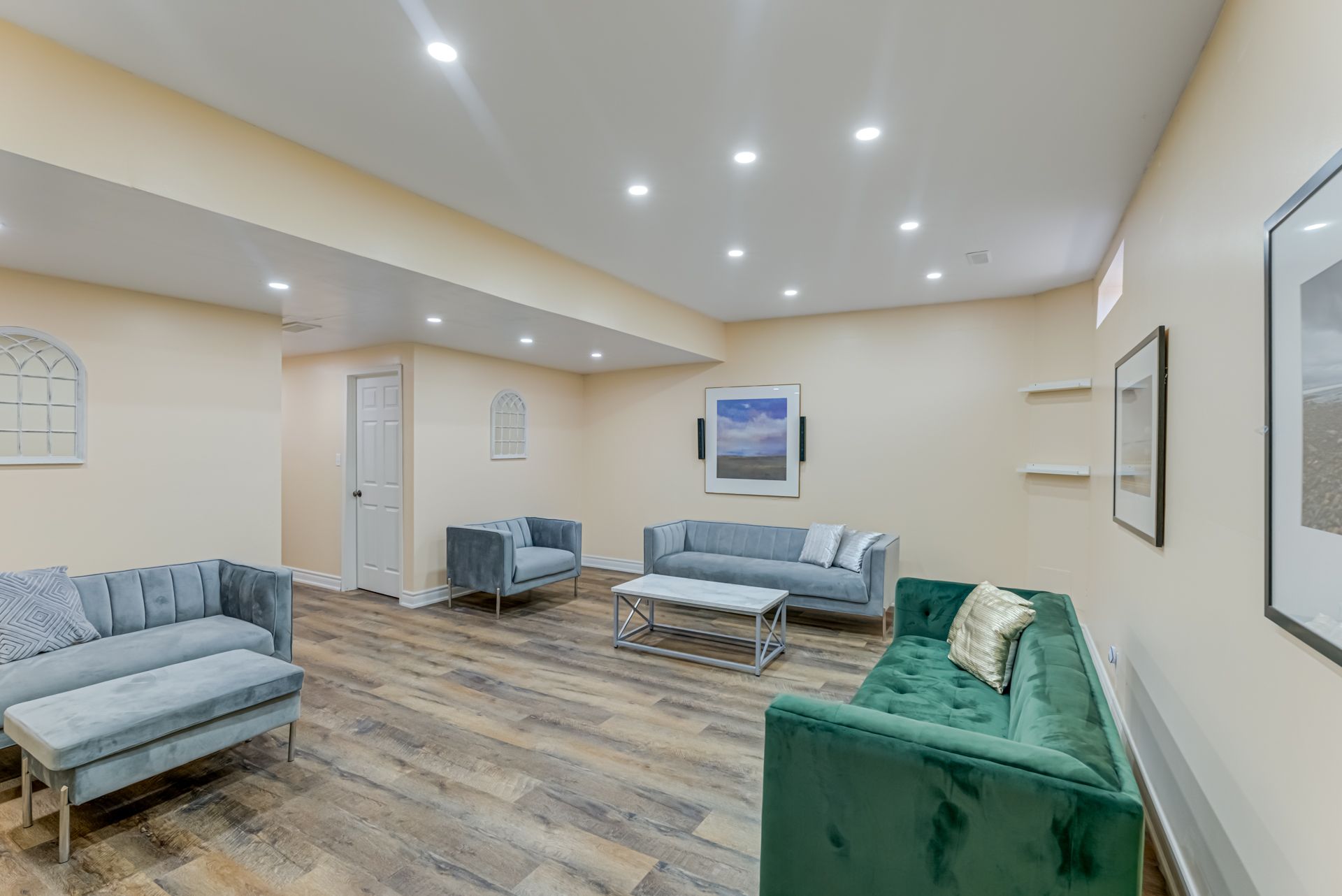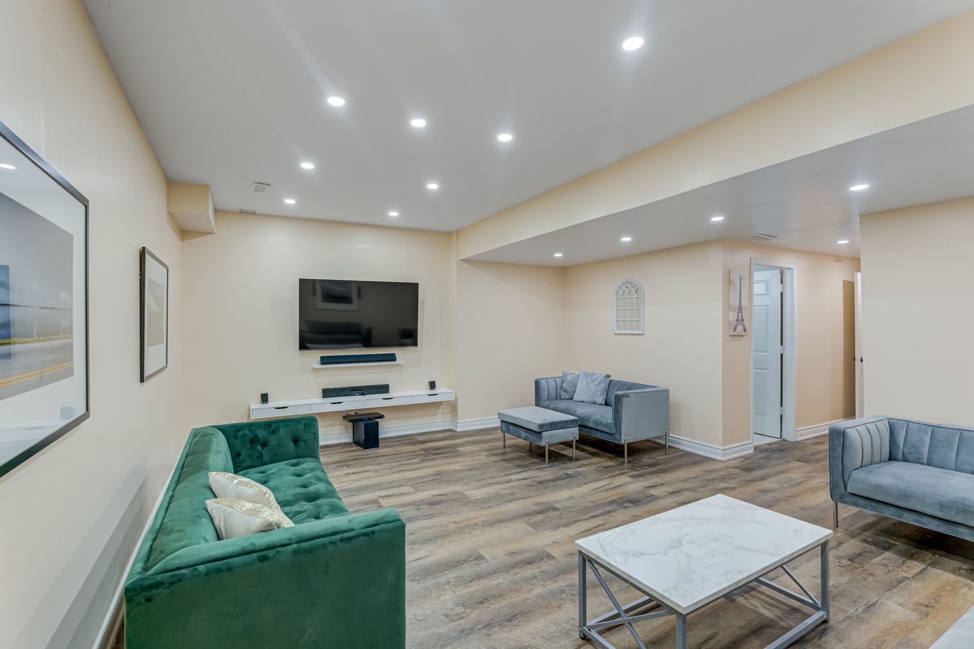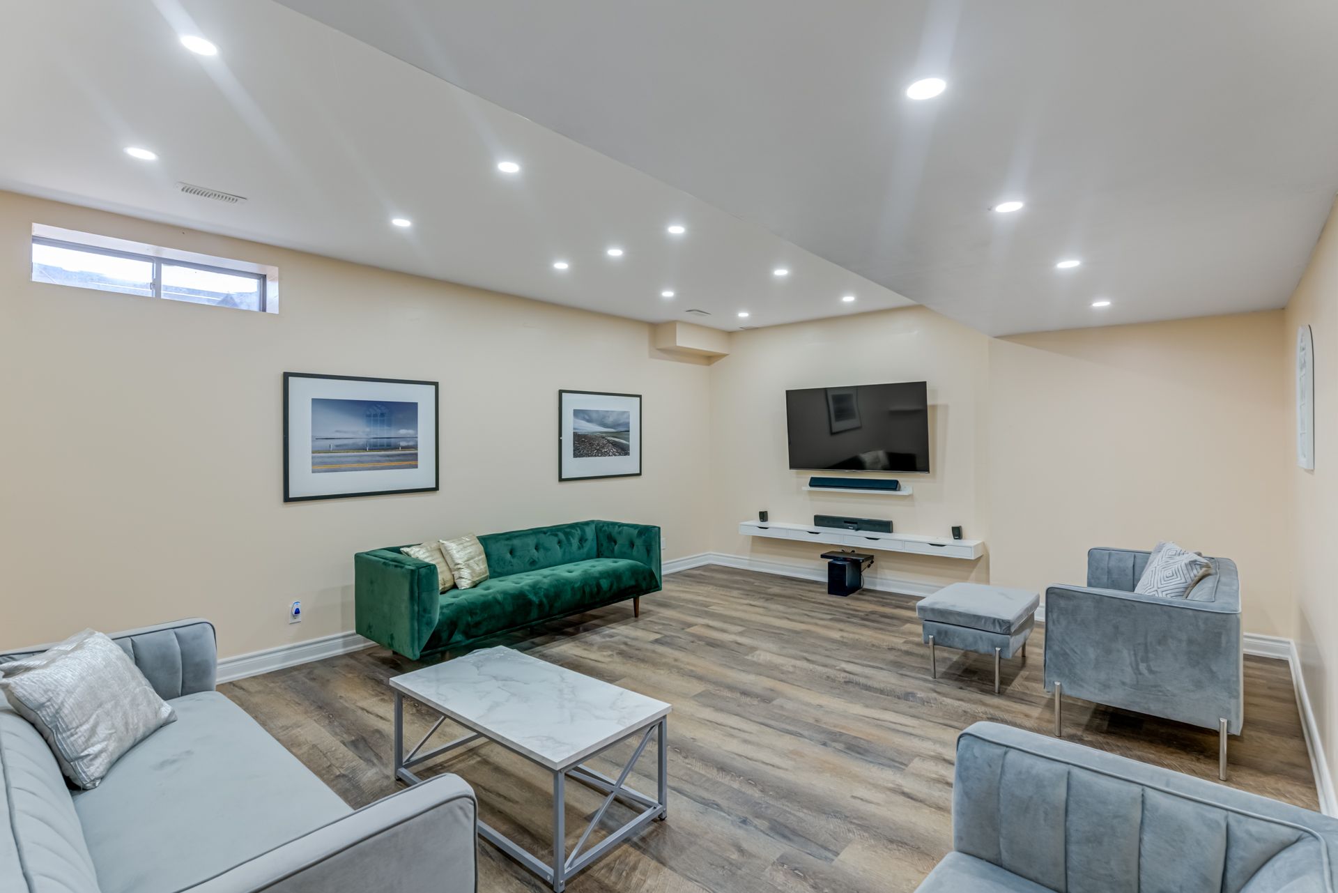 • Finished basement with high ceilings and full bathroom, great for entertaining.
