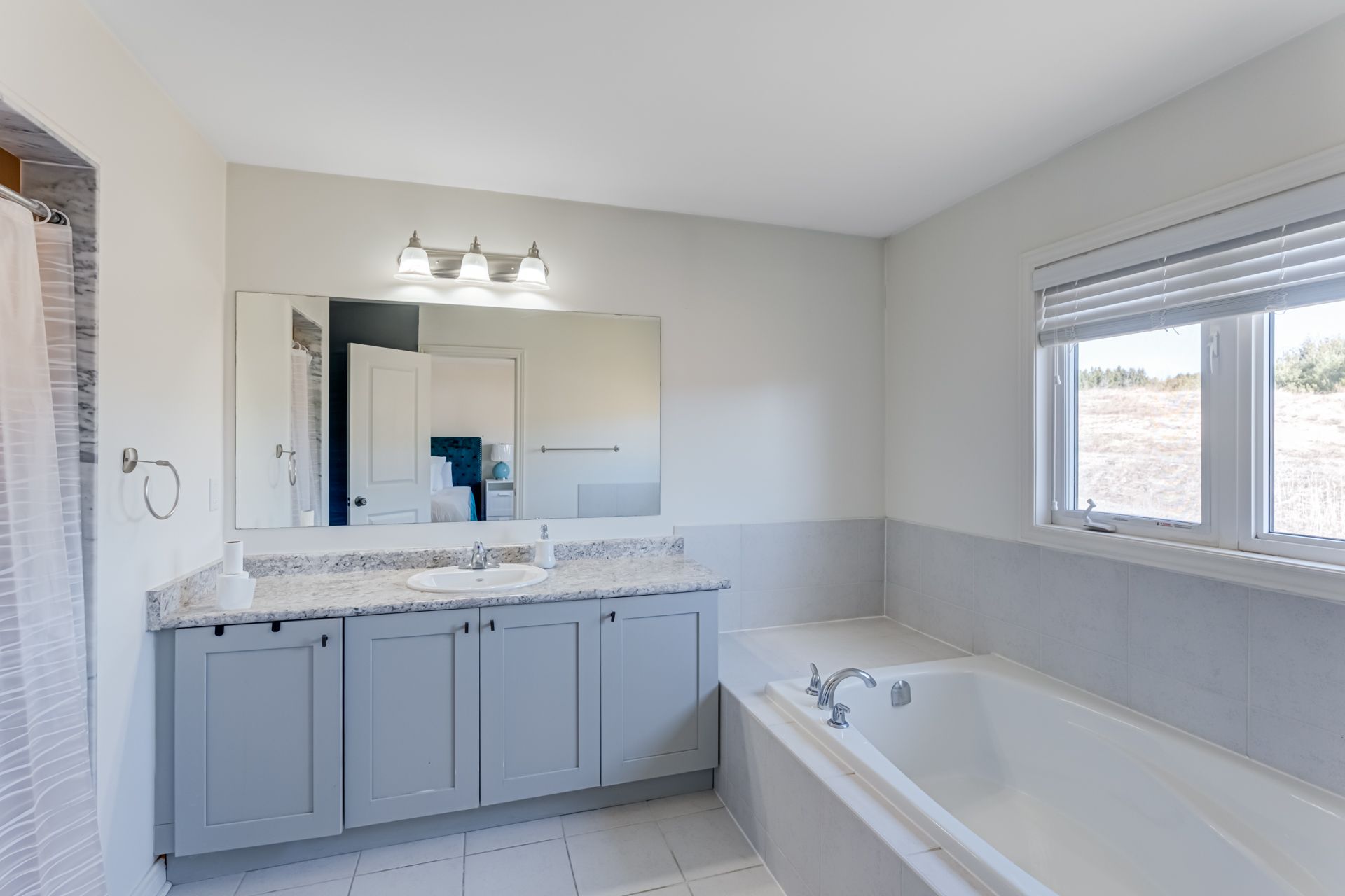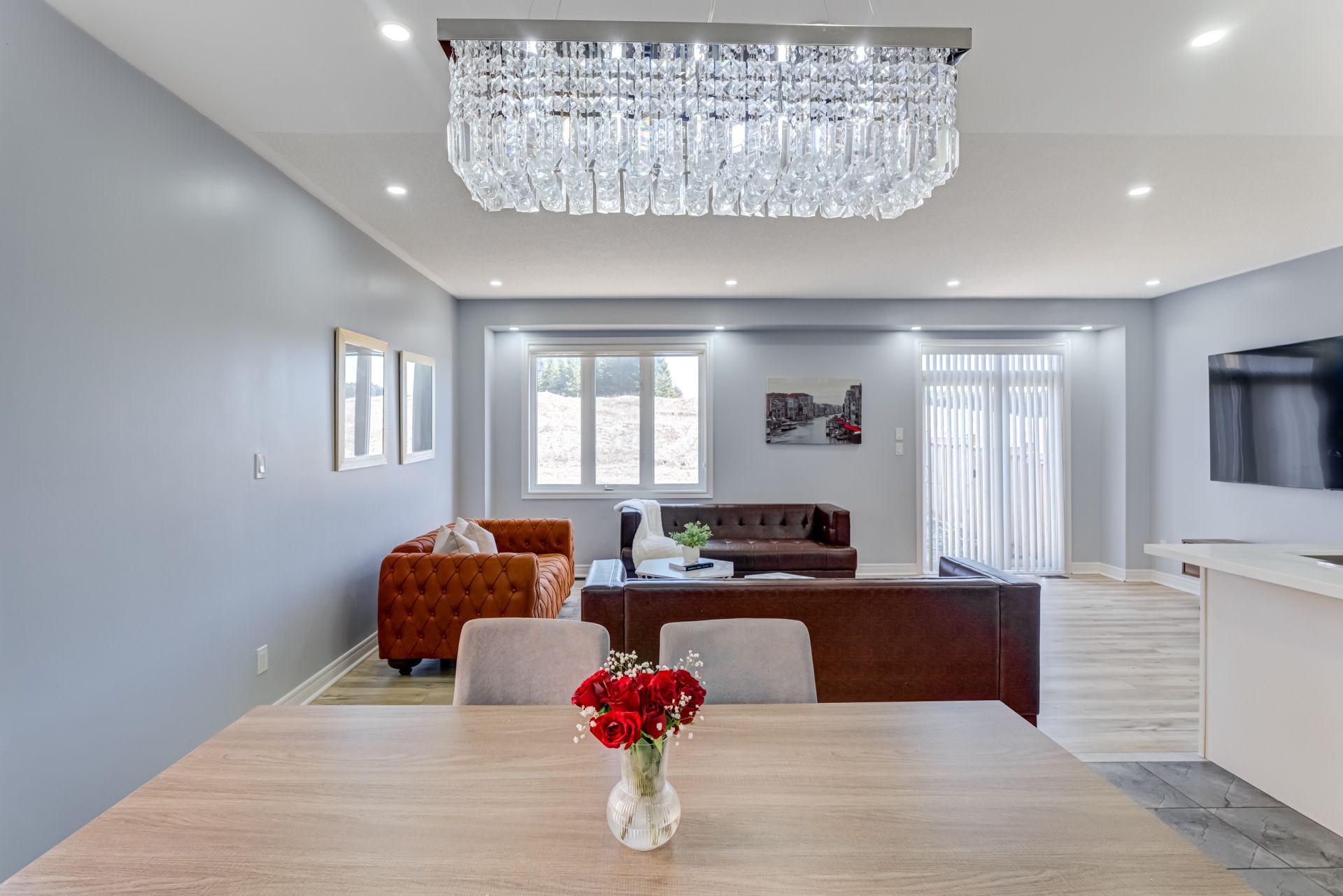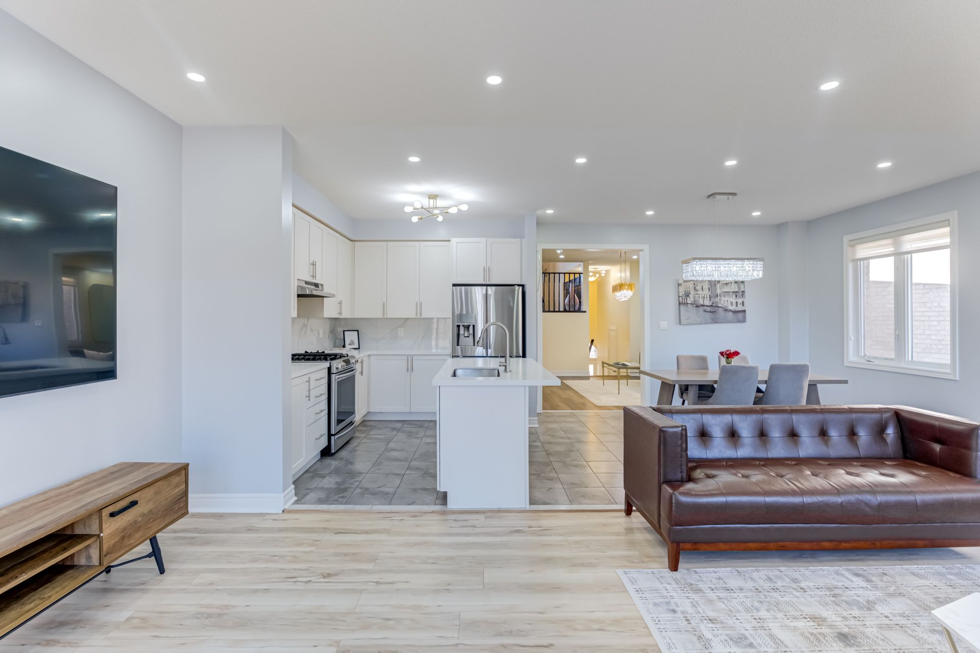 This stunning double-car garage home is located in alliston's most prestigious, family-oriented community. Offering over 2,100 sq. Ft. Of above-grade space and a total of approximately 3,000 sq. Ft. Of living area, this residence is perfectly designed for comfort and functionality. Situated on a spacious pie-shaped lot, the home features a walkout basement leading to the garage. The fully finished basement includes a full bathroom and boasts high ceilings, making it ideal for entertaining or as a potential rental unit for additional income. Enjoy privacy with no sidewalk and no neighbors behind. The expansive family/great room includes a balcony, perfect for hosting large gatherings or enjoying family entertainment. The newly upgraded kitchen is a chefs dream, featuring quartz countertops, a stylish backsplash, a gas stove, and modern pot lights throughout. Elegant flooring extends across the entire home, enhancing its sophisticated appeal. This exceptional property offers a rare combination of luxury and practicality.