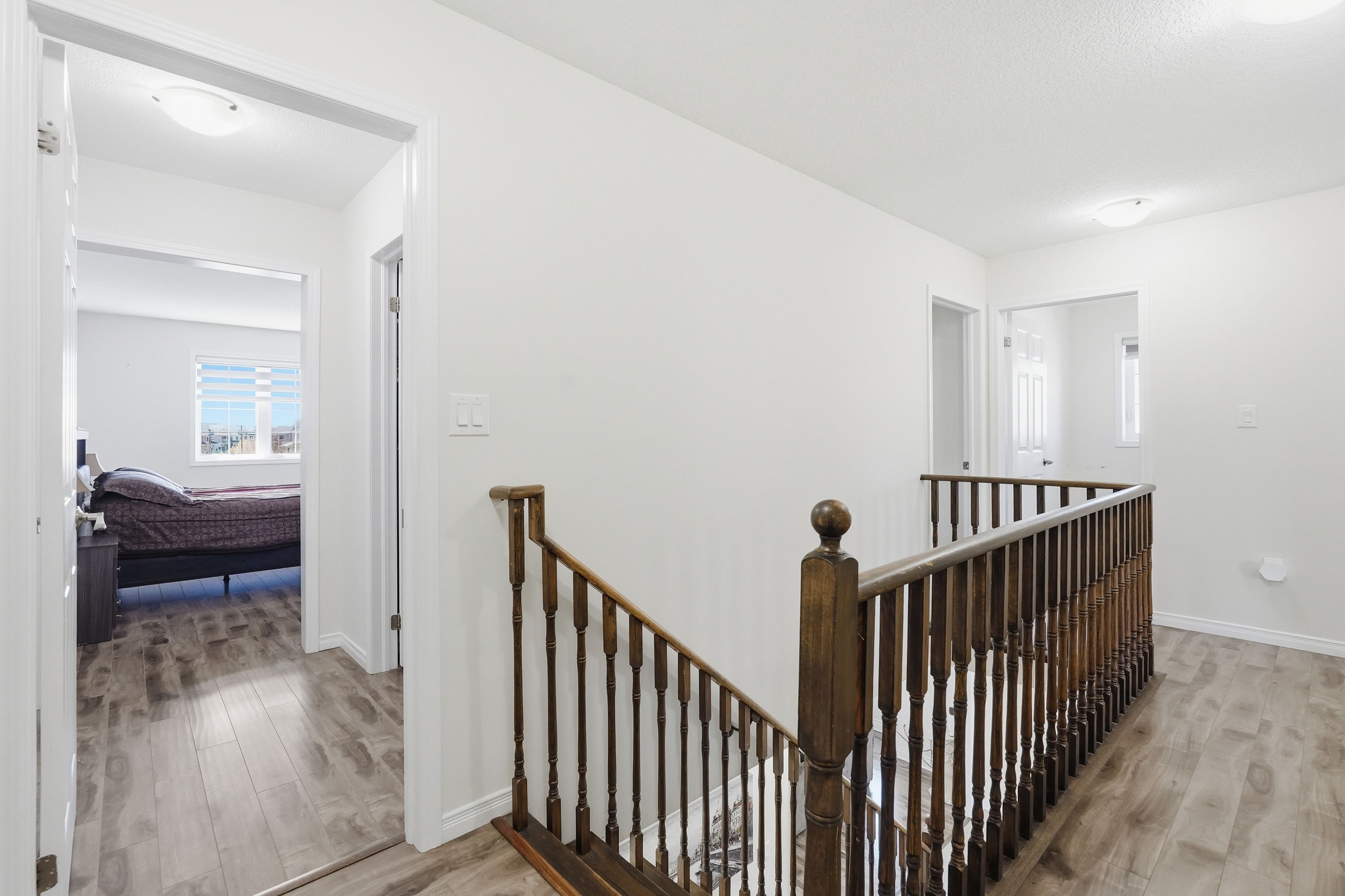 Welcome to this stunning newer-built home in the growing community of caledonia-just 20 minutes from hamilton! Designed with modern family living in mind, this spacious 4-bedroom home offers 3 full bathrooms plus a convenient 2-piece powder room on the main floor. Step inside to a bright and welcoming layout featuring a sun-filled front office-perfect for working from home. The open-concept eat-in kitchen boasts a wide sliding door that leads directly to the backyard, creating the perfect flow for entertaining and everyday living. Upstairs, enjoy the added convenience of second-floor laundry along with generously sized bedrooms. The fully finished basement adds even more living space, complete with a 3-piece bathroom-ideal for a rec room, guest suite, or in-law potential. Complete with an attached 2-car garage and a fully fenced yard, this home checks all the boxes for comfort, style, and functionality. Located in a family-friendly neighbourhood, this is the perfect place to put down roots and enjoy everything this vibrant community has to offer. Don't miss your chance to call this one home!