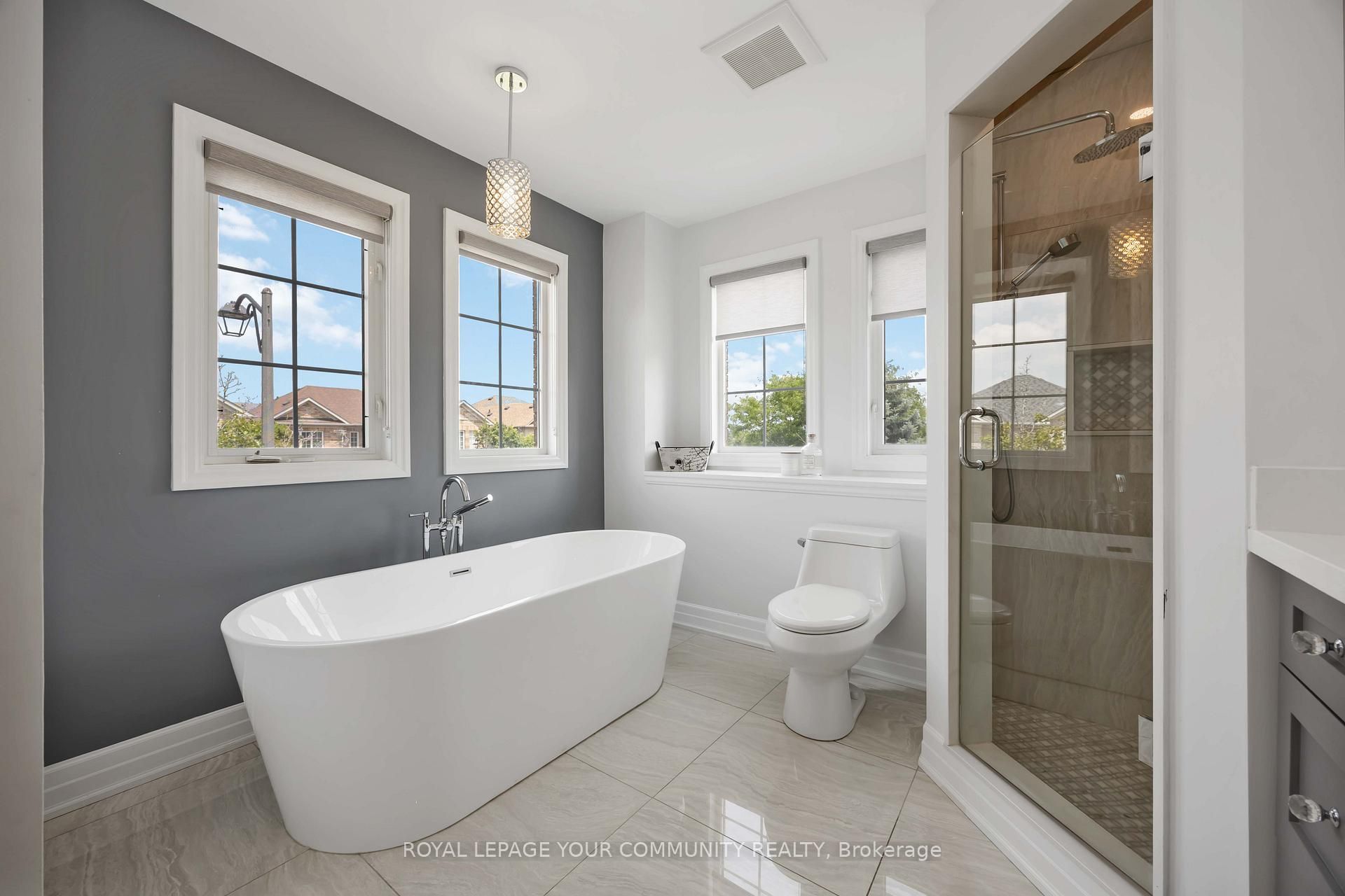 Welcome to 57 turning leaf, sonoma heights. This charming 3 bedroom plus large office on the main floor, corner lot is nestled on a quiet, private street directly across from a peaceful pond, offering a serene and tranquil setting in the heart of sonoma heights. Step inside to a bright, open concept main floor, featuring a spacious home office and a modern eat-in kitchen with walk-out access to a large, fully fenced yard complete with gazebo and shed - perfect to outdoor entertaining. Upstairs, the primary bedroom retreat boasts a beautifully renovated ensuite with a glass shower and luxurious soaker tub. The finished basement offers additional living space ideal for entertaining or can serve as a comfortable in-law suite. Located within walking distance to shops, transit, schools and parks, this home offers both convenience and comfort in one of vaughan's most sought-after communities.