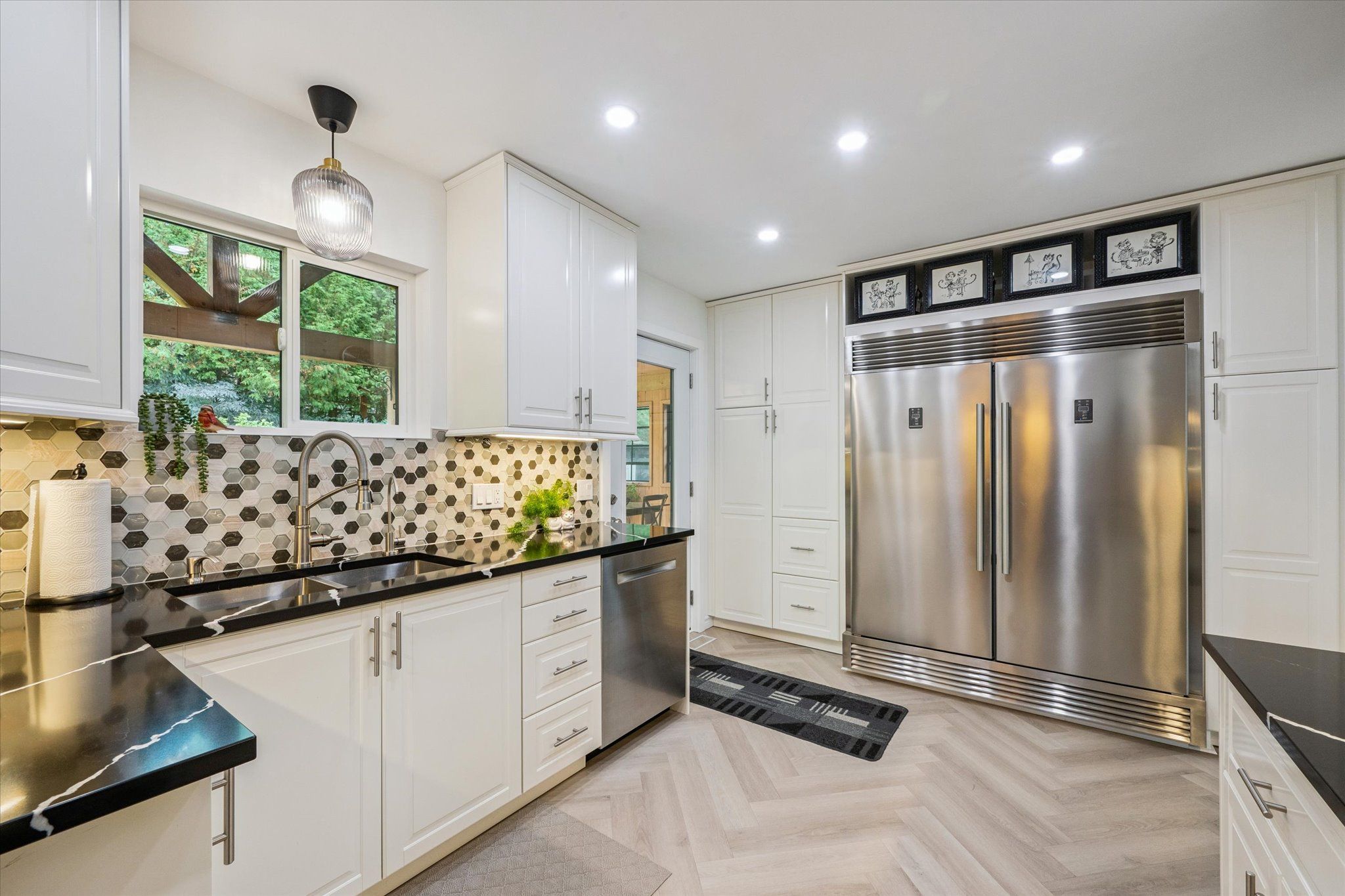 • Updated chef's kitchen with views of the serene backyard oasis.
