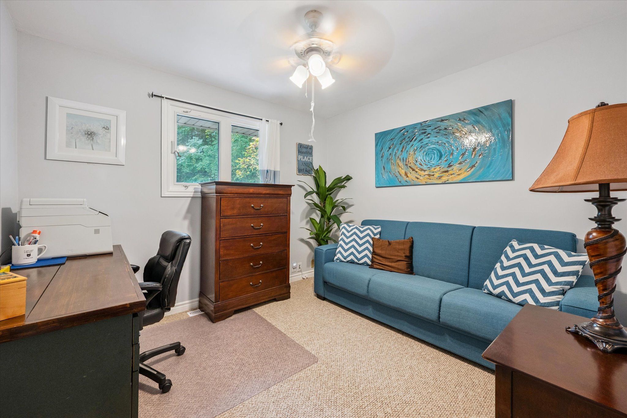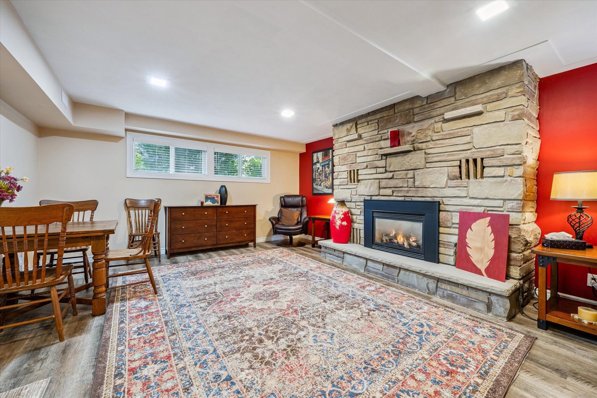 • Inviting lower level with guest bedroom, cozy rec room, and workshop.