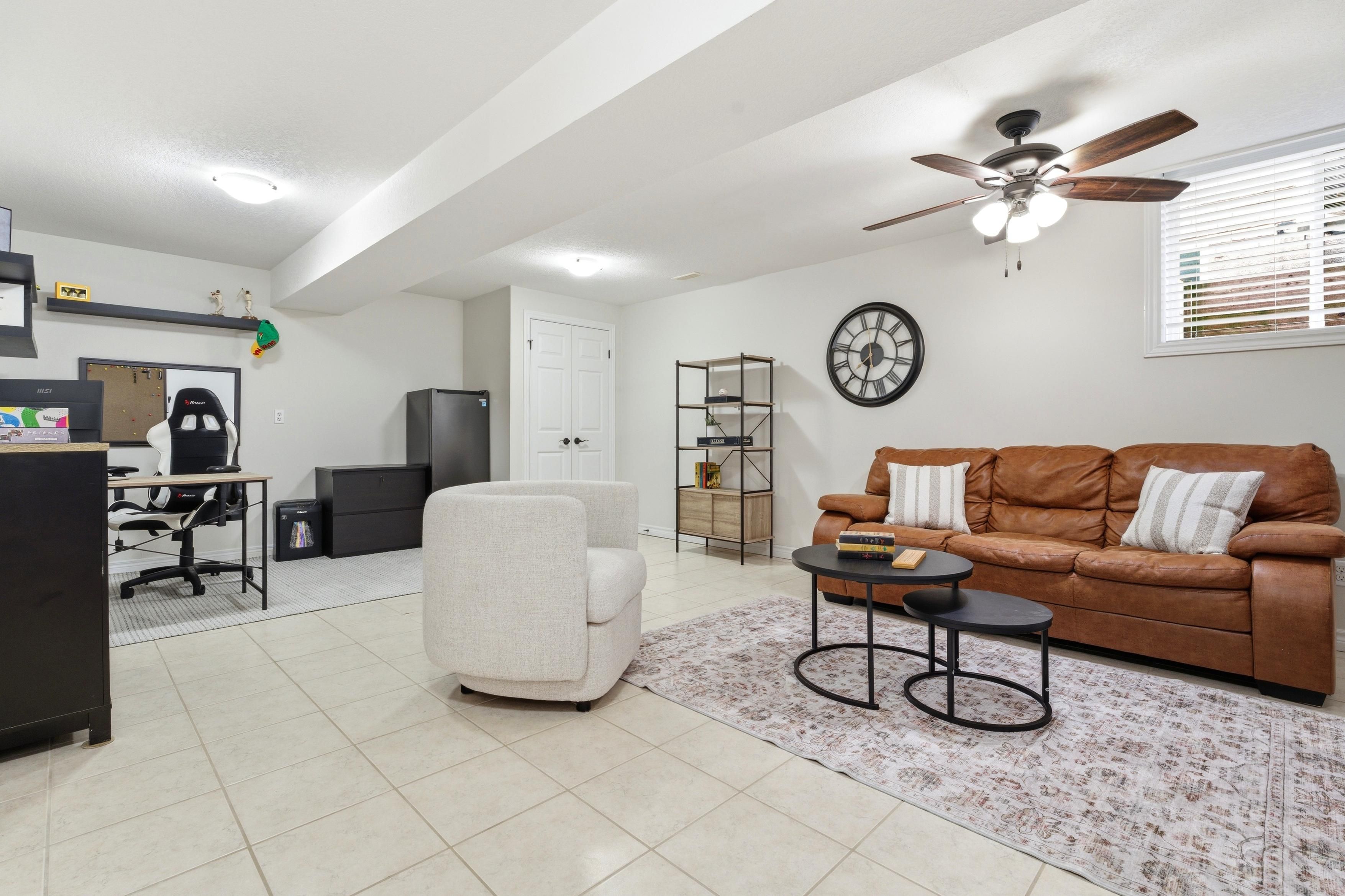 • Finished lower level offers a family room, media room, and additional bedroom.