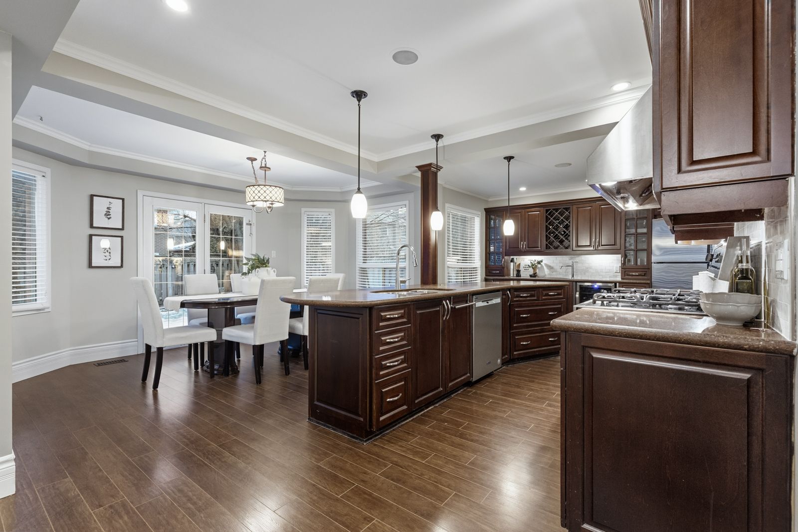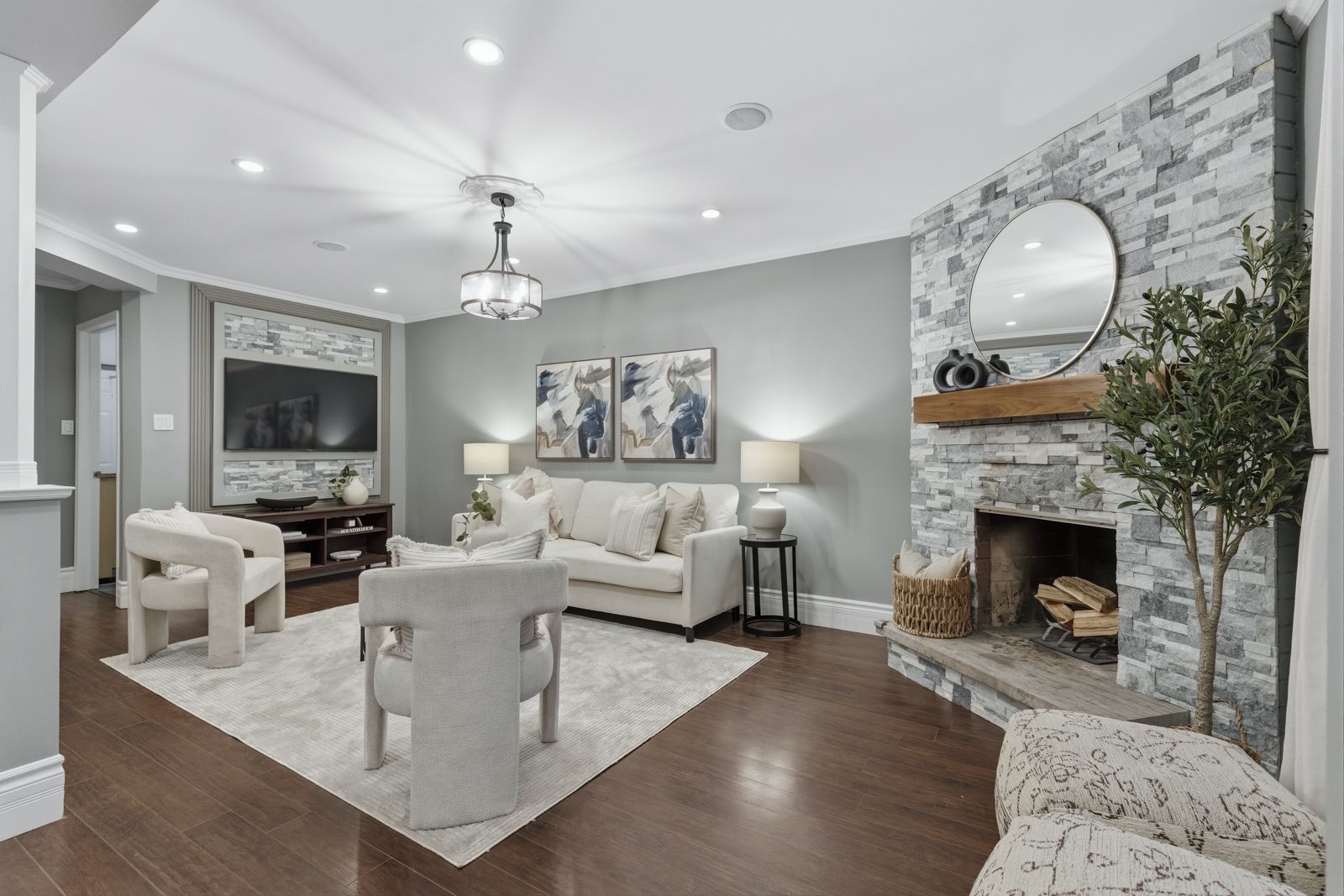 Welcome to 57 yorkshire crescent, a beautifully updated family home located in the desirable pringle creek neighbourhood close to shopping, dining, parks, schools, and convenient access to durham transit, hwy 401 and 407. This well-maintained home features gleaming laminate flooring throughout the main and second floors and a thoughtfully renovated gourmet eat-in kitchen complete with stainless steel appliances, quartz countertops, a large centre island, wine cooler (2025), and dishwasher (2025). The main floor also offers beautiful lighting upgrades throughout, a separate living room, beautiful stone veneer accent walls, a convenient main-floor laundry room with direct garage access, built-in speaker system, and central vacuum. Upstairs, the spacious primary retreat features custom built-in fireplace, a walk-in closet, and a renovated 4-piece ensuite with an air-jetted soaker tub and separate shower. Additional bedrooms are generously sized with ample closet space, complemented by a beautifully renovated main bathroom. The finished basement adds even more living space with a large recreation room featuring a stunning stone feature wall, a fifth bedroom with walk-in closet and 3-piece ensuite, and plenty of storage space. Enjoy the large private backyard, complete with a sprawling deck and pergola, mature trees, perennial gardens, and sunny exposure - perfect for entertaining or relaxing outdoors . Recent upgrades include a new metal roof (2025) and interlocking driveway (2025) for added curb appeal and durability. A wonderful opportunity to own a beautifully upgraded home in a convenient and family-friendly location.