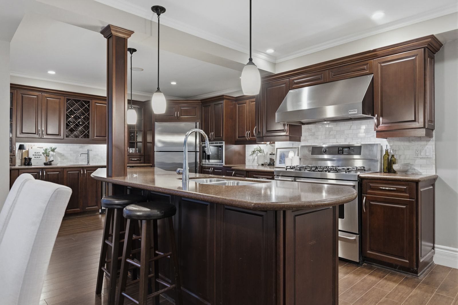 • Renovated gourmet kitchen with stainless steel appliances and quartz countertops.