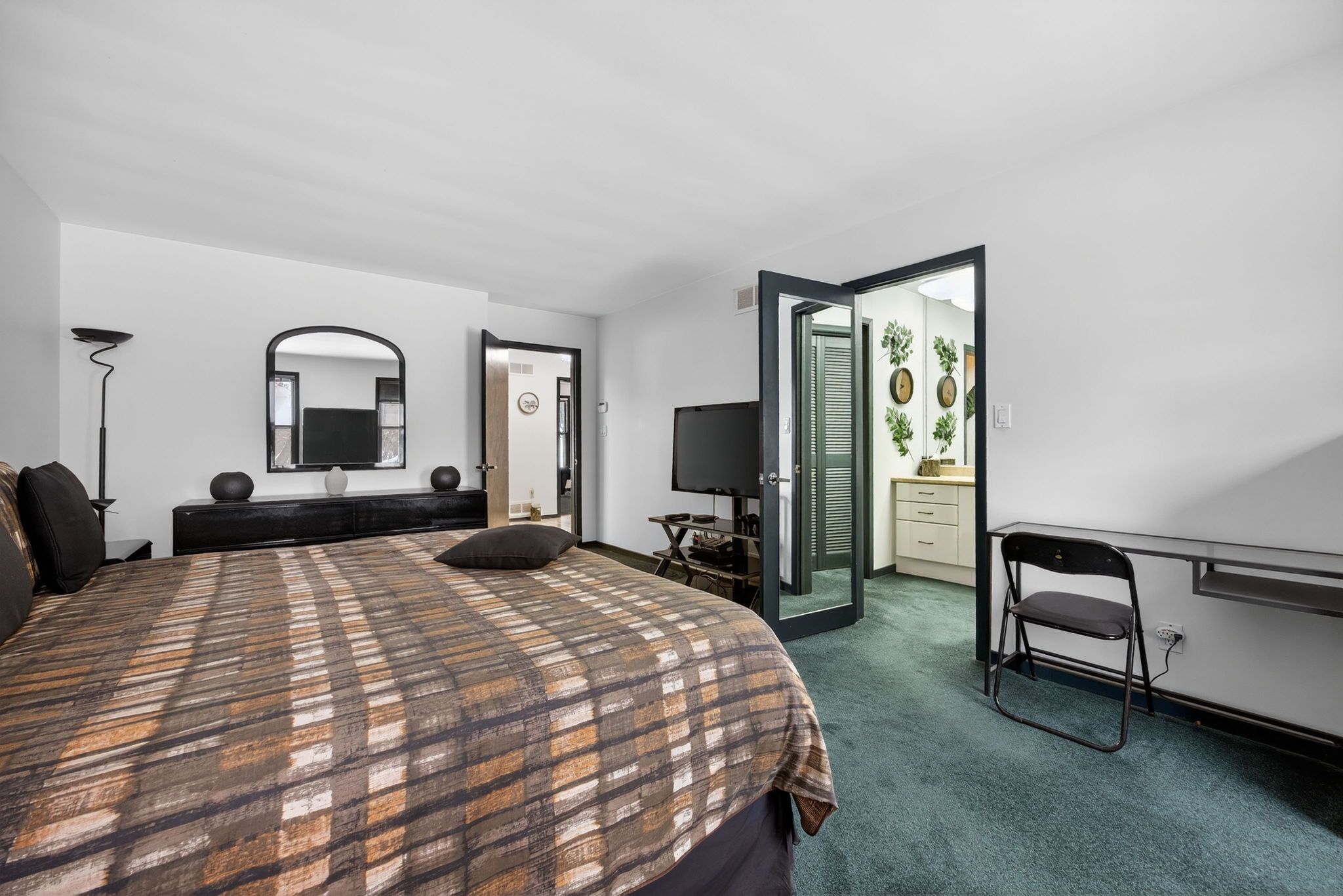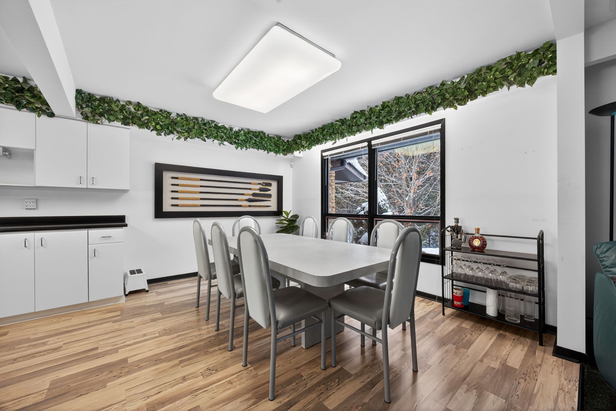 • Family room features floor-to-ceiling windows and patio access.