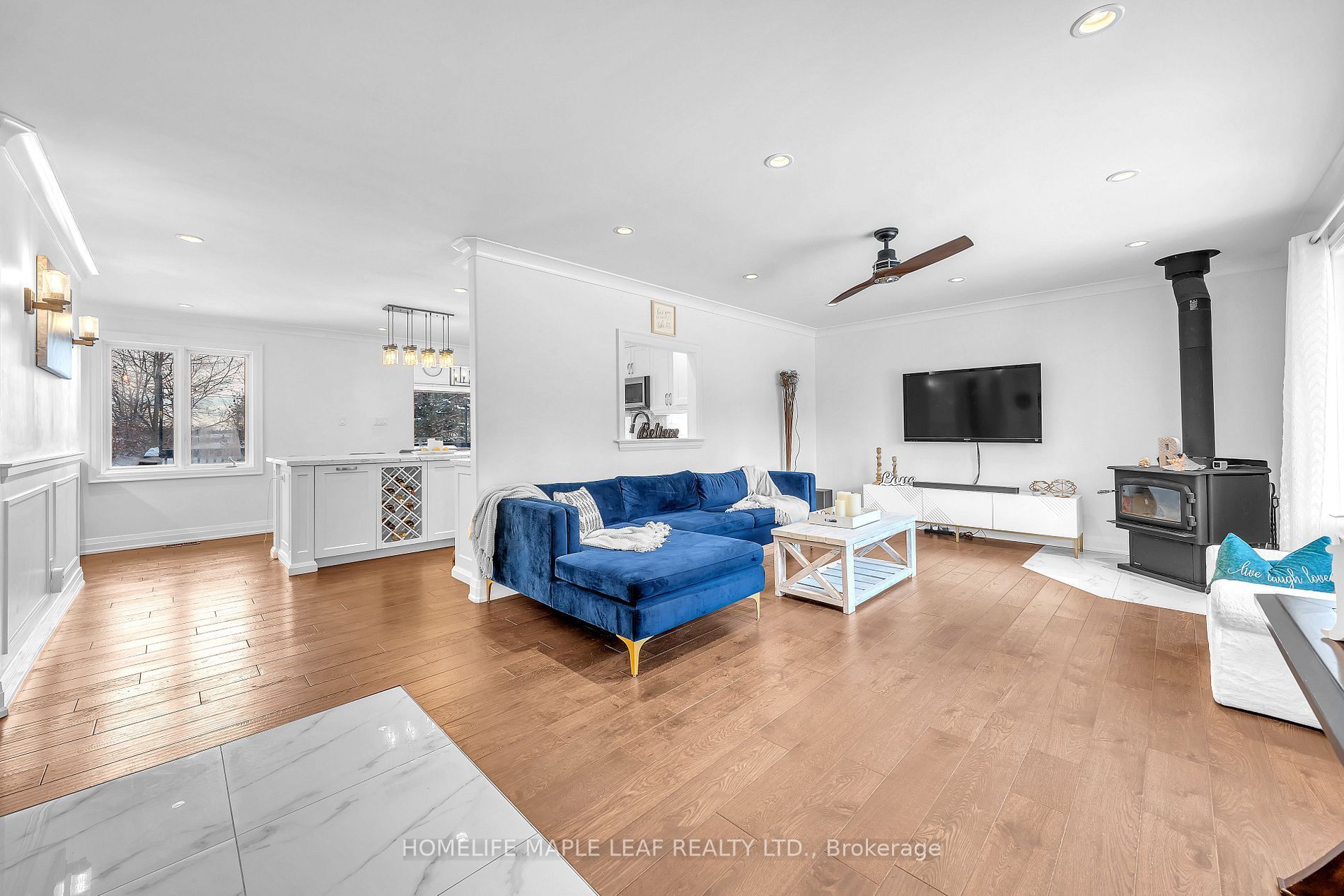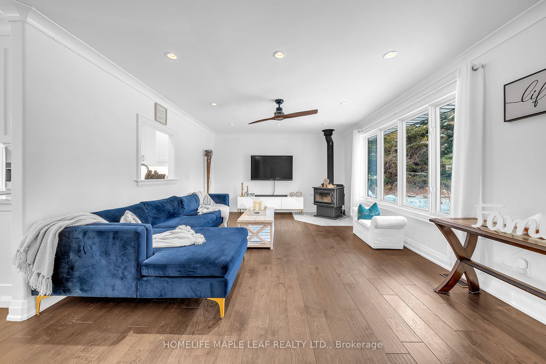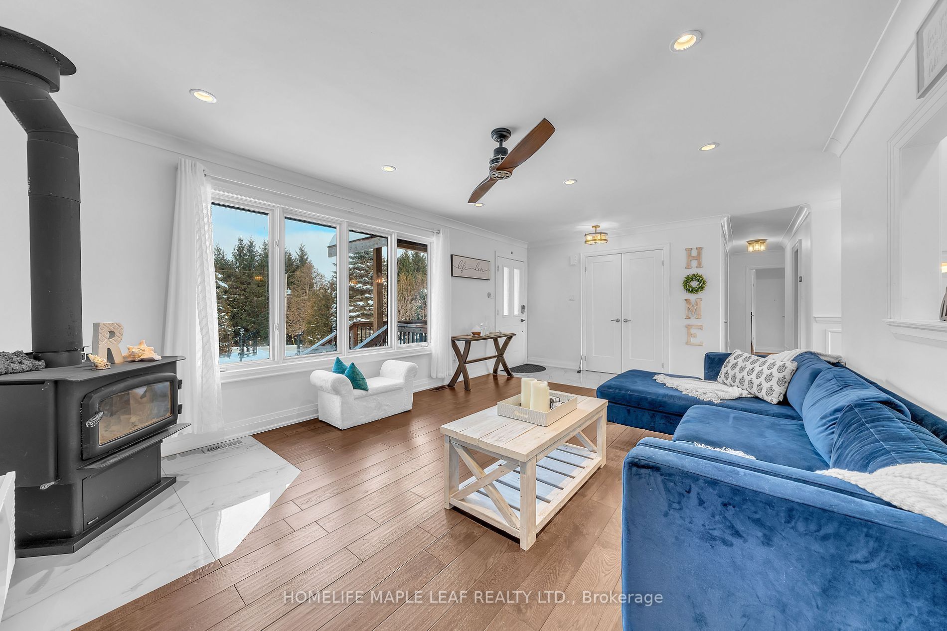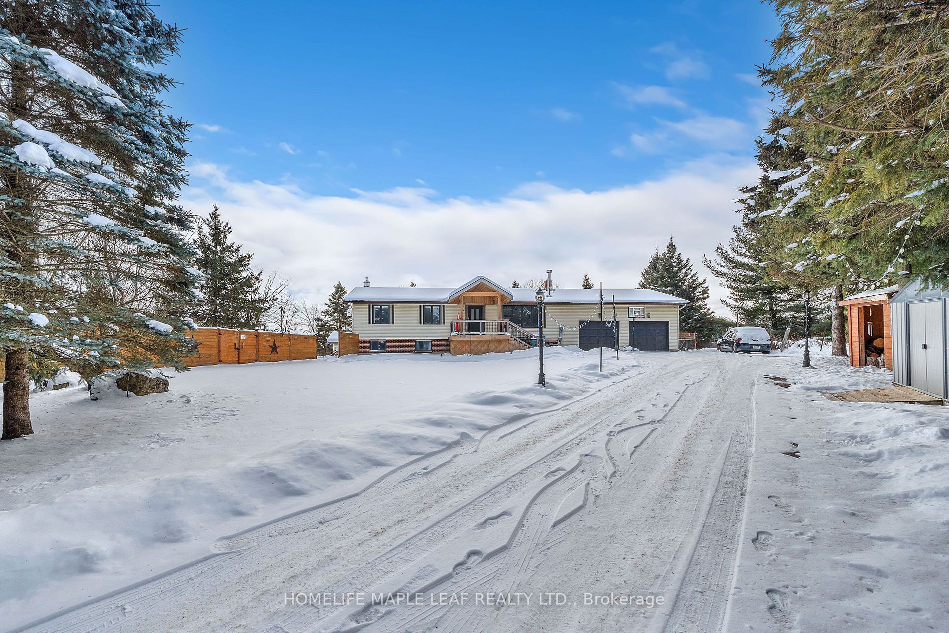 Perfectly set on 2 acres surrounded by mature trees, this 3+2 bedroom raise bungalow feels like home the minute you pull up. The living room is warm and inviting with a wood-burning fireplace. A spacious dining area looks out to the backyard and flows into the bright and airy kitchen, where you will find a large island and stainless steel appliances. The primary bedroom includes a private ensuite bathroom. Finished walk-out basement with eat-in-kitchen, full washroom and 2 bedroom. 2 car garage attached plus additional 4-car detached garage. Come and make this home your home where you will enjoy the stunning and secluded views both morning and night! This property is minutes away from orangeville. This property comes with a remote gate for extra security.