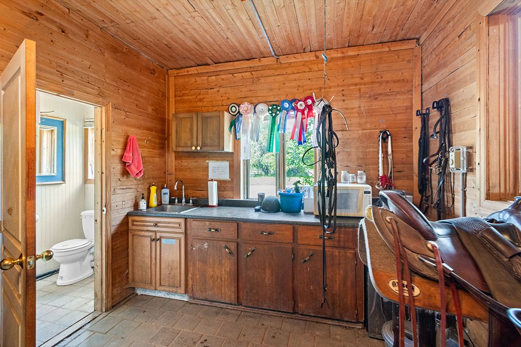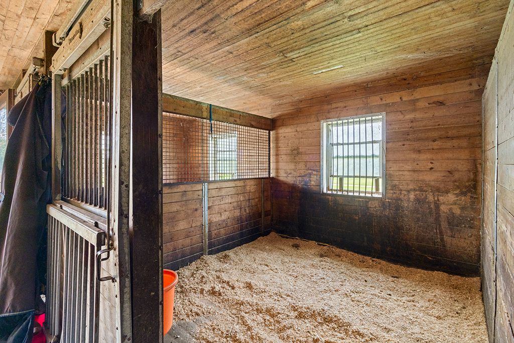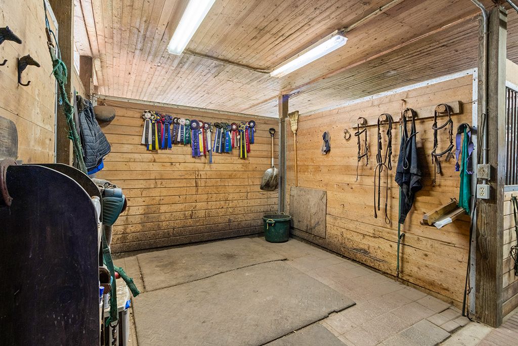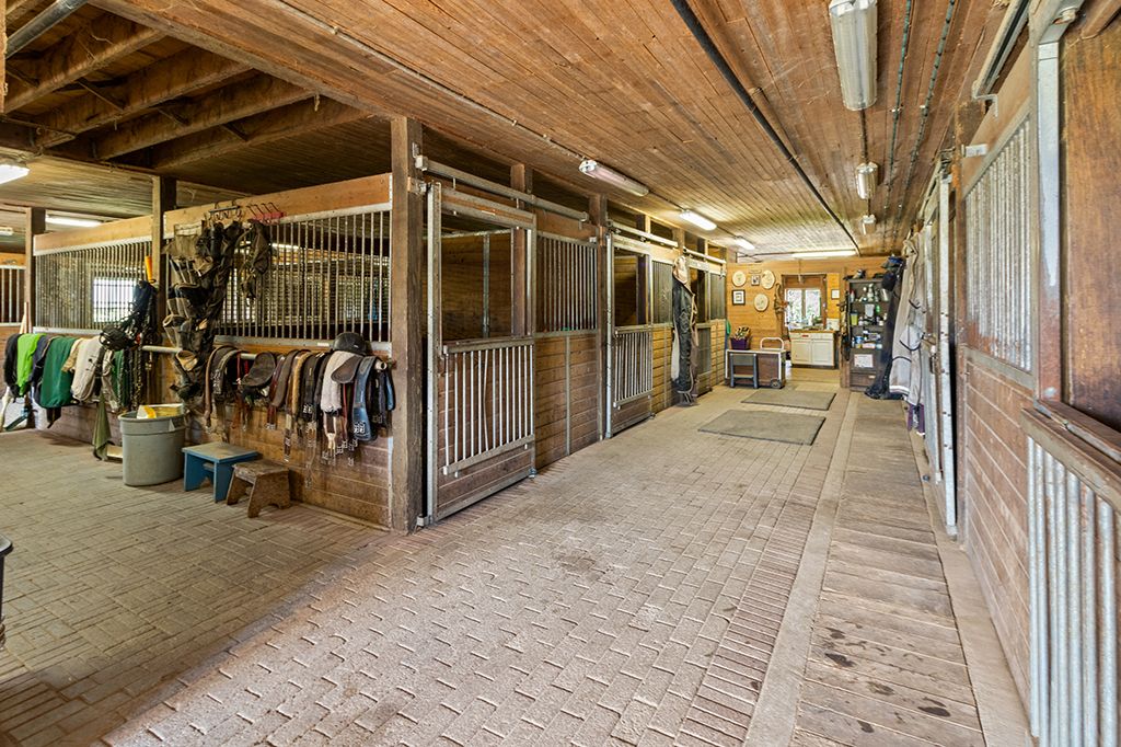 • Includes spacious 20-stall barn with heated facilities and multiple paddocks.