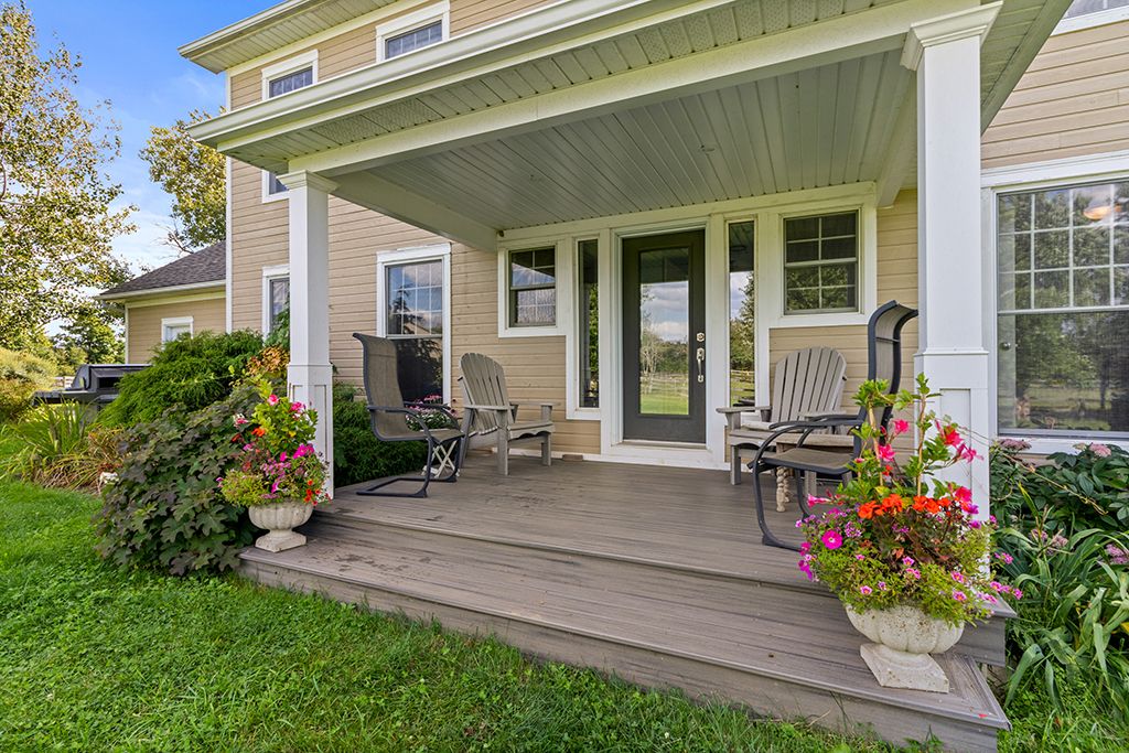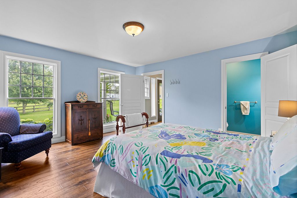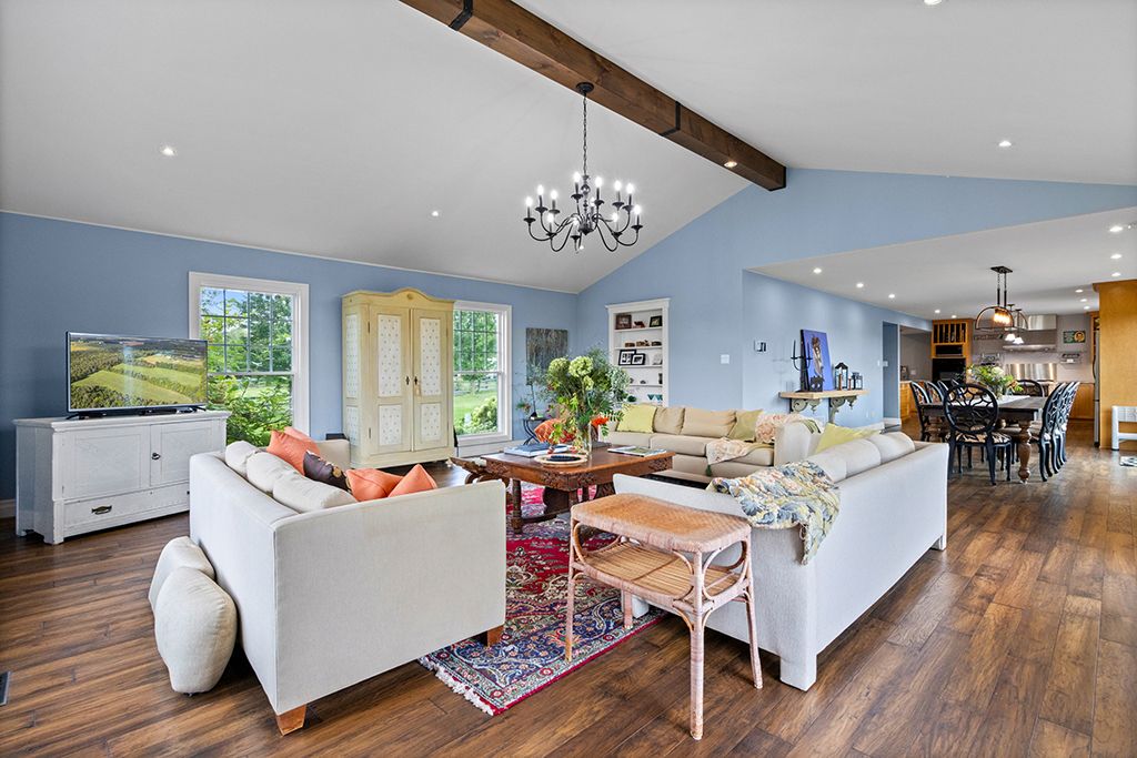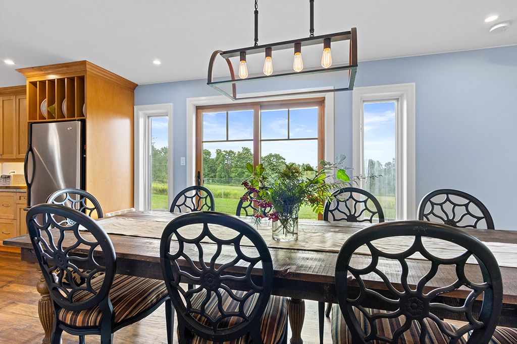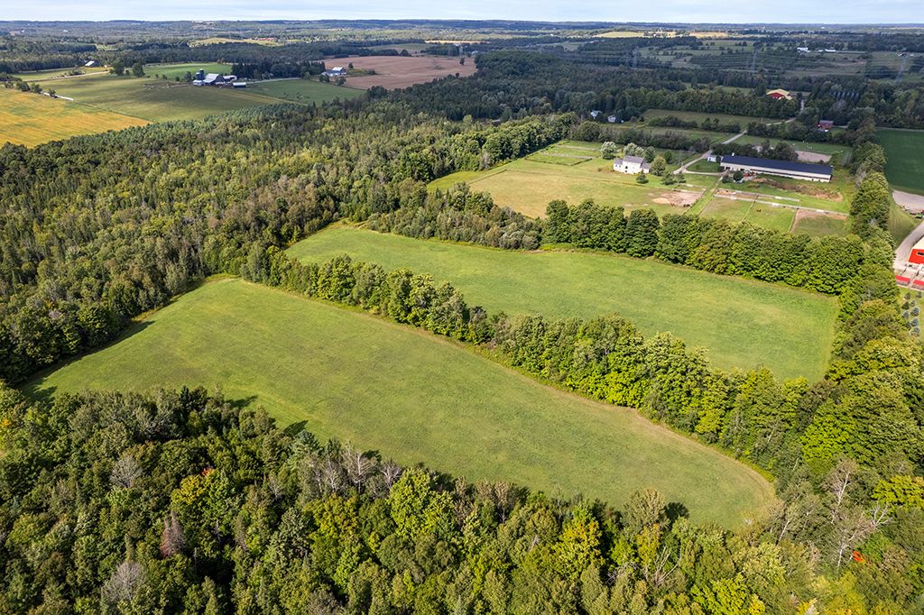 Turnkey 49-acre equestrian facility - a rare opportunity for the serious horse professional. Currently operating as a successful pleasure riding & eventing facility, this exceptional 49-acre property is fully equipped for boarding or training in any discipline. The farm features 10 lush paddocks with frost-free hydrants and power for heated winter water, plus an insulated, ventilated 20-stall barn complete with heated tack room, 3-piece bath, feed room, wash and grooming stalls, & a hay loft with drops. Train year-round in the attached 76' x 160' indoor arena with operable windows and quality footing, or enjoy the outdoor jumping field, 150' x 200' sand ring, and grass dressage field. Two productive hayfields provide income potential or self-sufficiency. A 23' x 30' heated portable building with hydro offers flexible use as an office or storage. The 2,877 sq. Ft. Residence (1997) delivers a refined and luxurious base of operations. Wide-plank, hand-scraped hickory hardwood floors and soaring cathedral ceilings set an elegant tone. The chef's kitchen features a wolf cooktop and leathered granite counters, flowing seamlessly into the dining area and great room with beamed cathedral ceiling. Flexible accommodations include a main-floor bedroom with ensuite and three additional bedrooms upstairs, along with beautifully renovated bathrooms featuring heated floors and towel warmers. The primary suite offers a private retreat with dressing room, walk-in closet with organizers, and a spa-inspired ensuite. An unspoiled walk-out lower level provides endless future potential. Recent upgrades focused on efficiency and reliability include a 2024 cold-climate heat pump with propane backup, generac generator powering farm essentials, durable goodfellow siding, and original energy-efficient pella windows. Ideally located minutes from angelstone, meadowlarke north, and palgrave, this is an entrepreneur's dream-a fully operational equestrian boarding or training facility ready to go.