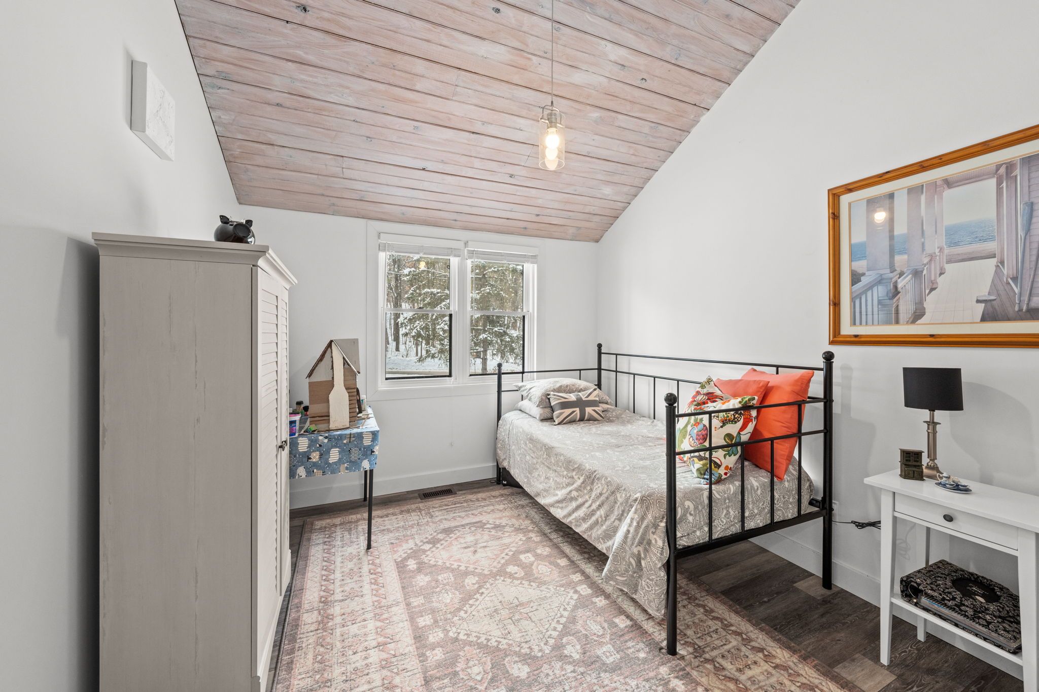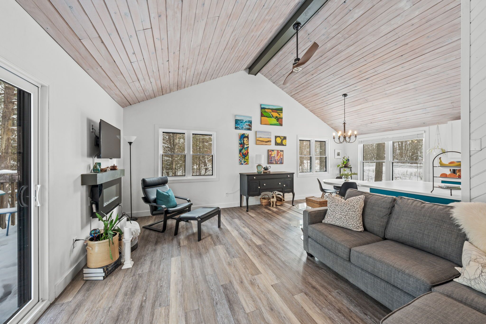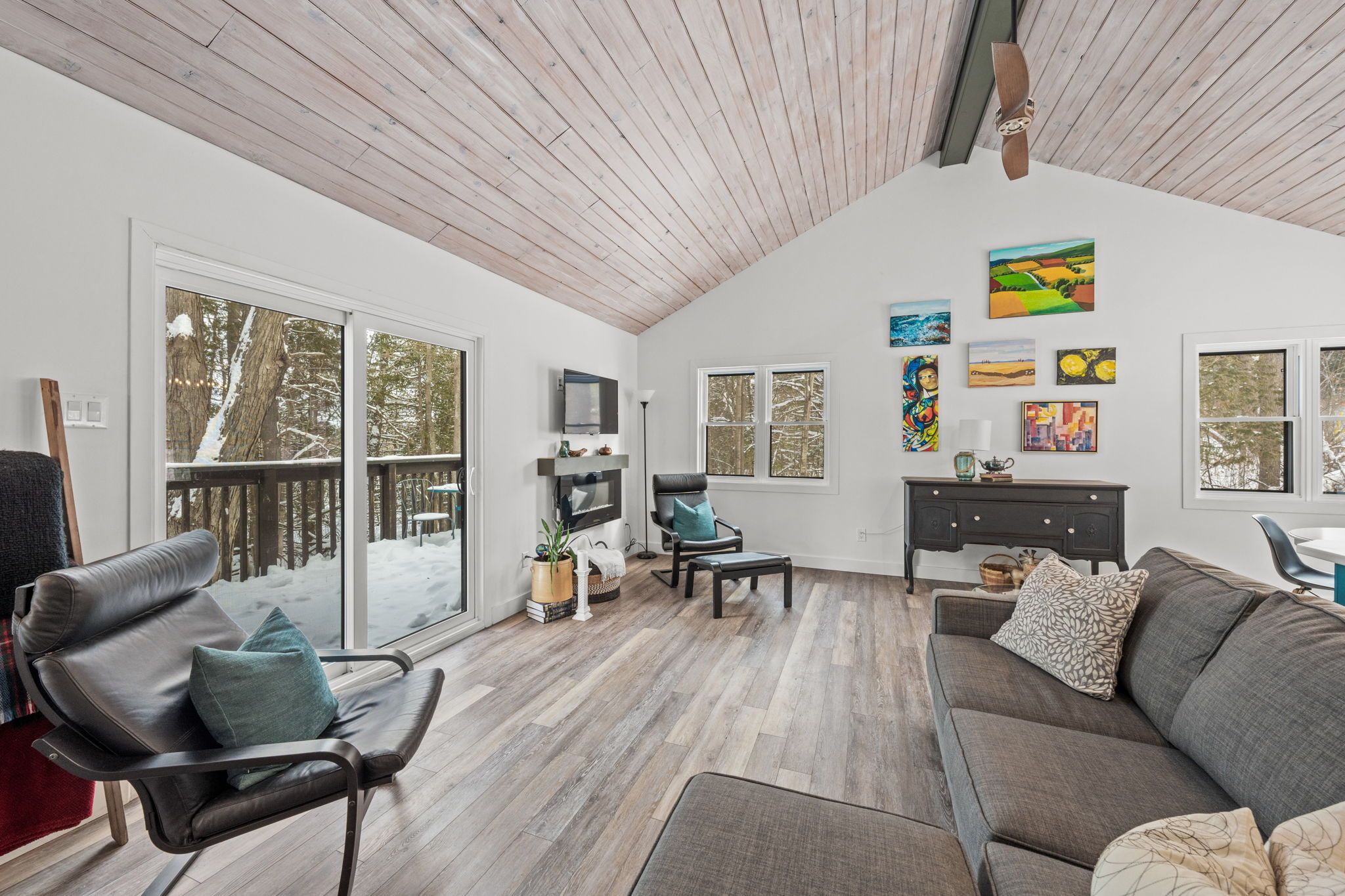 Welcome home to this charming viceroy style 3-bedroom, 2-bath property set on a beautifully treed 0. 52-acre lot with a fenced yard, no rear neighbours offering privacy, warmth, and an inviting connection to nature. The open-concept living and dining area features striking wood cathedral ceilings, a cozy electric fireplace and a patio door leading to a spacious deck overlooking the peaceful backyard-an ideal place to relax and enjoy the outdoors. Numerous updates enhance comfort including a spacious front deck, new flooring throughout the main level, all windows and doors replaced, a fully renovated main floor bathroom, and updated maibec siding and eavestroughs. The main level offers two comfortable sunlit bedrooms and a beautifully finished family bathroom, while the bright walk-out lower level adds excellent versatility with a third bedroom, a large family room room with a pacific energy wood stove with insulated chimney, a 3-piece bath, and a bonus mudroom. A large detached garage provides great storage or workshop potential, completing this well-maintained home. Beyond the property, fitzroy harbour delivers an exceptional lifestyle with access to the ottawa river for boating, canoeing, paddleboarding, and fishing, along with nearby fitzroy provincial park offering scenic trails and a sandy beach. Year-round recreation includes cross-country skiing, snowmobiling, golfing, baseball, soccer, and quick access to the cavanagh sensplex for hockey. With arnprior just 15 minutes away and kanata within 30 minutes, this location offers the perfect blend of tranquil living and convenient access to urban amenities, making it a rare opportunity in a welcoming and active community.