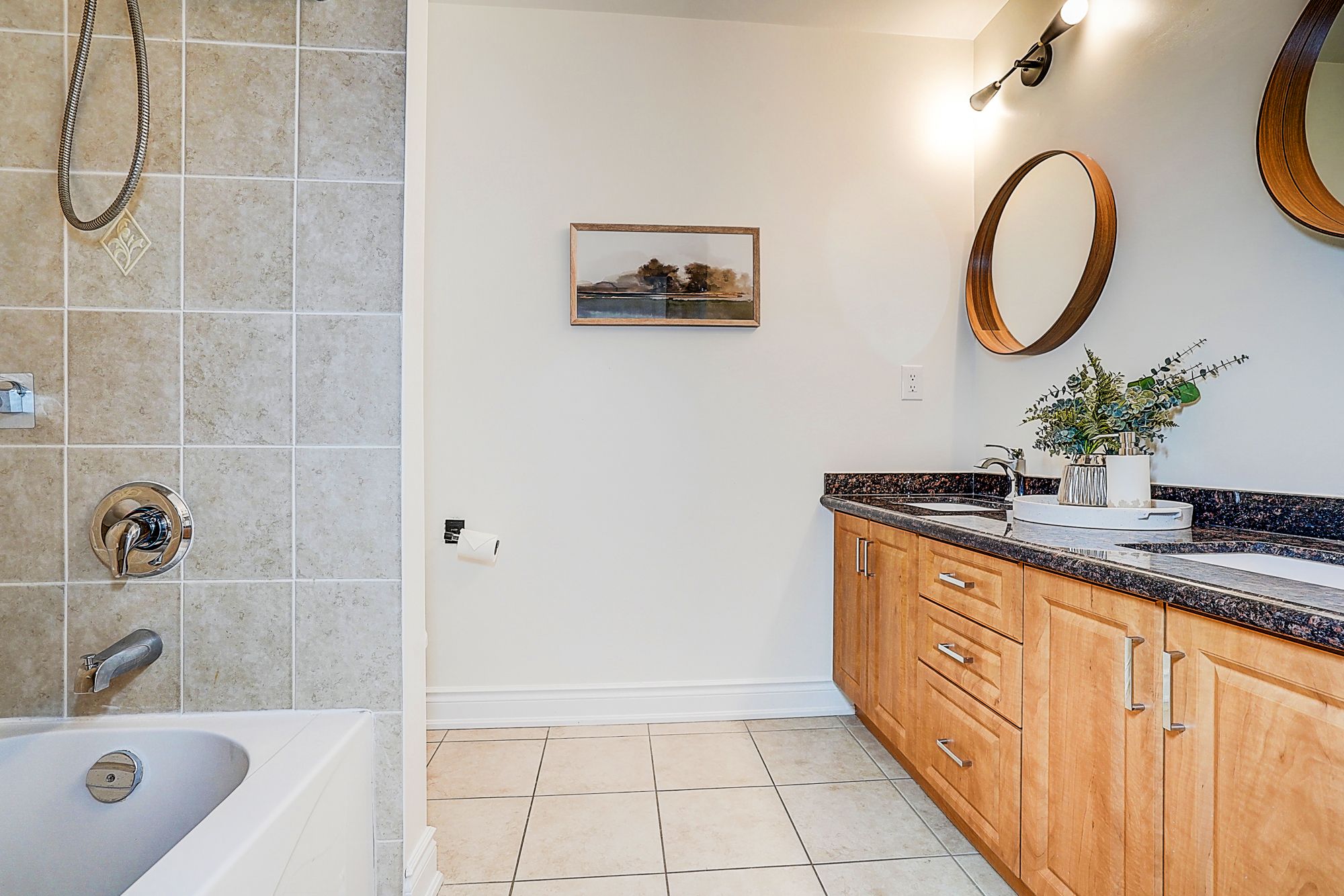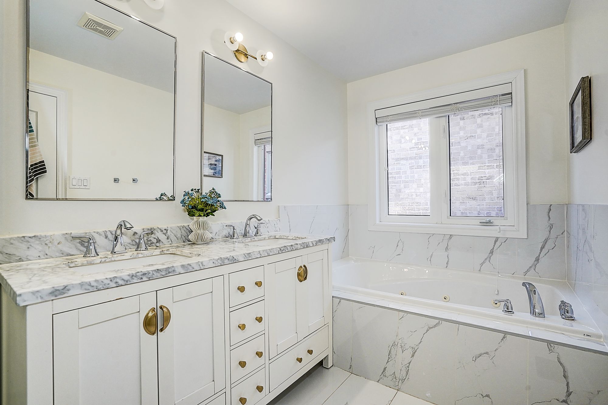 Stunning luxury & peaceful oasis home sitting on a rarely available south-facing premium ravine lot with spectacular view of nature. This renovated showstopper with 4 bedrooms and 4 washrooms! Totally spent over $100k on renovations. This home with a functional layout, 9 ceilings, hardwood floors and pot-lights throughout, and a sun-filled family room with fireplace, it is perfect for modern family living. Gleaming kitchen with italian quartz countertops, huge over-sized 8 feet island, pot drawers, backsplash, and pantry with built-in electrical. Hardwood floor and pot-lights throughout, upgraded powder room. The master ensuite is upgraded in carrera white. Double closets in master, and look at the privacy out the window! Get your fill of nature in the city! Upstairs guest bath with granite & double sinks. The fully finished basement with a bathroom features a large recreational area, storage, gym, bar providing additional space for living and entertainment. The backyard is done by professional landscaping nothing short of a private oasis surrounded by mature trees. Close to top-rated schools, parks, trails, shopping, and major highways, this home offers the perfect blend of privacy, luxury, and convenience. Very few have this lot + location + price point! A must see and buy!
