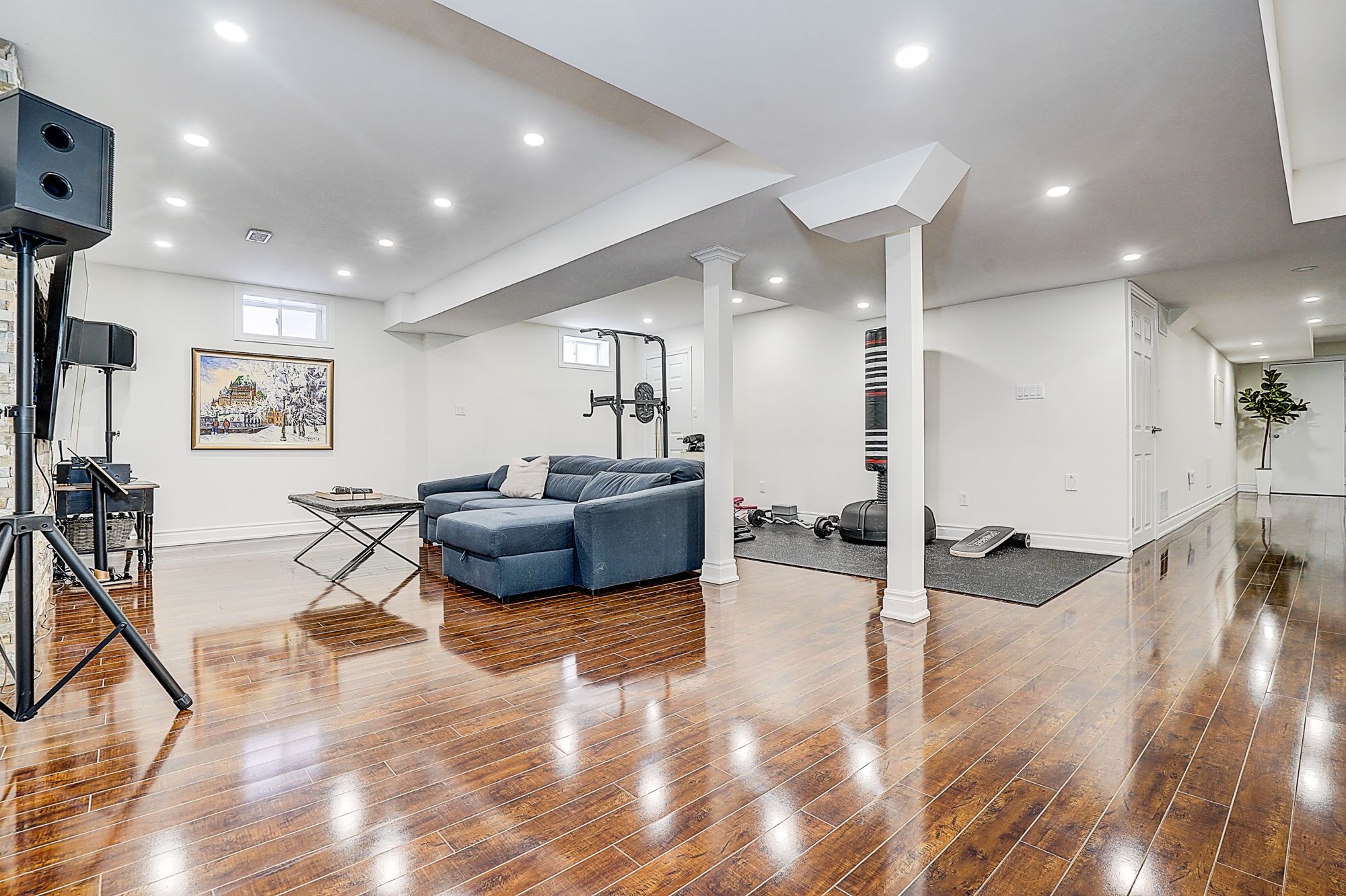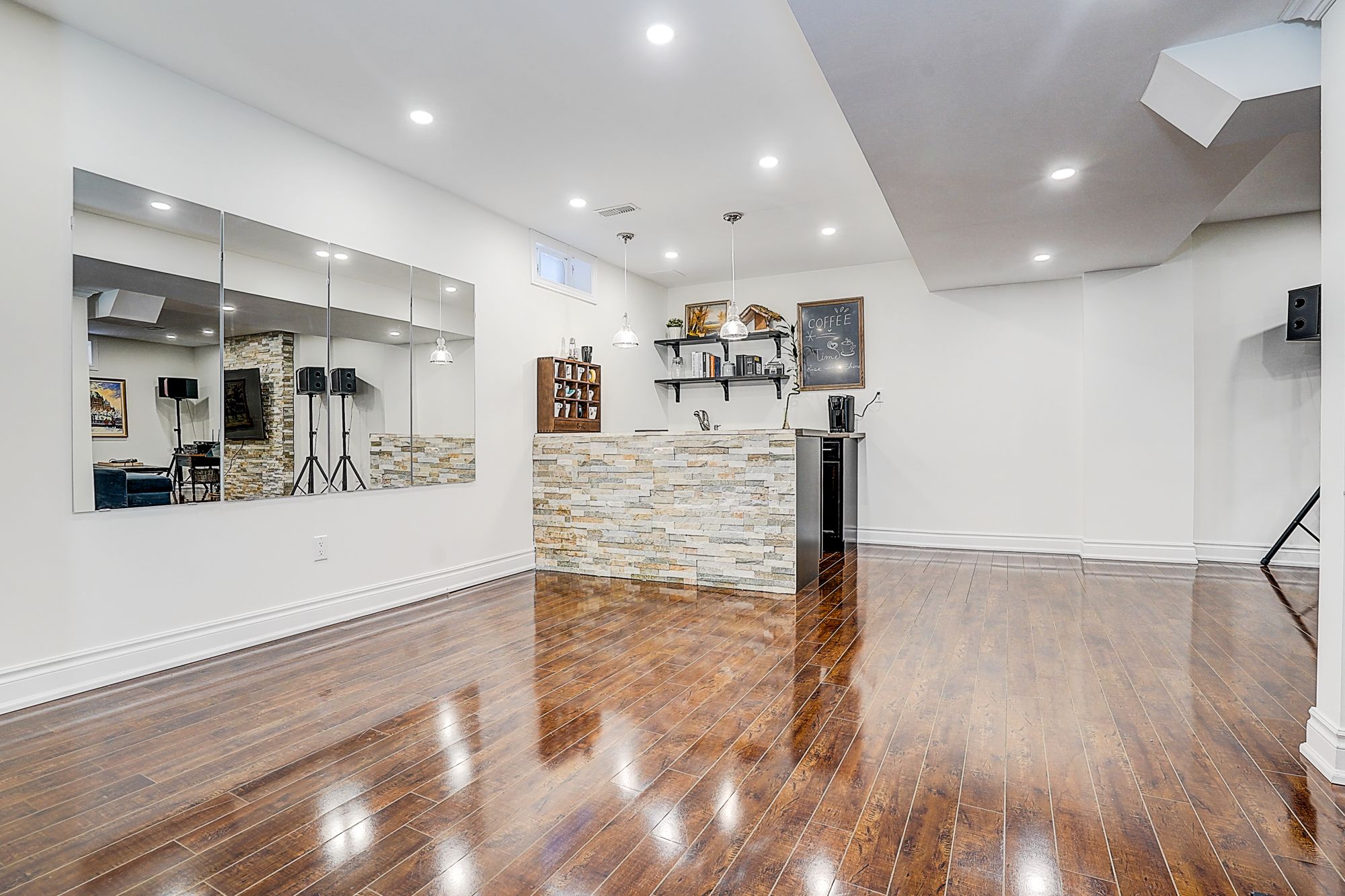 • Fully finished basement with recreation area, gym, and bar for fun times.