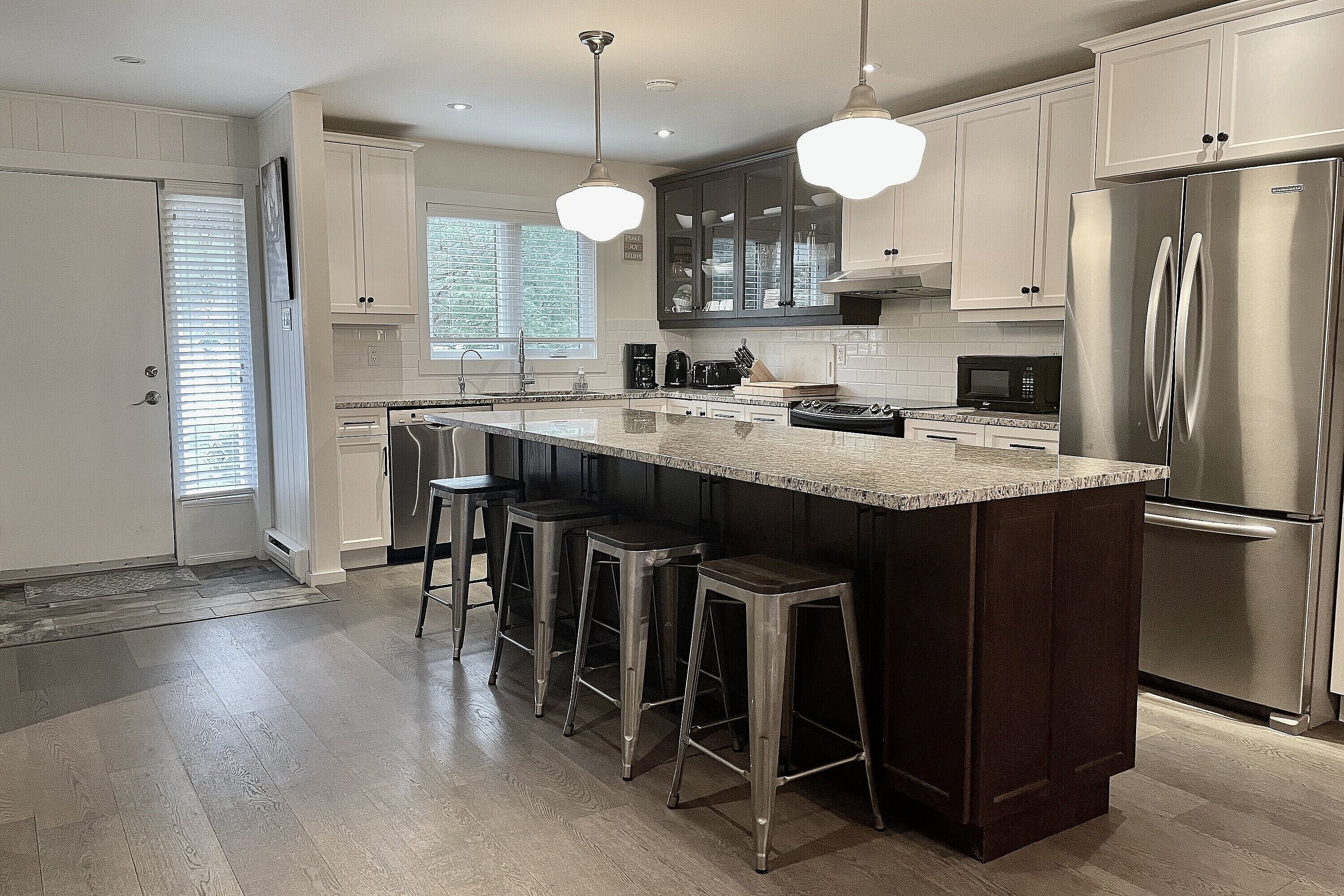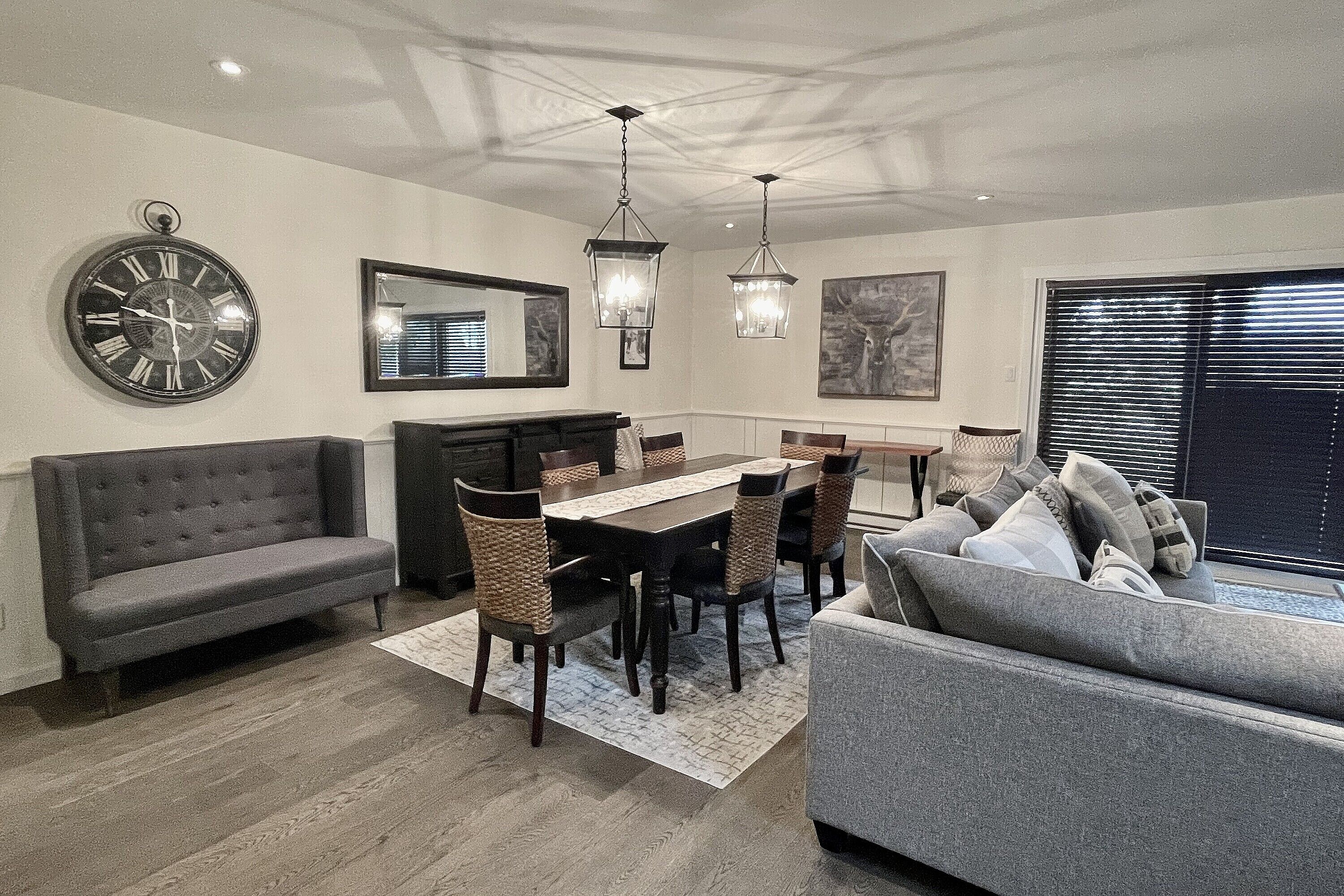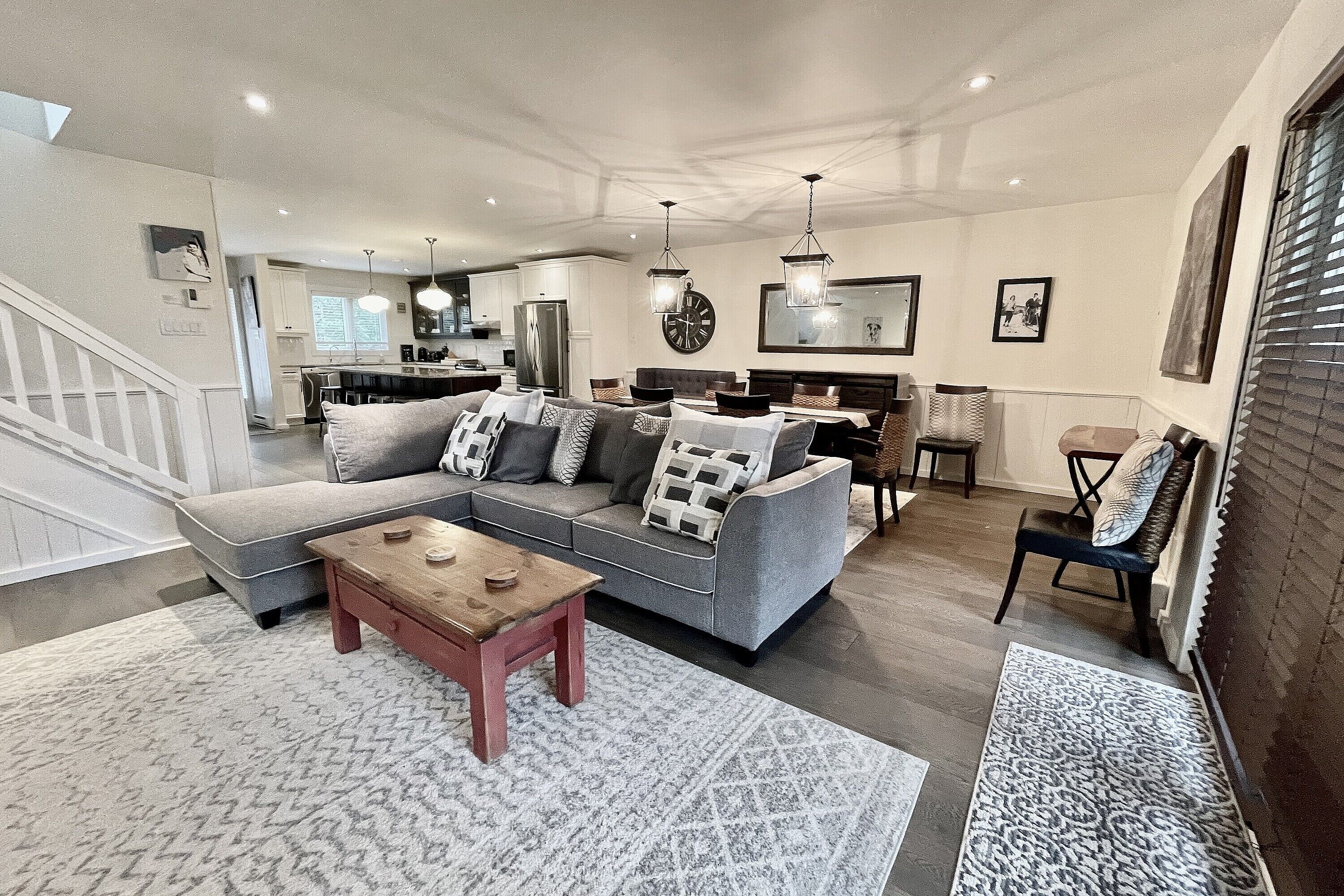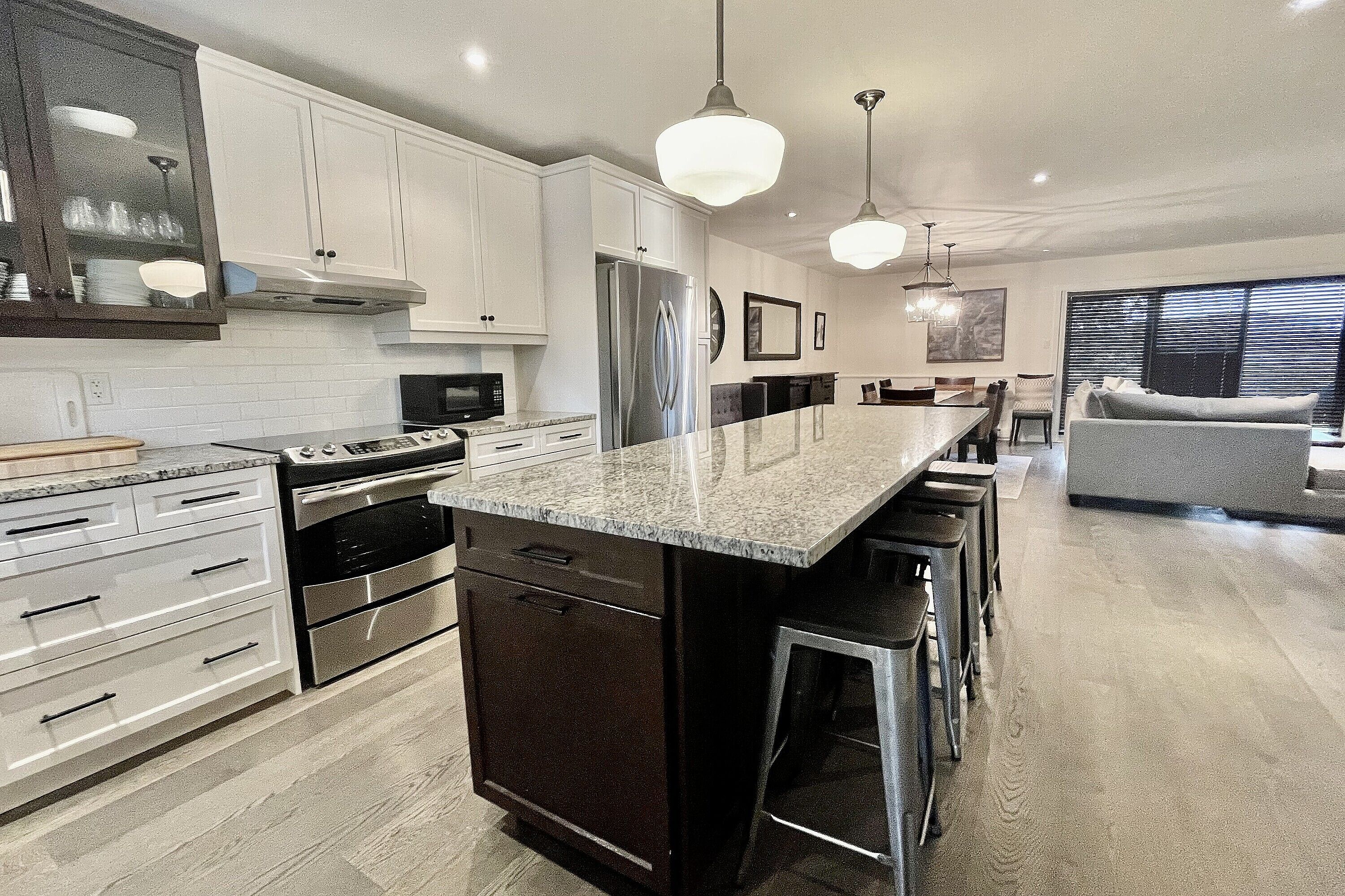 Short term seasonal rental, available for may 1/2026-oct 31 2026. Fully furnished, nicely renovated 4 bedroom, 3 bath luxury town home in the heart of a highly sought after recreational area. Open concept kitchen, and dining with gas fireplace. Stainless steel appliances with chef's area, granite countertops, main floor laundry, powder room and large storage room. Perks include ionized filtration drinking water system, primary ensuite steam shower, hot water on demand. Enjoy this luxurious vacation property backing onto the golf course with lower level patio and private primary deck with views of the mountains. One assigned parking space, guest parking available. Non smoking unit and small non-shedding dog may be considered. Not available for a yearly lease.