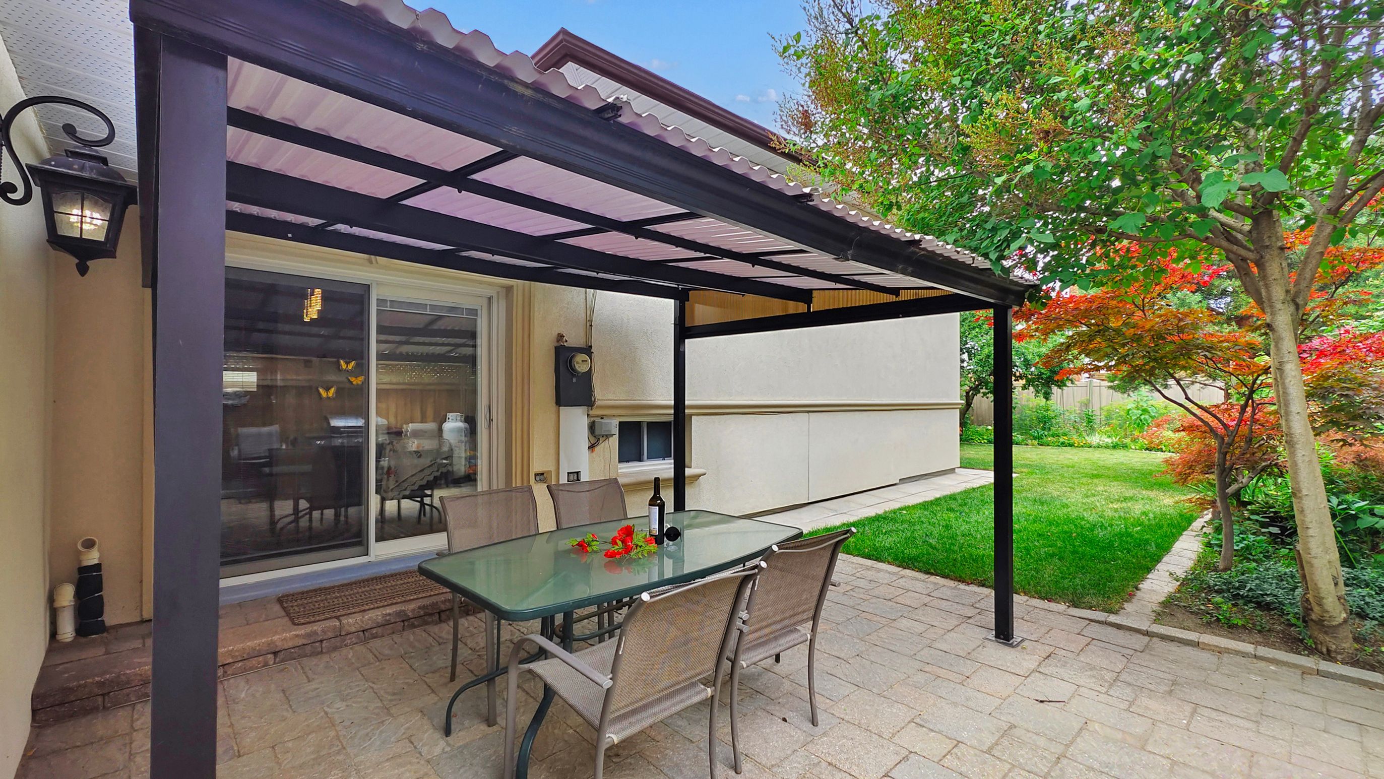 • Private backyard oasis with mature landscaping for relaxation and gatherings.