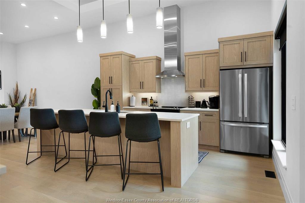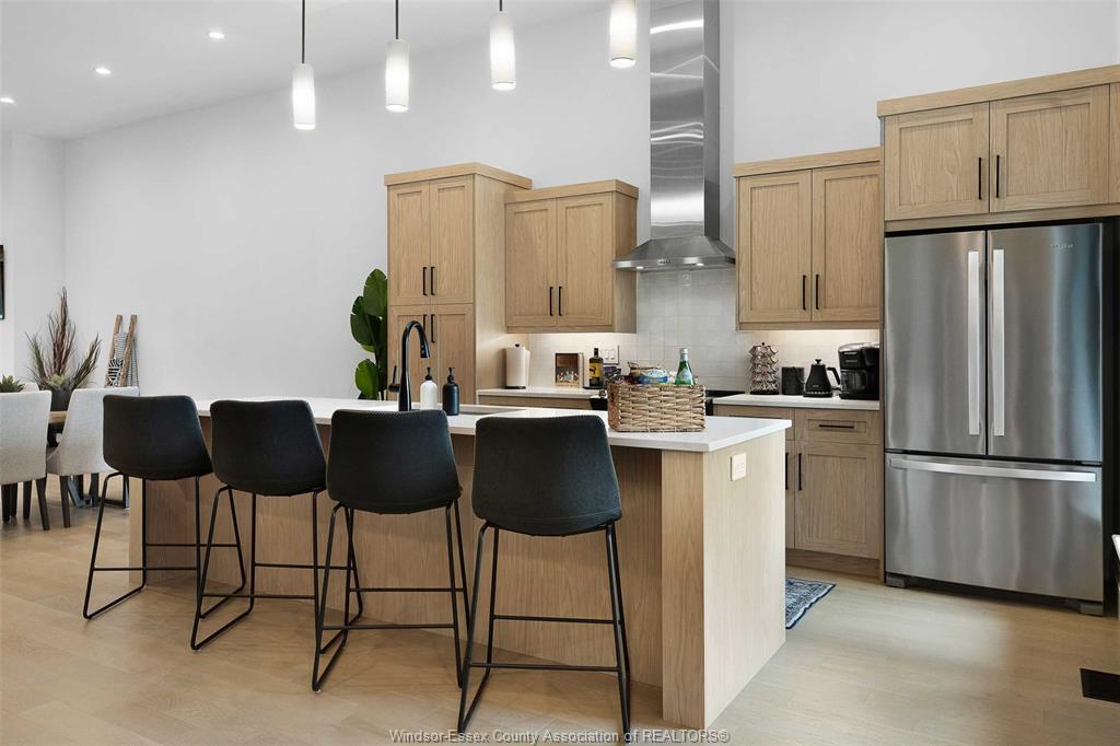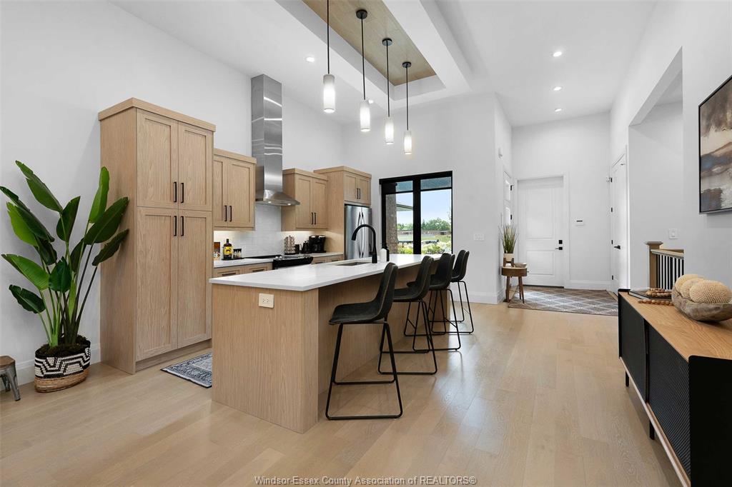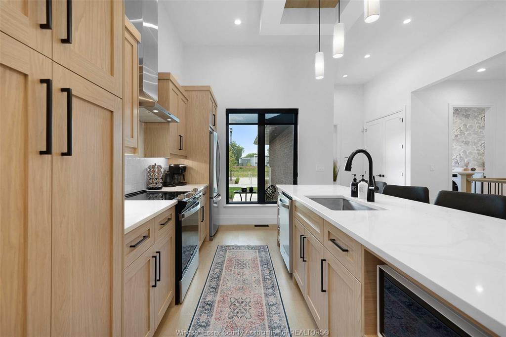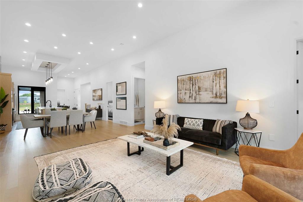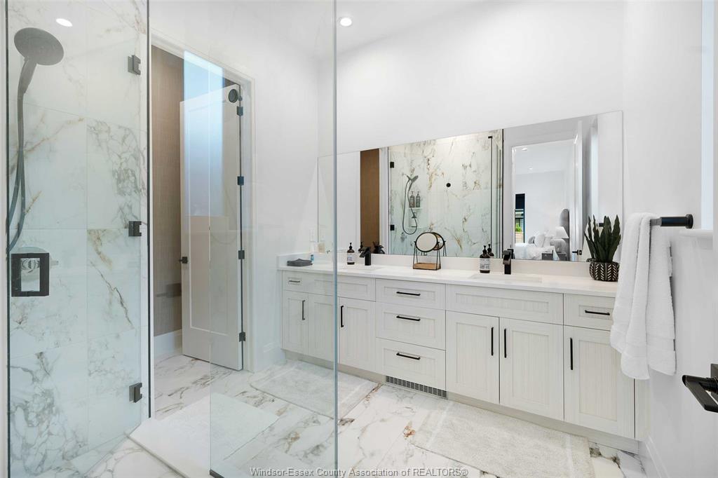 Discover this brand new, ultra-luxurious semi-ranch in a prime south windsor location. Featuring 12-ft ceilings, this stunning open-concept layout offers 2 spacious bedrooms and 2 full baths, including a lavish primary ensuite with glass tiled shower, double vanity, and walk-in closet. Custom kitchen with quartz countertops and a massive island flows seamlessly into the bright living and dining areas. Enjoy the convenience of main floor laundry, a double car garage, and a covered rear porch with aggregate concrete. Fully finished concrete driveway, fully landscaped, and all appliances included. Bonus: sauna and gym in the basement – perfect for wellness at home. Built with only the highest quality finishes throughout. Backed by the balance of 7-year tarion new home warranty. Close to schools, shopping, parks & all amenities. Don’t miss this rare opportunity – luxury, location & lifestyle all in one!