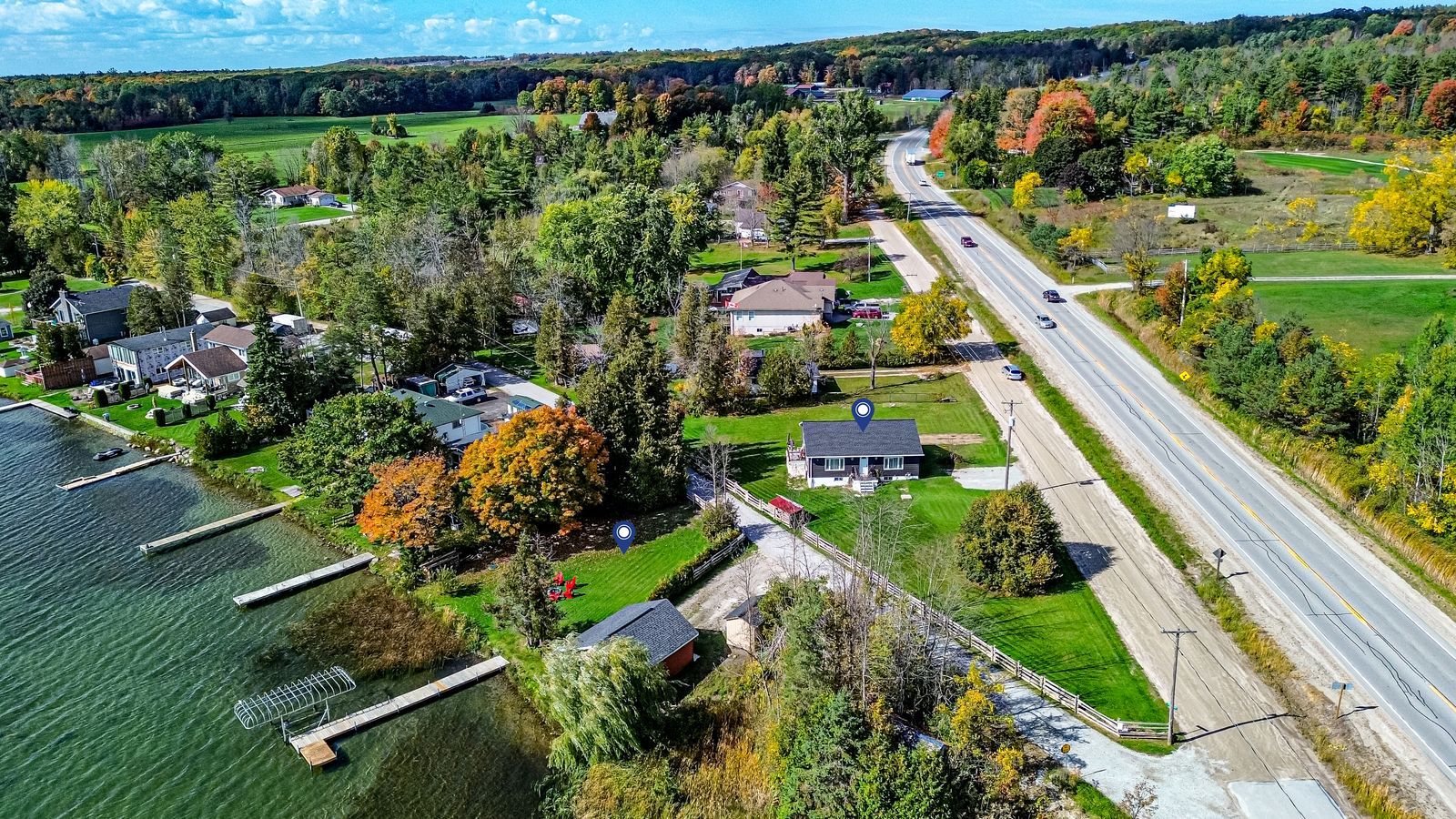 Two properties, one incredible waterfront opportunity on orr lake! Some homes give you a place to live, and some give you a place to escape to, but this one gives you both, with a cozy bungalow on one property and your own separate waterfront parcel across the road on orr lake. This unique two-property offering spans a combined 0. 84 acres. Water views from the house and easy access to the shoreline create a lifestyle filled with dock days, shoreline fires, paddling, fishing, and time spent on the water. The main residence at 5724 penetanguishene road is set on a municipally maintained year-round road and offers open-concept principal rooms, including an updated kitchen with stainless steel appliances, ample cabinetry, and a large peninsula with a double sink, while the adjacent living area is warmed by a cozy gas fireplace. Significant updates have already been completed, including vinyl siding, windows, drywall, the well, pressure tank, shingles, and a recently pumped septic. At 1 cedar lane, the waterfront parcel offers over 100 feet of private shoreline, a 40 ft dock, and a 2-car garage with electric heat and a 60-amp panel. Orr lake is known for great fishing, and with a public boat launch on the lake plus opportunities for boating and winter skating, this is where full-time living comes with a little more freedom, a little more fun, and a whole lot more lake life!