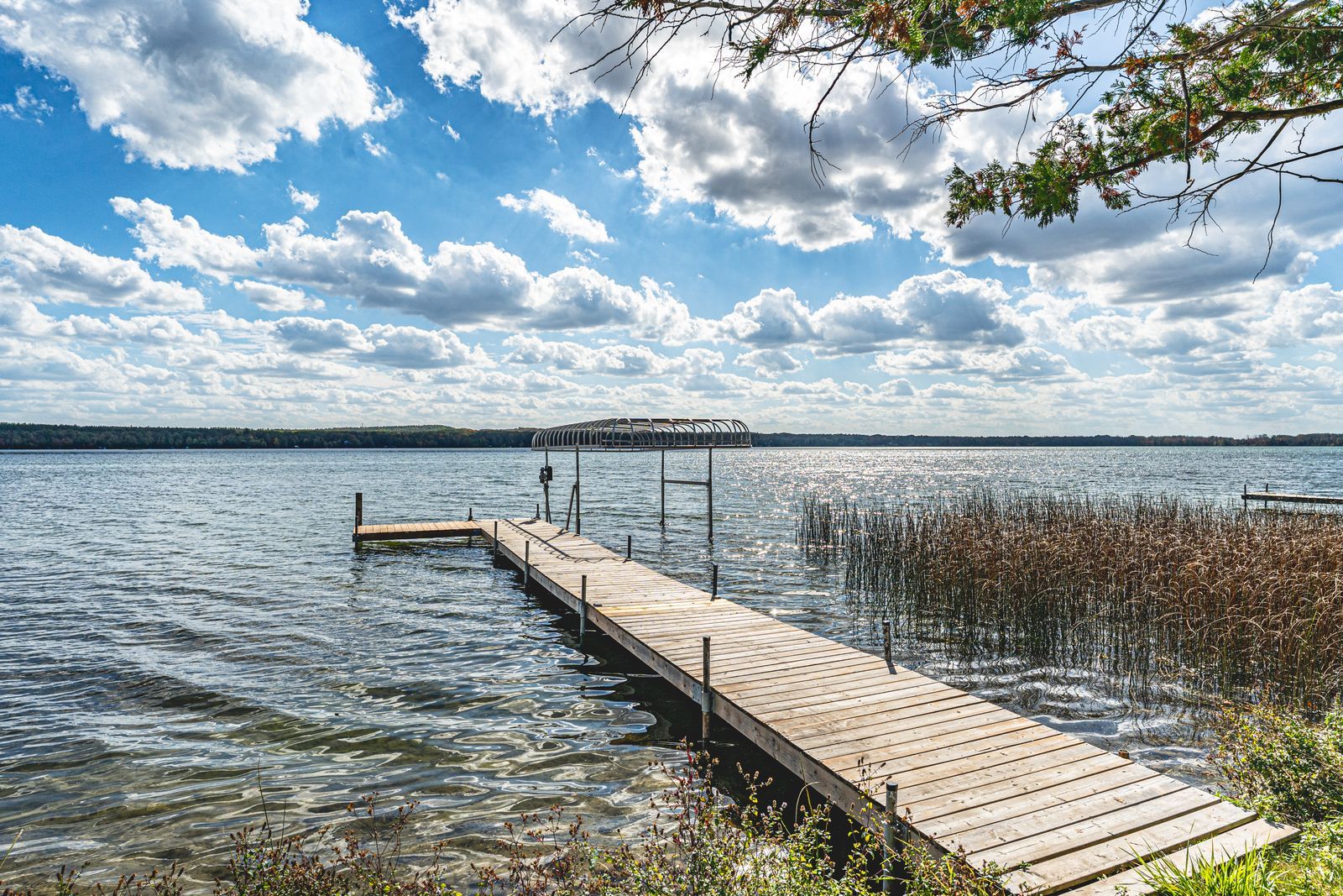 • Private shoreline with a dock, perfect for fishing and boating.