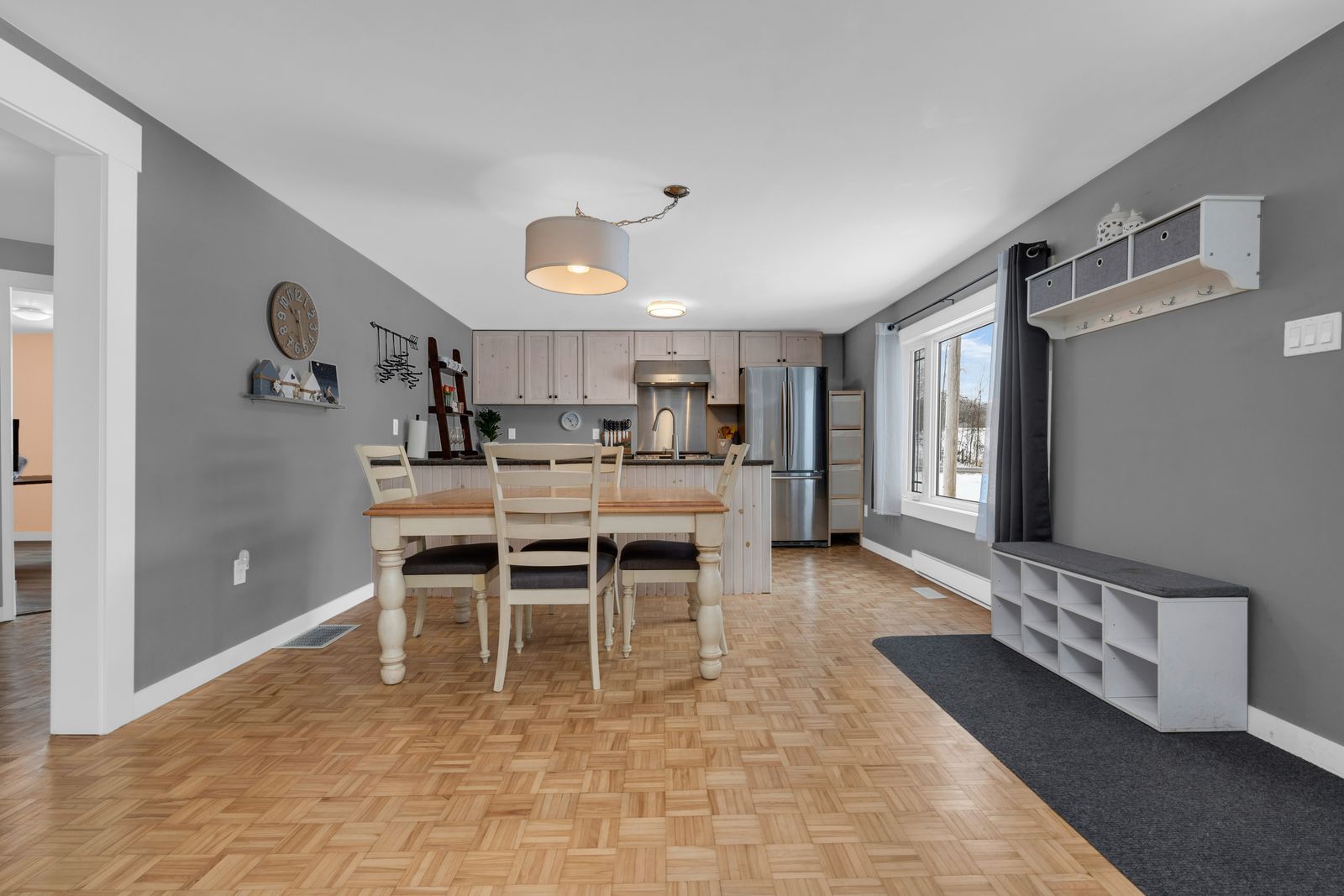 • Updated bungalow with open-concept living and modern kitchen amenities.