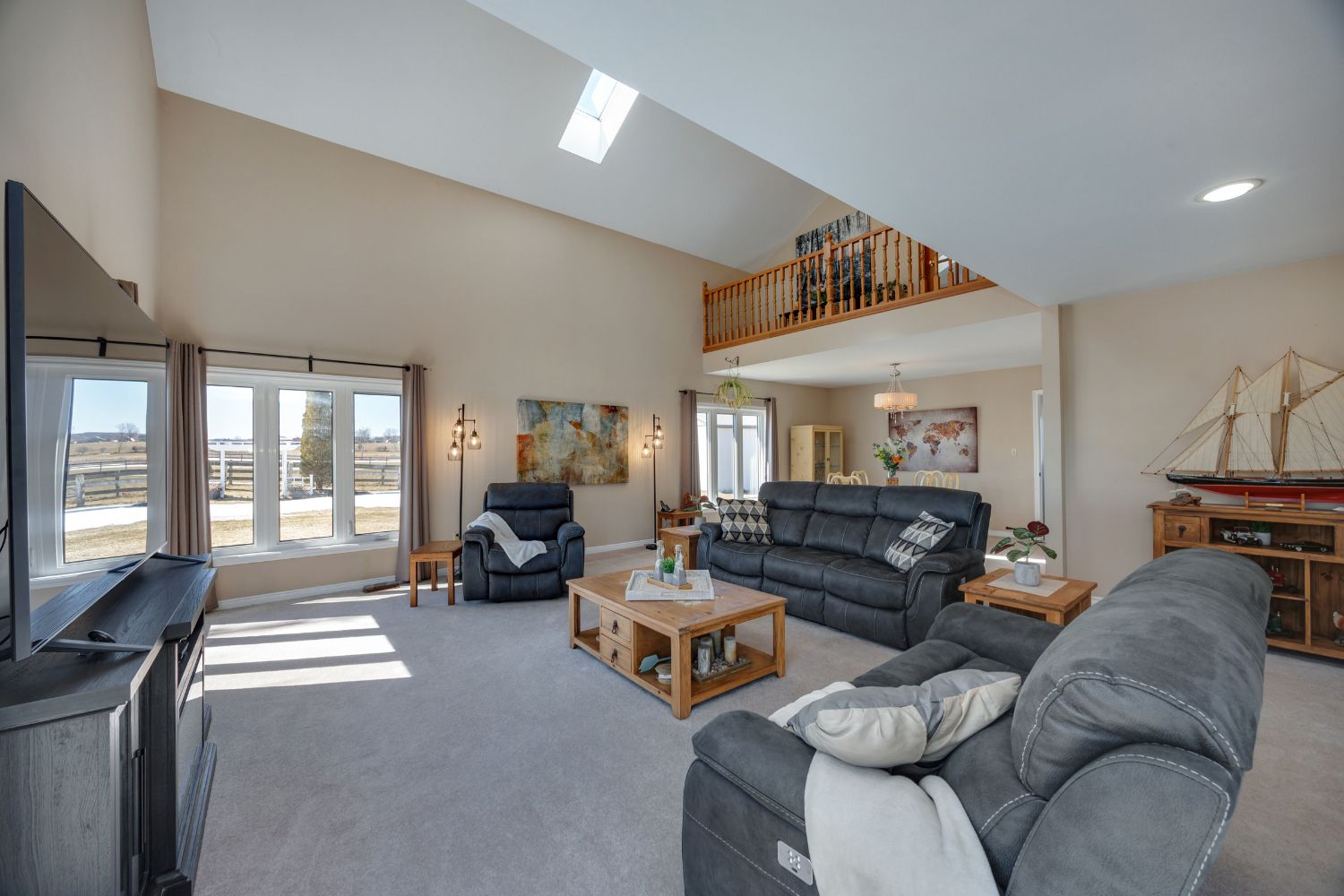 Exceptional equestrian estate sitting on over 61 acres of serene countryside, conveniently close to hwy 401, 407, 115/35, shopping, schools, and amenities. Spread out in a spacious 2,924 sq ft home featuring 4 bedrooms and large principal rooms overlooking the farm. The sun-filled main floor boasts two walkouts, a large family kitchen with breakfast bar and pantry, bright breakfast area, cozy living room with fireplace, formal dining room, and huge family room with vaulted ceilings. Main floor laundry adds convenience. Upstairs, a grand hallway with computer nook overlooks the main floor. Retreat to the large primary bedroom with walk-in closet and two additional bedrooms. Finished lower level includes a 4th bedroom, rec room, utilities, and workshop. This turnkey property offers a well-established, high-level boarding operation with instant income and opportunity to expand revenue. The property grows its own hay and offers multiple pastures, large fenced paddocks, and three horse shelters (2015, 2017, 2022). Equestrian facilities include a 30 x 90 ft 5-stall barn with hay storage and wall-to-wall matting, 40 x 120 ft covered training arena, 100 x 200 ft outdoor riding arena, 60 ft round pen, 16 x 40 ft shop, and on-property trail. Recent updates include main floor windows and doors (2026), front and patio french doors (2023), kitchen update (2026) entryway and main floor bath flooring (2026), roof (house & garage) (2022), kitchen & appliances (2021), flooring (2022), bedroom window (2019), paint (2022), and lighting (2022). Exterior improvements include barn siding (2017), horse stalls (2017), and over 5,000 ft of wood fencing (2015-2018). Extras: see attached features list and floor plan - plus so much more to see!