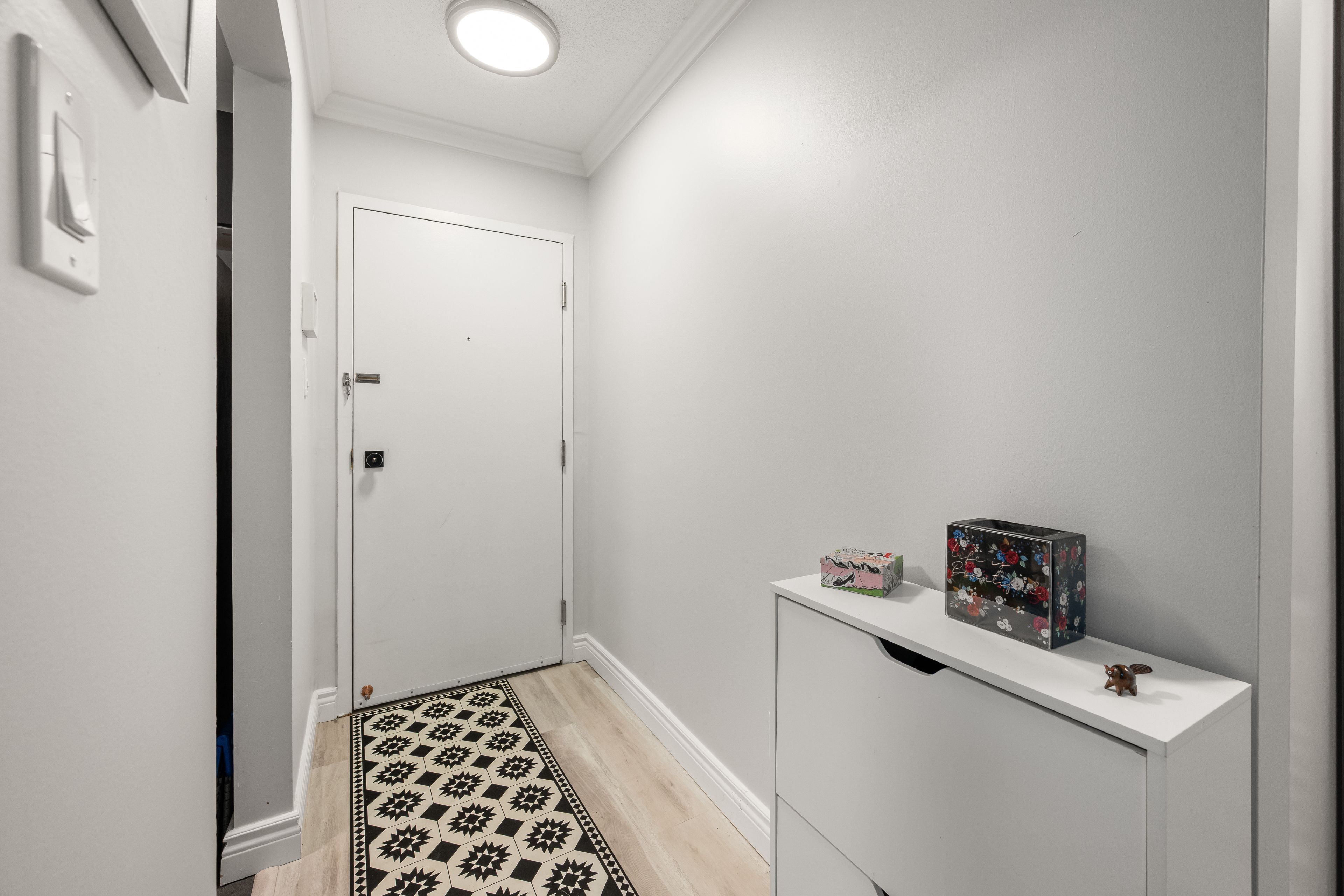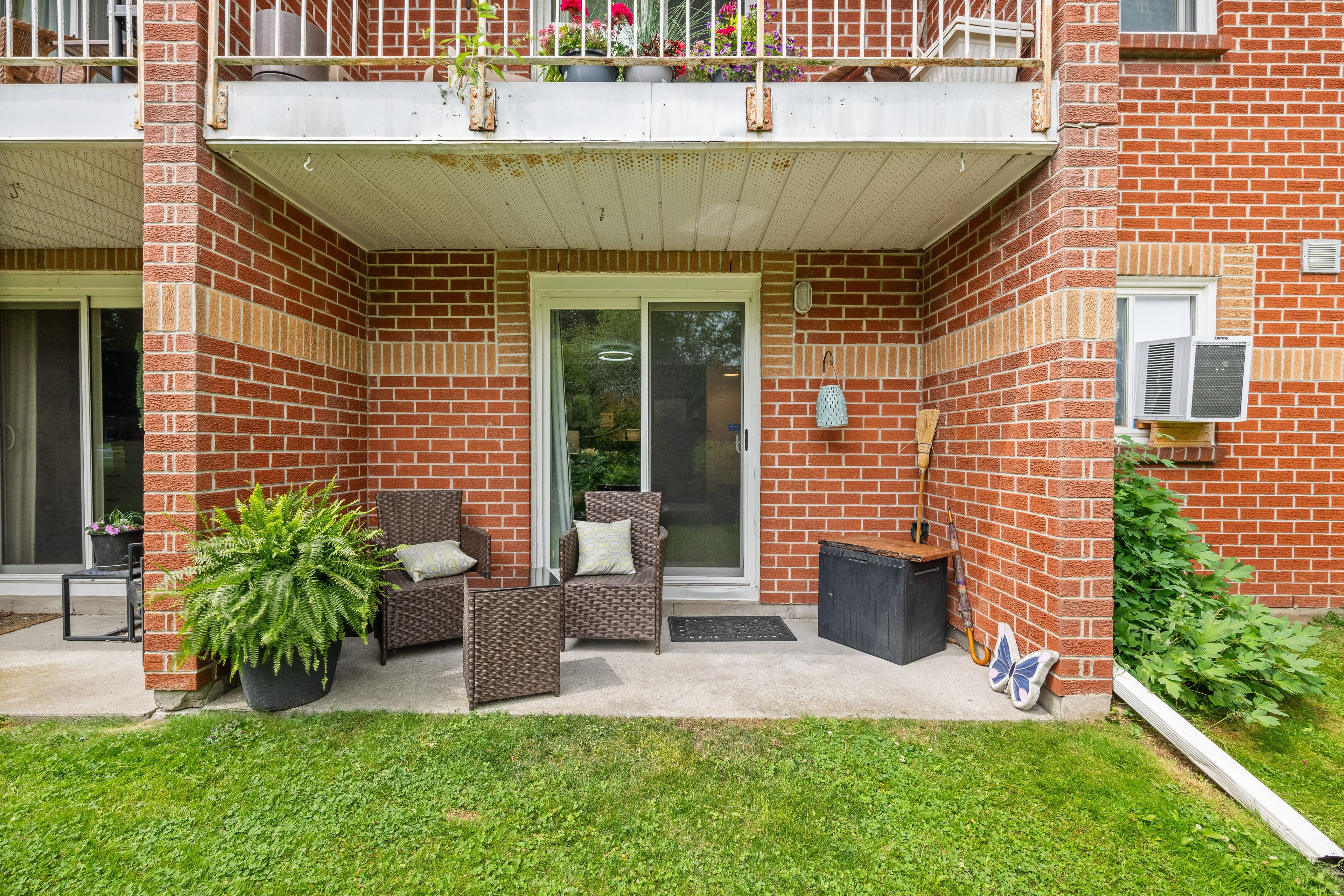 Fully renovated | turn-key living at 114-573 armstrong road step into modern elegance with this completely renovated 2-bedroom, 1-bathroom condo in the desirable meadowbrooke condominium community. Every inch of this ground-floor unit has been thoughtfully updated to create a fresh, stylish, and low-maintenance living experience. Enjoy the brand-new custom kitchen, featuring sleek countertops, stainless steel appliances, upgraded outlets and switches, and soft-close cabinetry with custom sliding organizers-perfect for maximizing space and function. The adjoining dining area with a passthrough window makes hosting effortless. The spacious living room is flooded with natural light and offers a seamless walk-out to your private terrace-ideal for morning coffee or relaxing summer evenings. Both bedrooms have been updated with new paint, trim, crown molding, and lighting, offering a serene and sophisticated atmosphere. The completely remodeled 4-piece bathroom showcases modern finishes and quality craftsmanship. New plumbing, updated electrical, designer light fixtures, and luxury flooring run throughout, while upgraded baseboards and crown molding add a polished touch. Additional features include a large in-unit storage room and one reserved parking space, plus ample visitor parking. Set in a quiet, well-managed building, you'll love the peace of mind and convenience this condo offers. Located minutes from transit, schools, parks, trails, dining, and shopping-this stunning unit is move-in ready. Don't miss your chance to own a brand-new home in a well-established community!