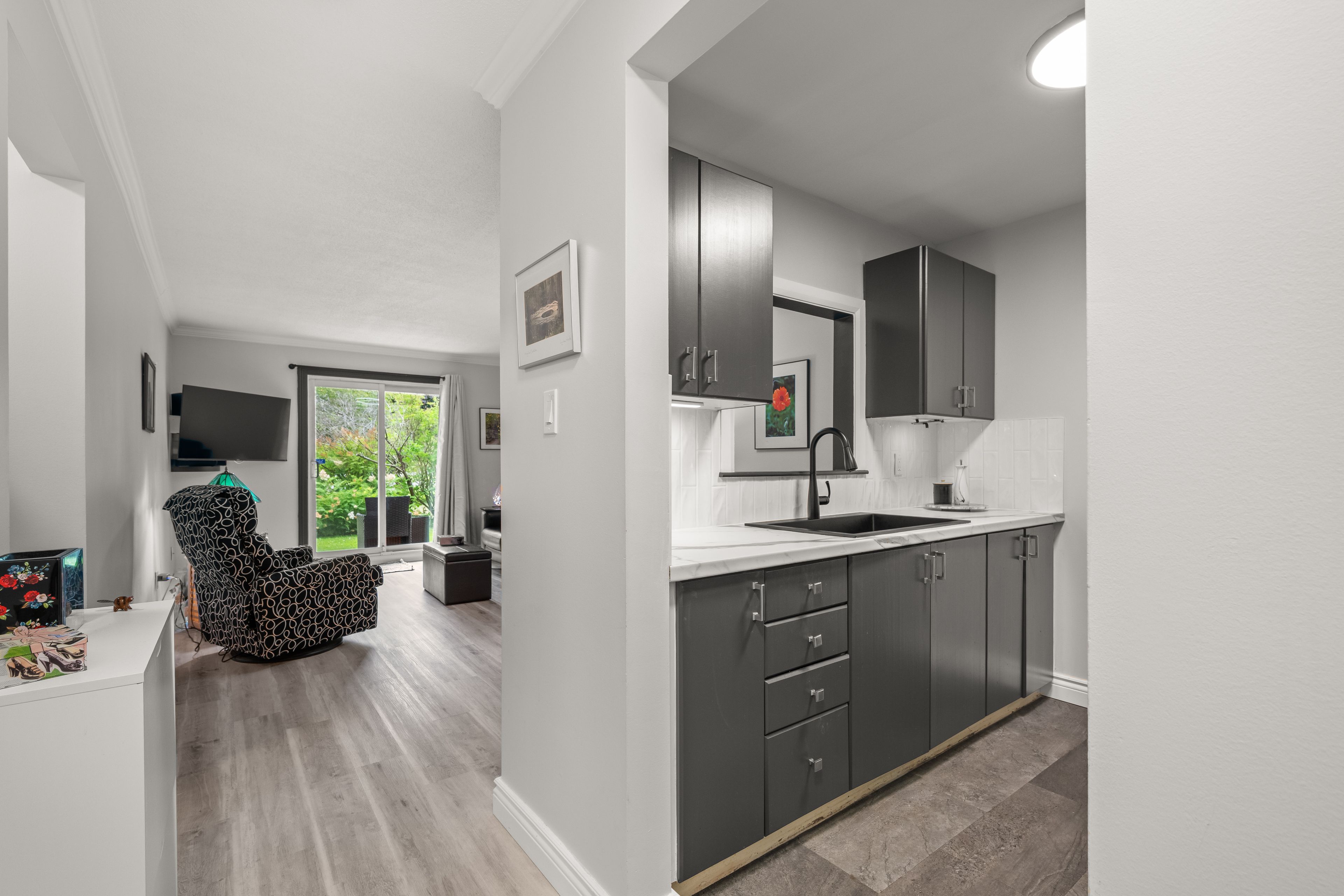 • Completely renovated ground-floor condo with modern updates and stylish finishes.