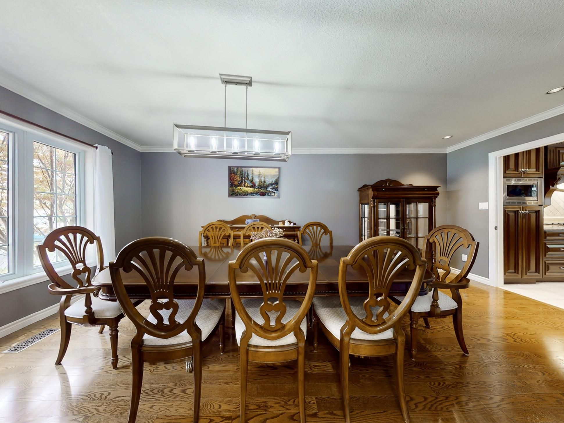 • Formal dining room with crown molding, perfect for hosting family and friends.