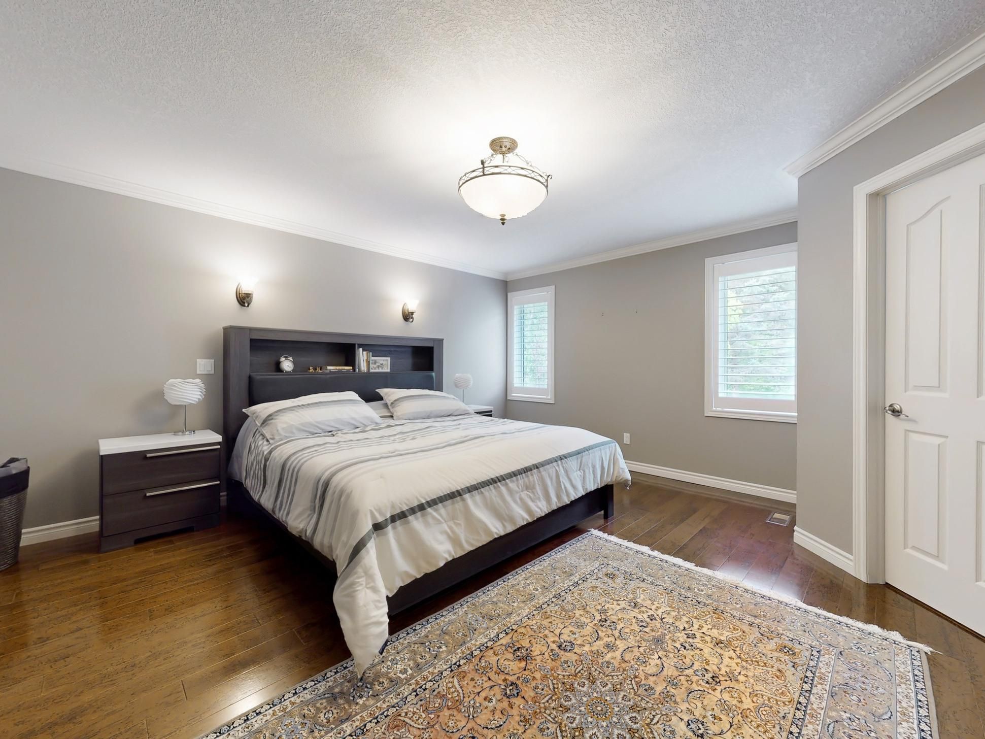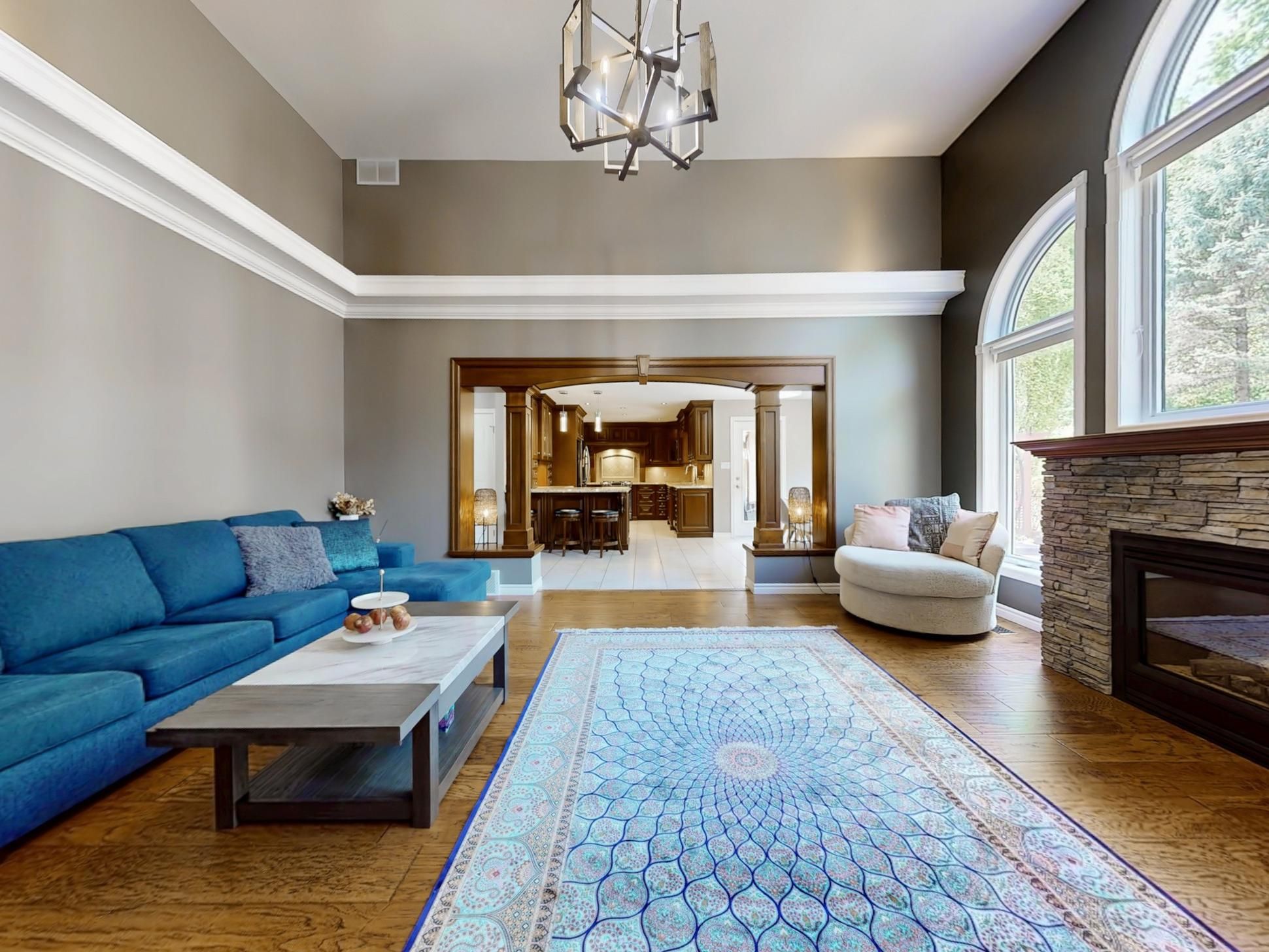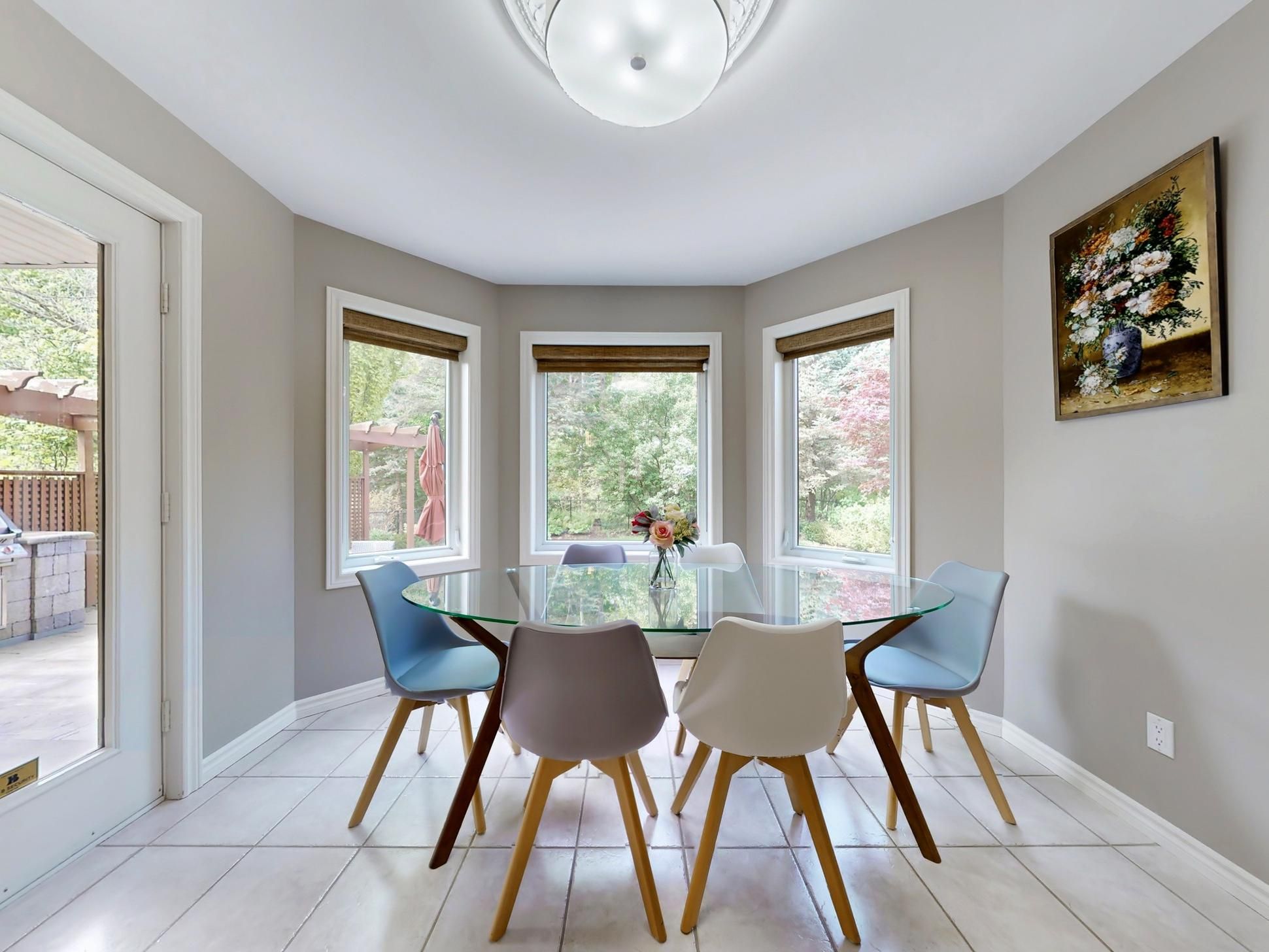 Welcome to this stunning detached home backing onto forest in a highly desirable conservation area! This beautifully maintained property offers a perfect combination of comfort, style, and natural surroundings. Enjoy exceptional privacy with no rear neighbors, as the home backs directly onto tranquil forested conservation land. Inside, a formal dining room with elegant crown moulding provides the perfect setting for hosting family and guests. The well-appointed kitchen features granite countertops, abundant cabinetry, and overlooks the impressive two-storey great room highlighted by a cozy gas fireplace with a striking stone surround. Upstairs, the spacious primary bedroom offers a peaceful retreat with crown moulding, hardwood flooring, a walk-in closet, and a beautifully appointed ensuite bathroom. The finished basement provides additional versatile living space, including a large recreation room, a modern bathroom, and a bonus room with a convenient kitchenette-ideal for guests, extended family, or potential bedroom use. Additional upgrades throughout the home include stylish light fixtures, pot lights, and california shutters. Step outside to a fully landscaped and private backyard featuring a professionally installed irrigation system, manicured gardens, a charming pergola, a large concrete patio, and a built-in gas firepit-perfect for relaxing or entertaining outdoors. Located in one of the area's most sought-after neighborhoods where nature meets luxury. Furnace (2021), humidifier (2021), ge smart washing machine (2023). Don't miss this exceptional opportunity!