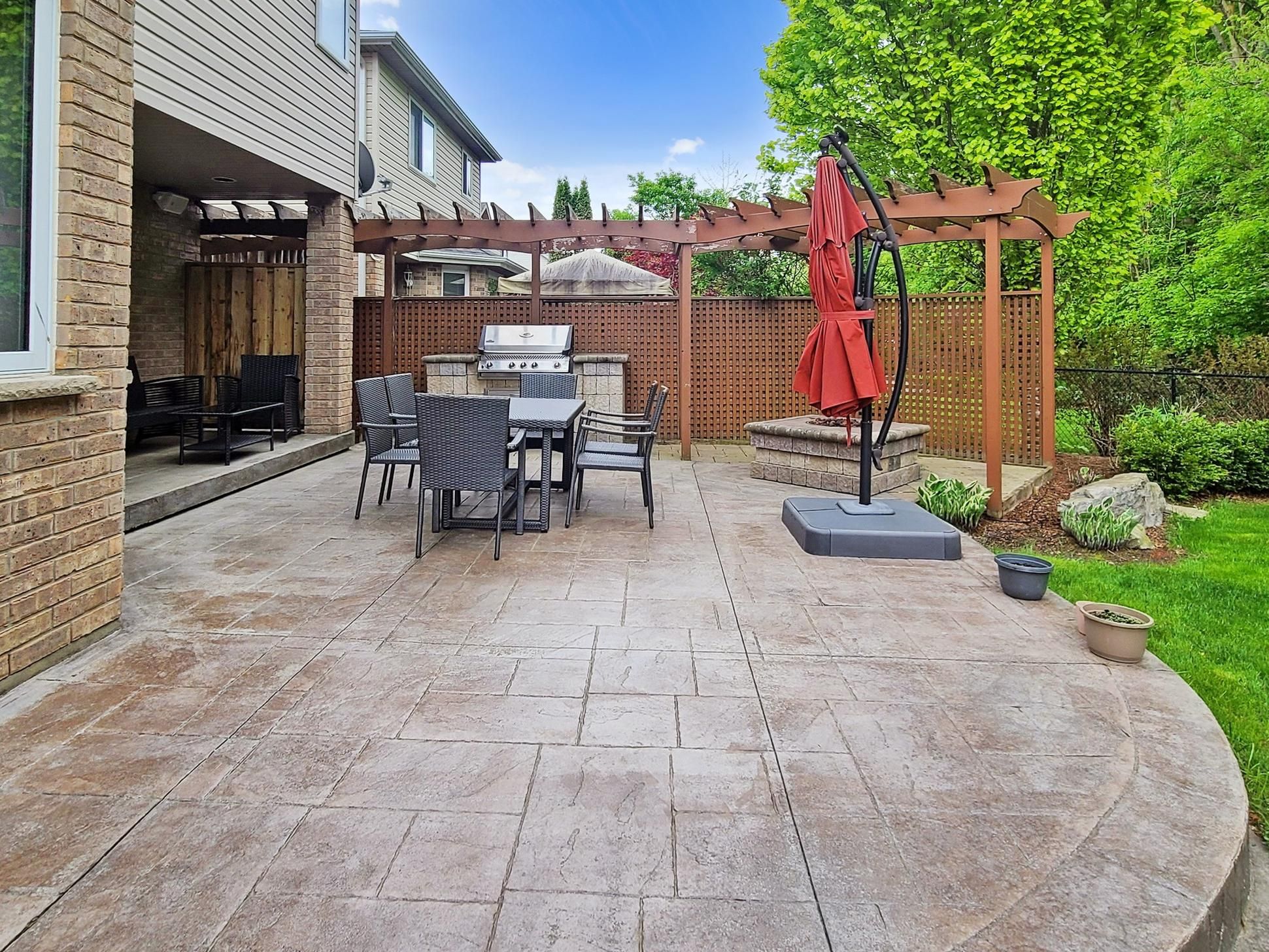 • Landscaped backyard features a patio, pergola, and built-in gas firepit.