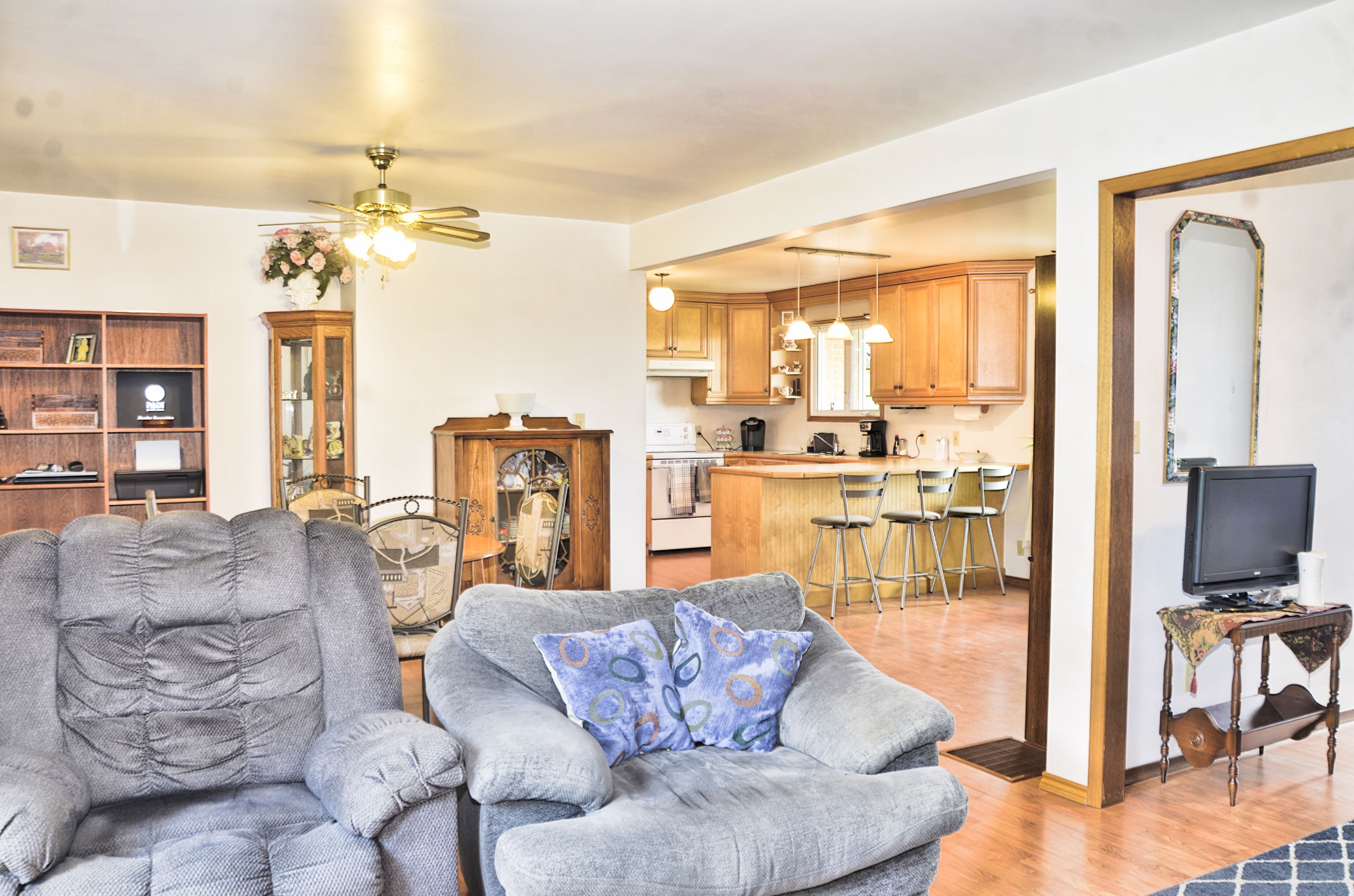 • All-brick bungalow with a bright, open-concept living space.