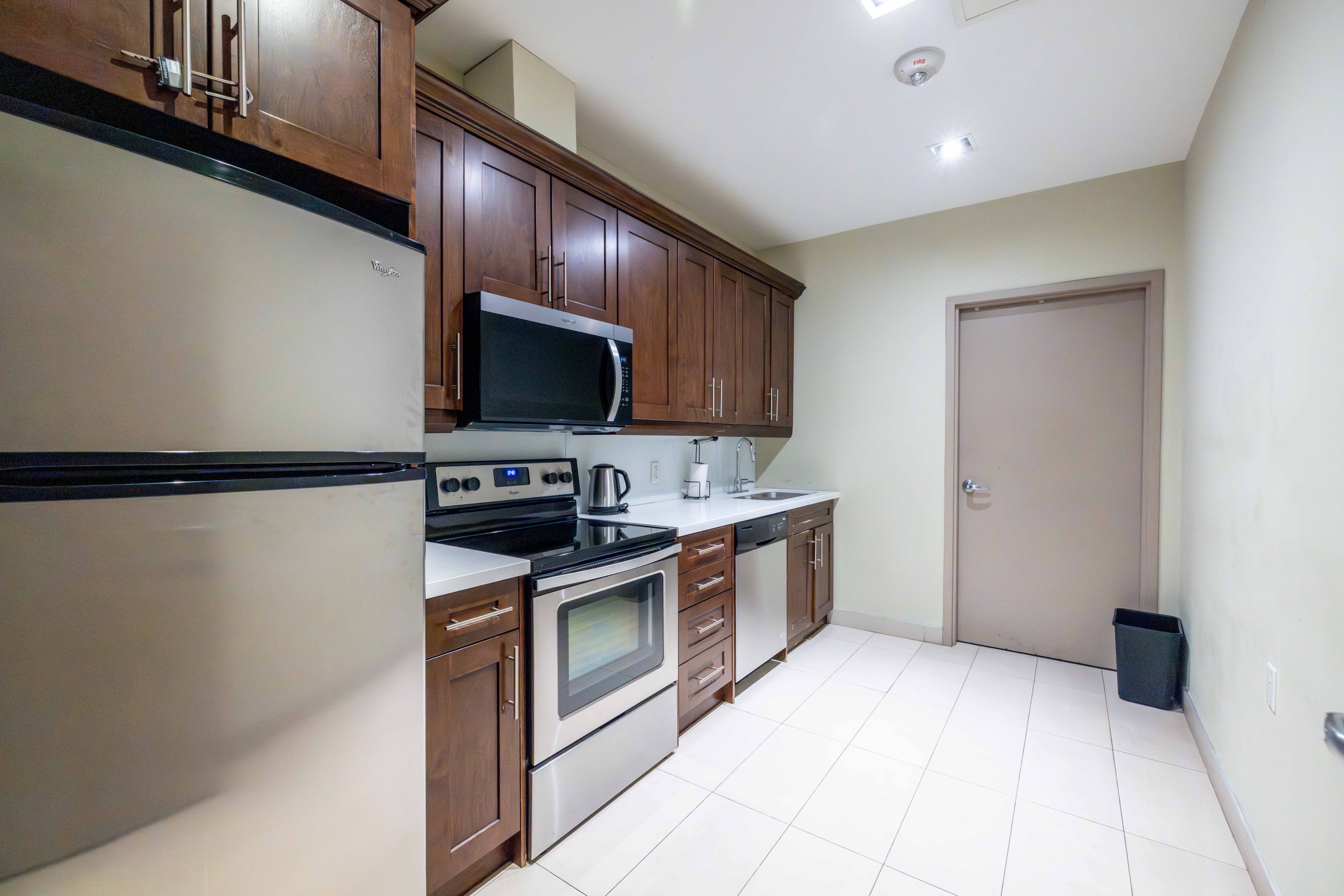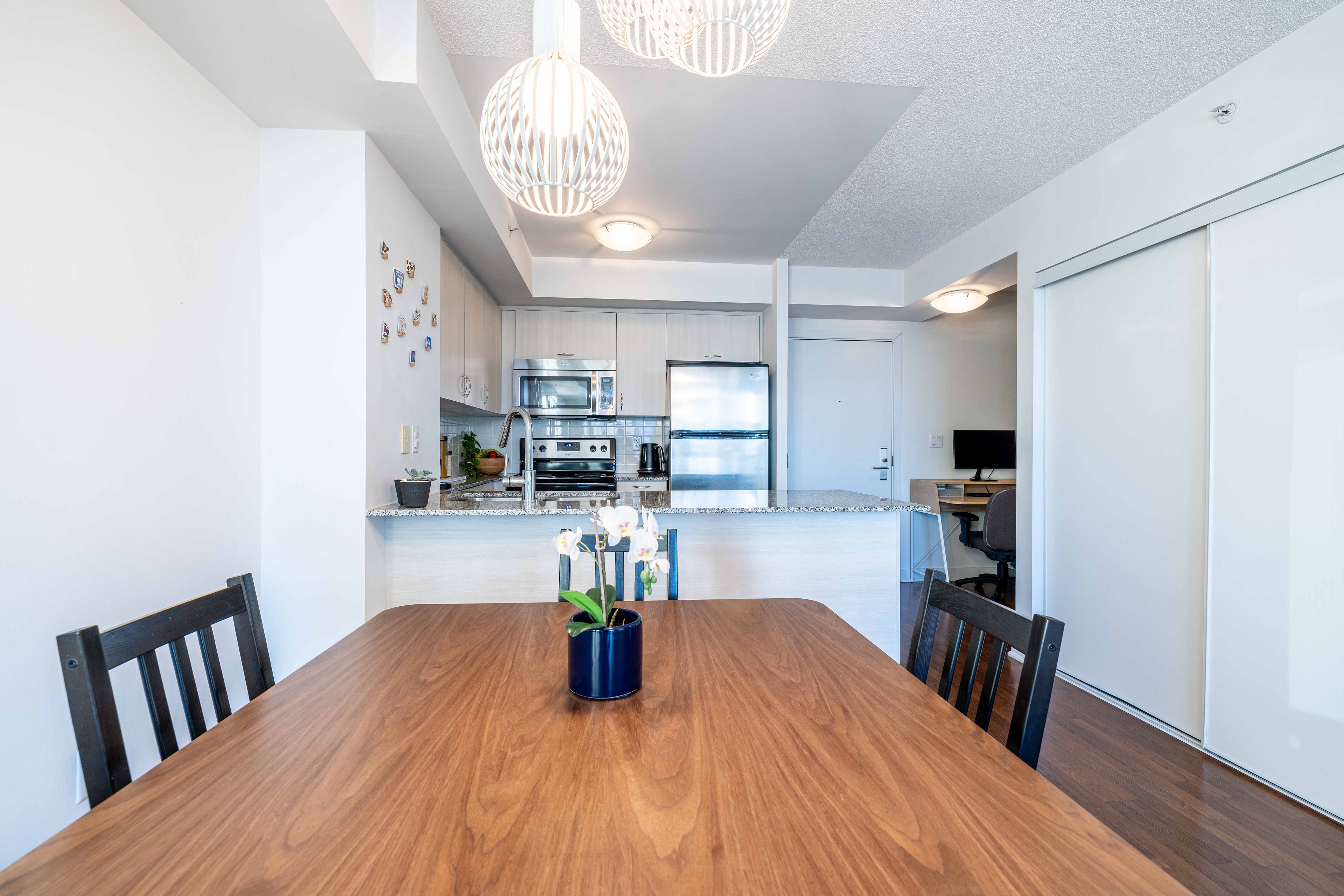 • Stylish kitchen with granite countertops and modern appliances.