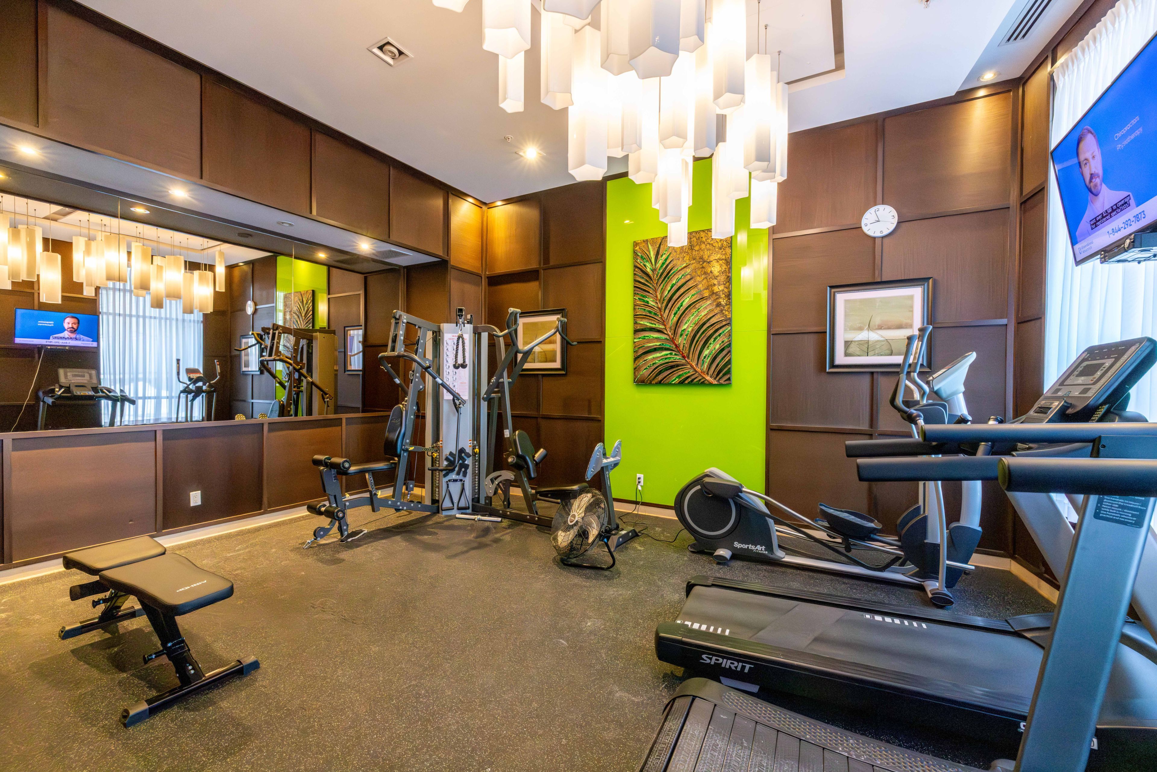 • Building amenities include gym, pool, and concierge services.