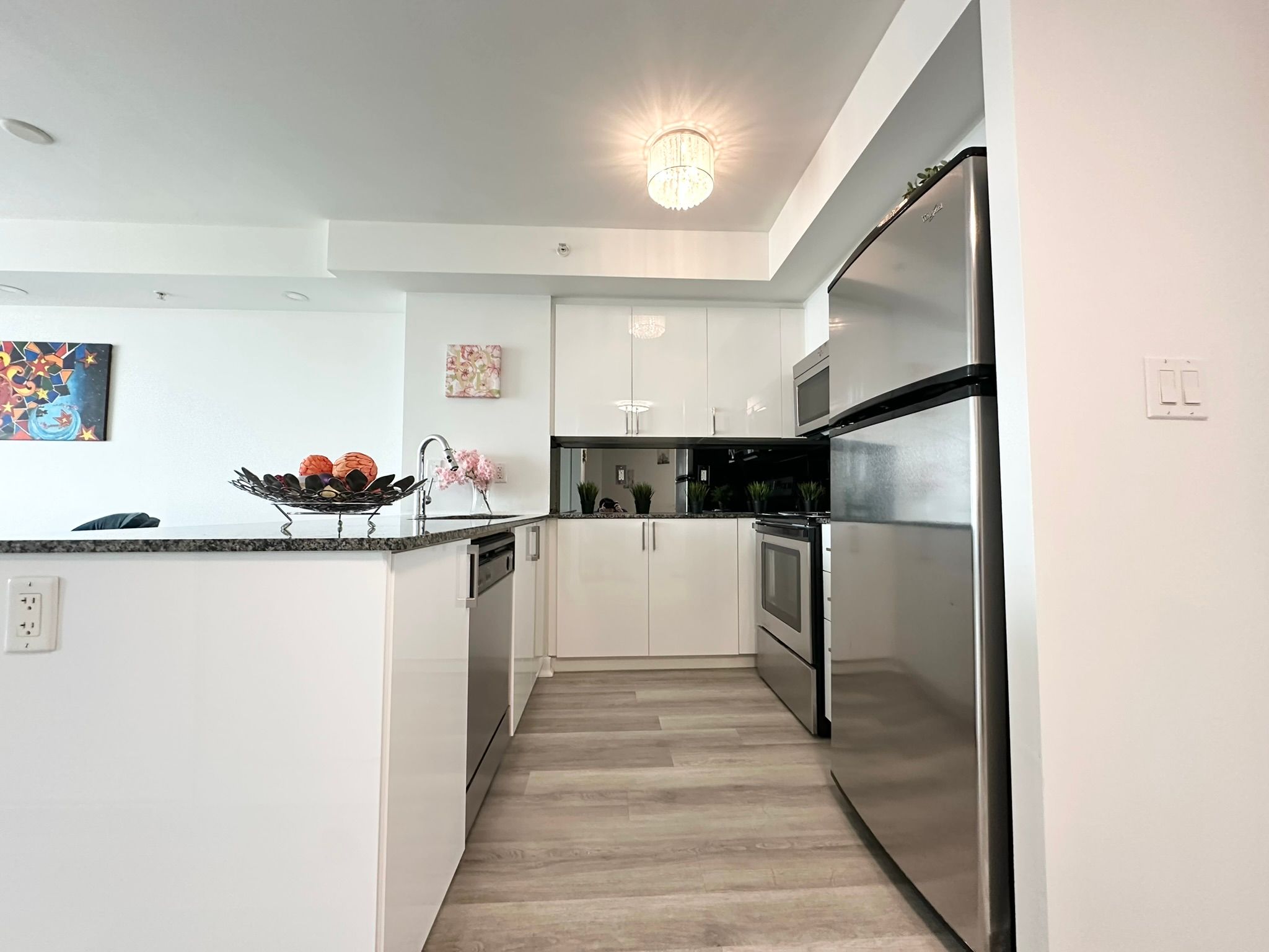 • Modern 1-bedroom + den condo with 595 sq ft of living space.