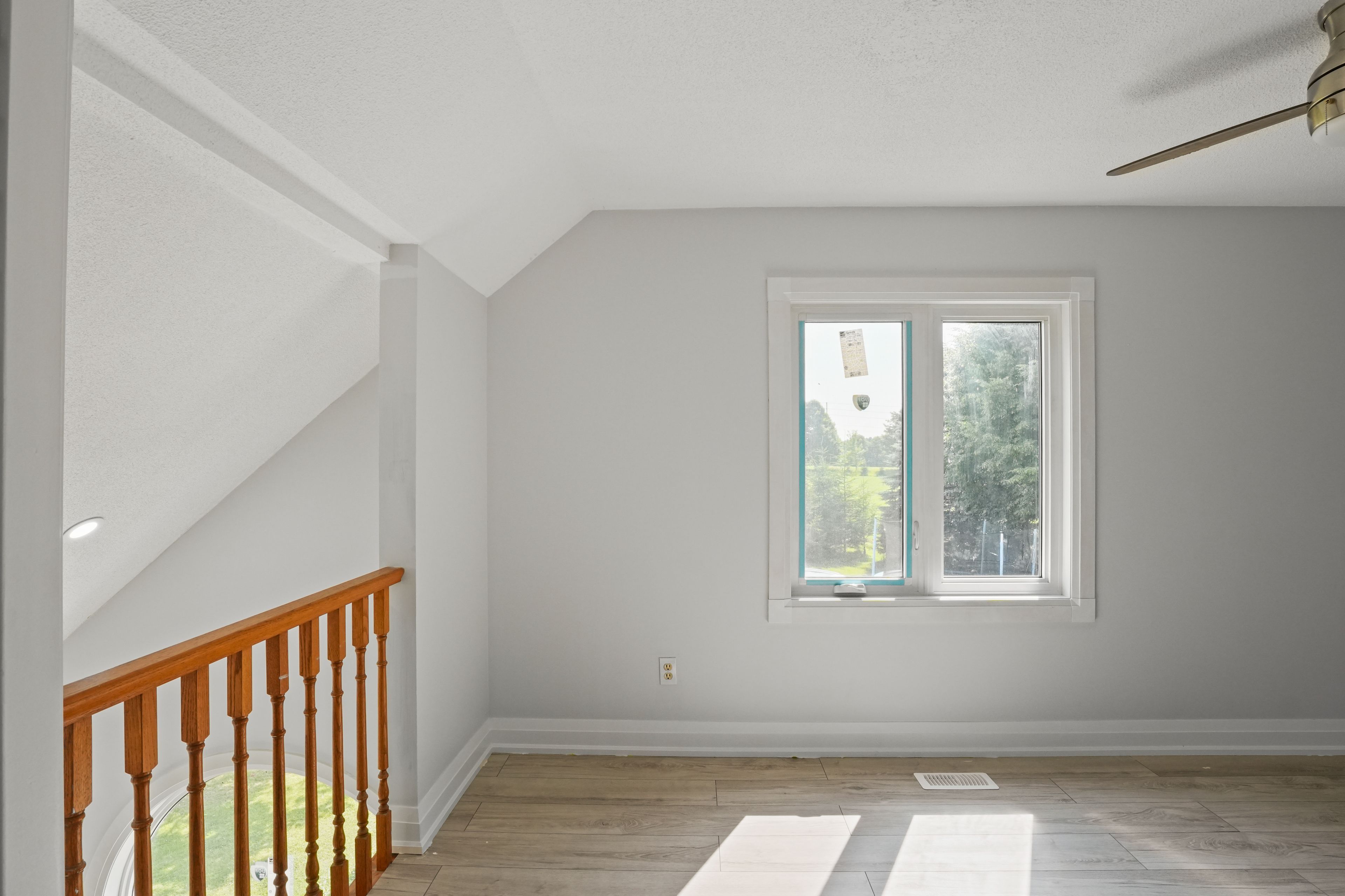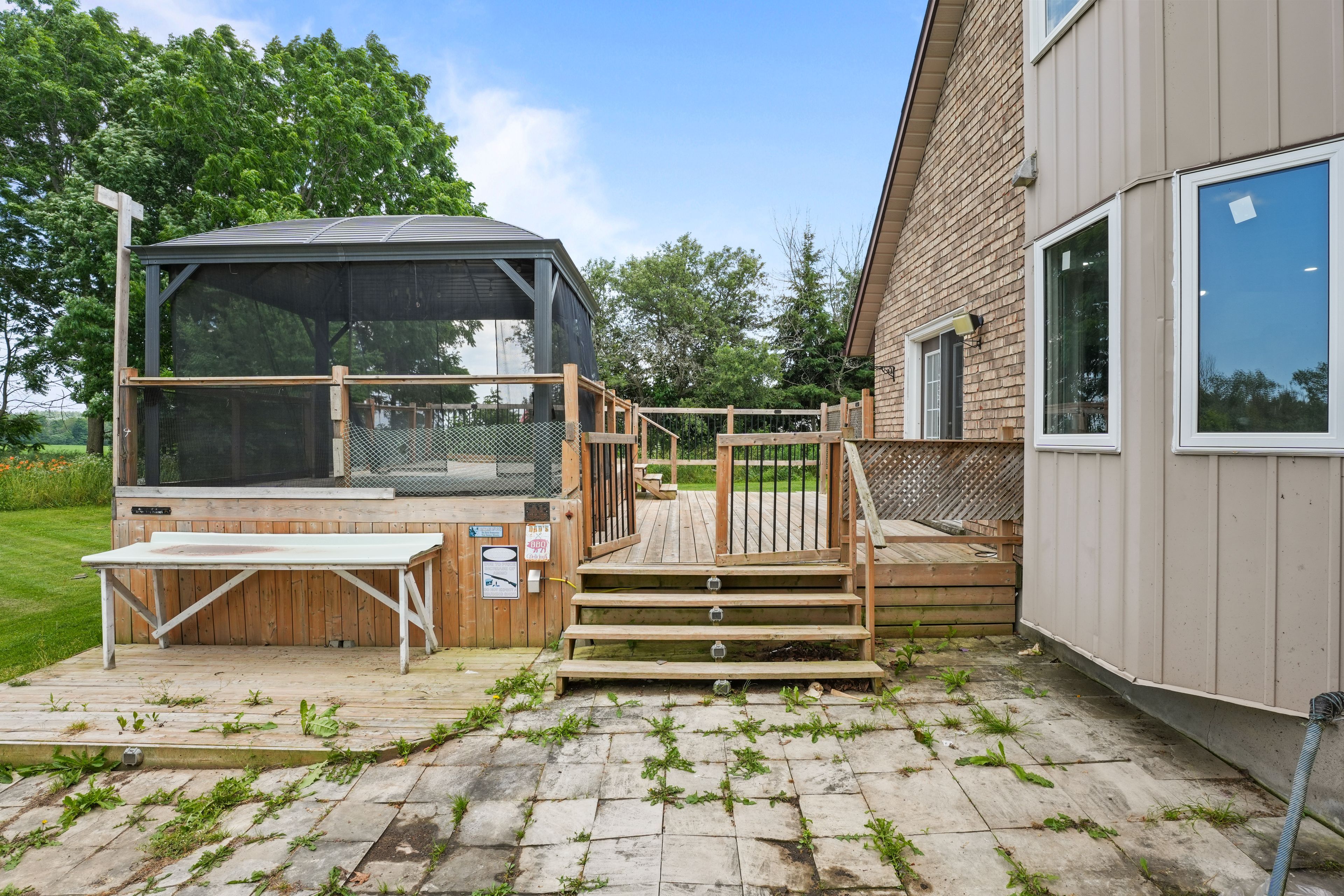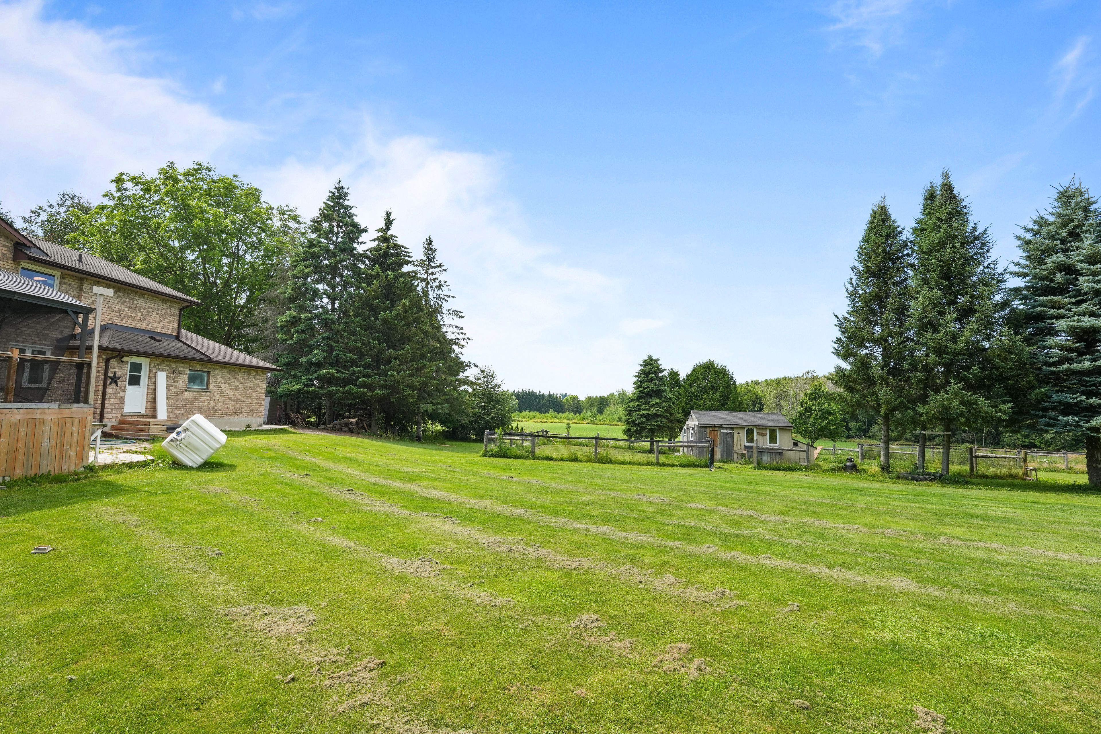 Come visit the tranquility of rural living on this stunning 47+ acre property, where mature woodlands, open fields, and meandering trails create a picturesque setting for outdoor adventures and peaceful moments alike. The beautifully renovated home offers 3+2 bedrooms and a bright, open-concept layout. The renovated kitchen flows seamlessly into the dining area and family room, warmed by a charming wood stove. A separate living room with soaring vaulted ceilings and expansive windows brings in an abundance of natural light and frames the scenic views. Downstairs, the finished basement with separate entrance includes 2 additional bedrooms, renovated 3 pce bath, laundry area, kitchenette and modest rec space. Step outside onto the spacious deck, ideal for summer barbecues. A barn/shed on the property opens up a world of possibilities for hobby farming, storage, or creative projects. If you've been longing for a serene country retreat with room to roam, this special property offers the space, beauty, and lifestyle you've been dreaming of. Some additional updates include - newly installed laminate flooring, freshly painted, many windows replaced, newer exterior gutters.