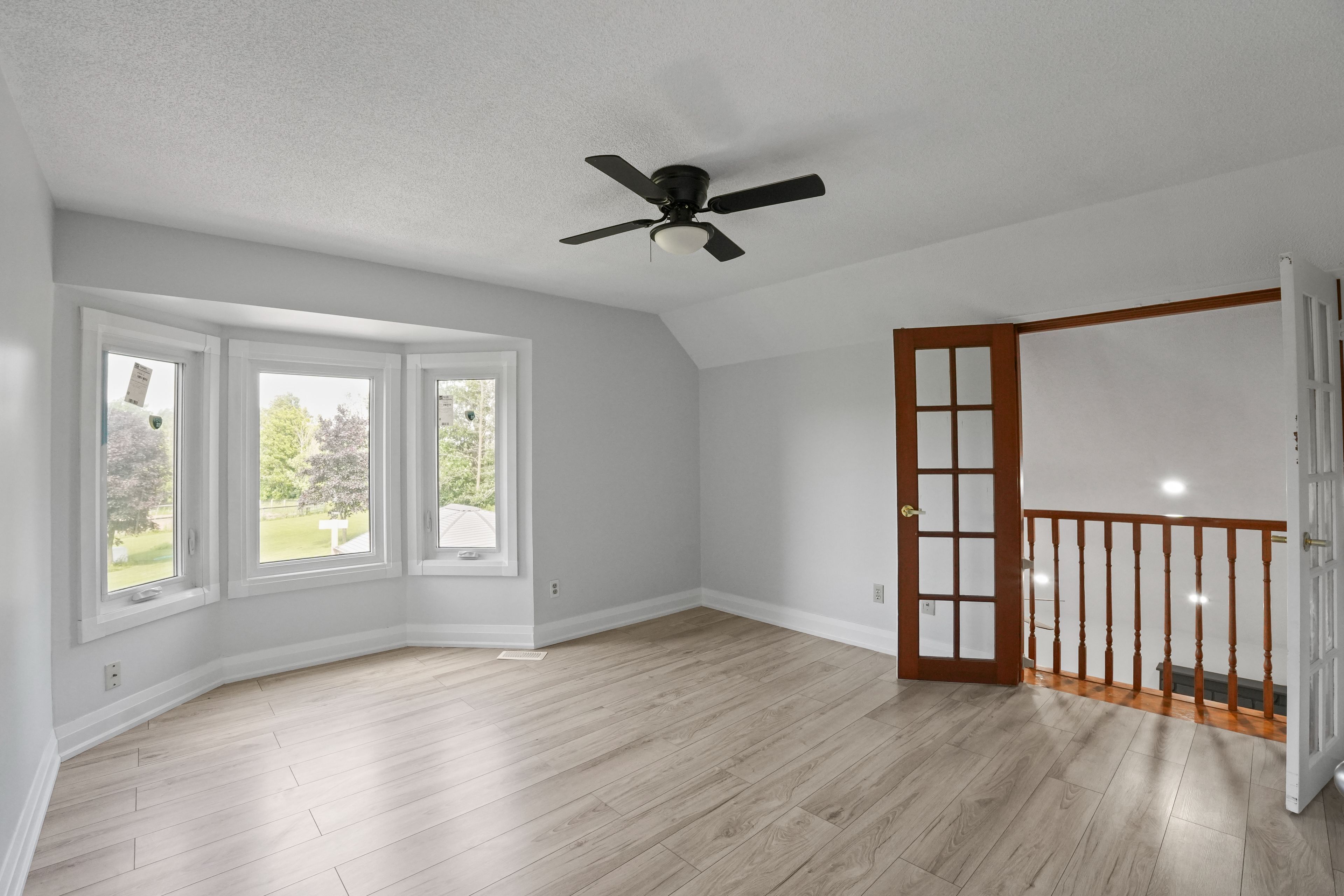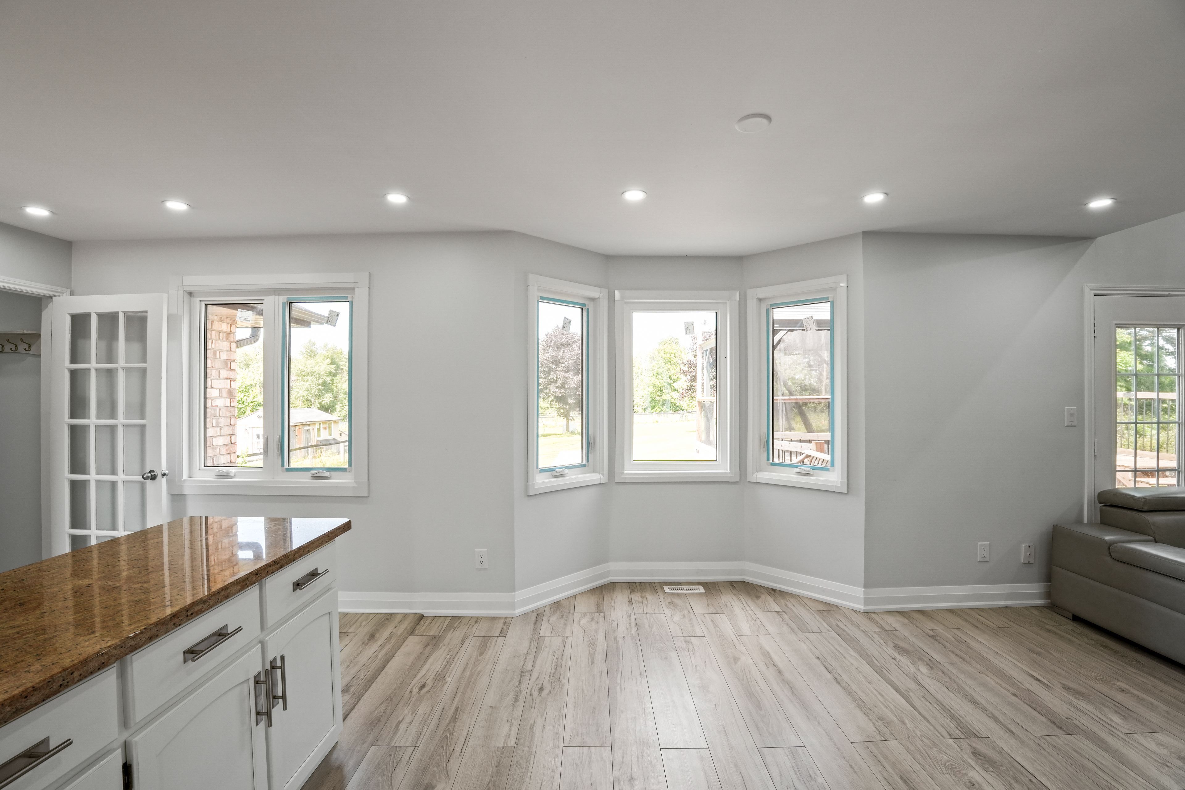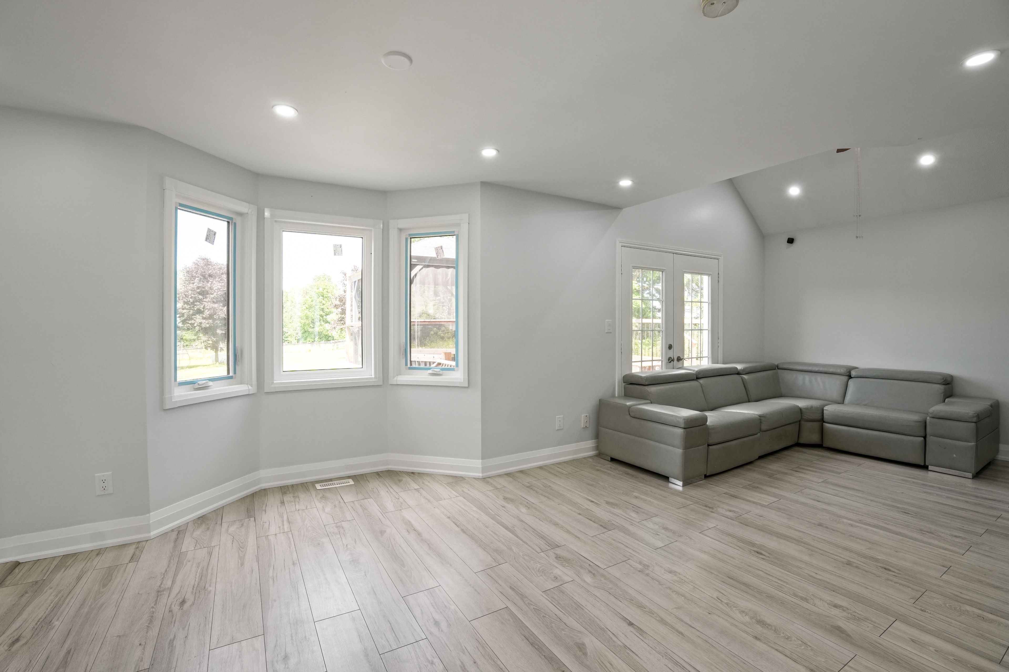 Come visit the tranquility of rural living on this stunning 47+ acre property, where mature woodlands, open fields, and meandering trails create a picturesque setting for outdoor adventures and peaceful moments alike. The beautifully renovated home offers 3+2 bedrooms and a bright, open-concept layout. The renovated kitchen flows seamlessly into the dining area and family room, warmed by a charming wood stove. A separate living room with soaring vaulted ceilings and expansive windows brings in an abundance of natural light and frames the scenic views. Downstairs, the finished basement with separate entrance includes 2 additional bedrooms, renovated 3 pce bath, laundry area, kitchenette and modest rec space. Step outside onto the spacious deck, ideal for summer barbecues. A barn/shed on the property opens up a world of possibilities for hobby farming, storage, or creative projects. If you've been longing for a serene country retreat with room to roam, this special property offers the space, beauty, and lifestyle you've been dreaming of. Some additional updates include - newly installed laminate flooring, freshly painted, many windows replaced, newer exterior gutters.