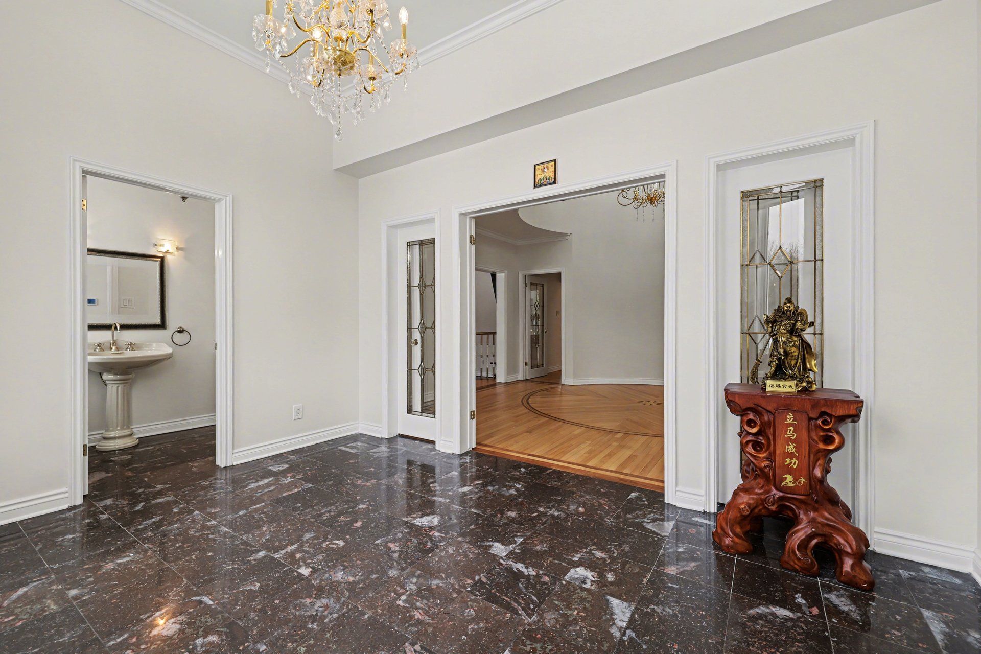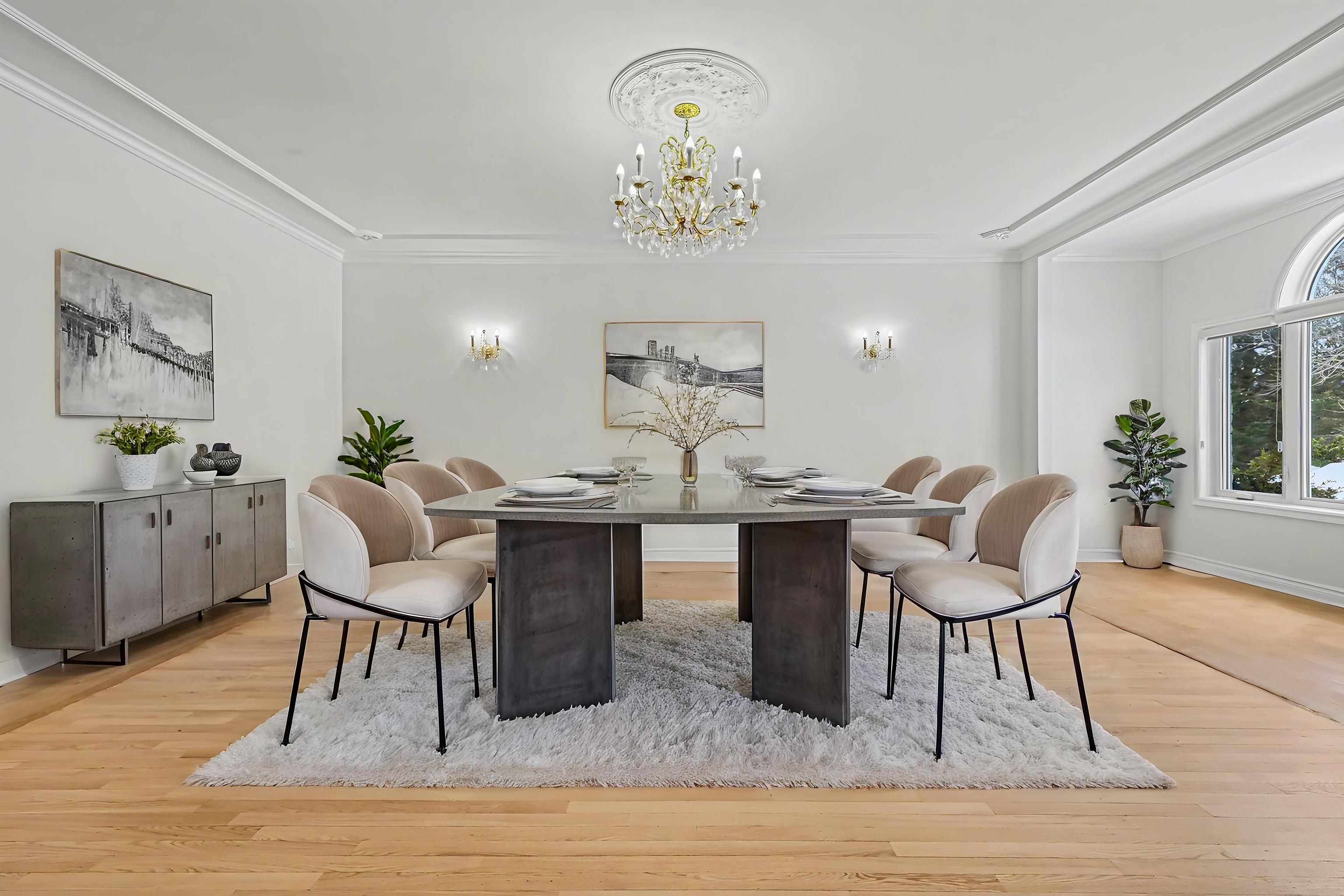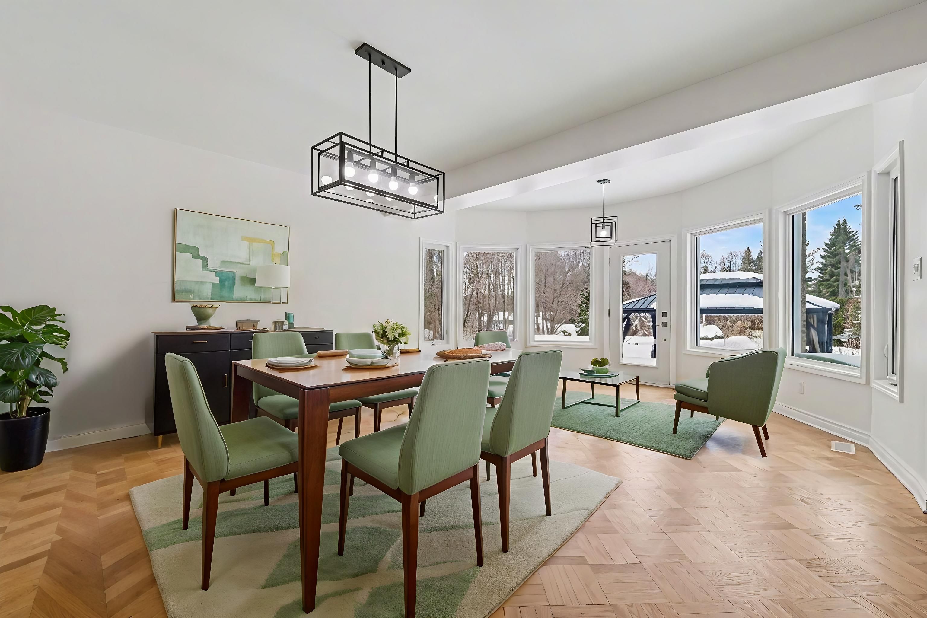 • Formal dining room fits twenty guests, perfect for entertaining.