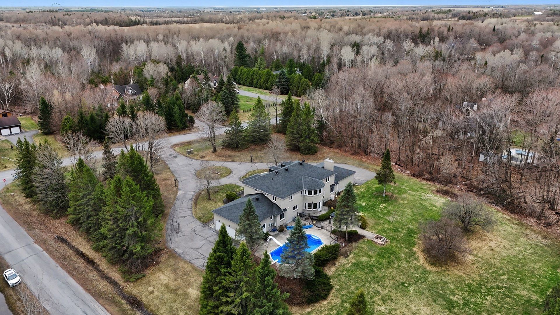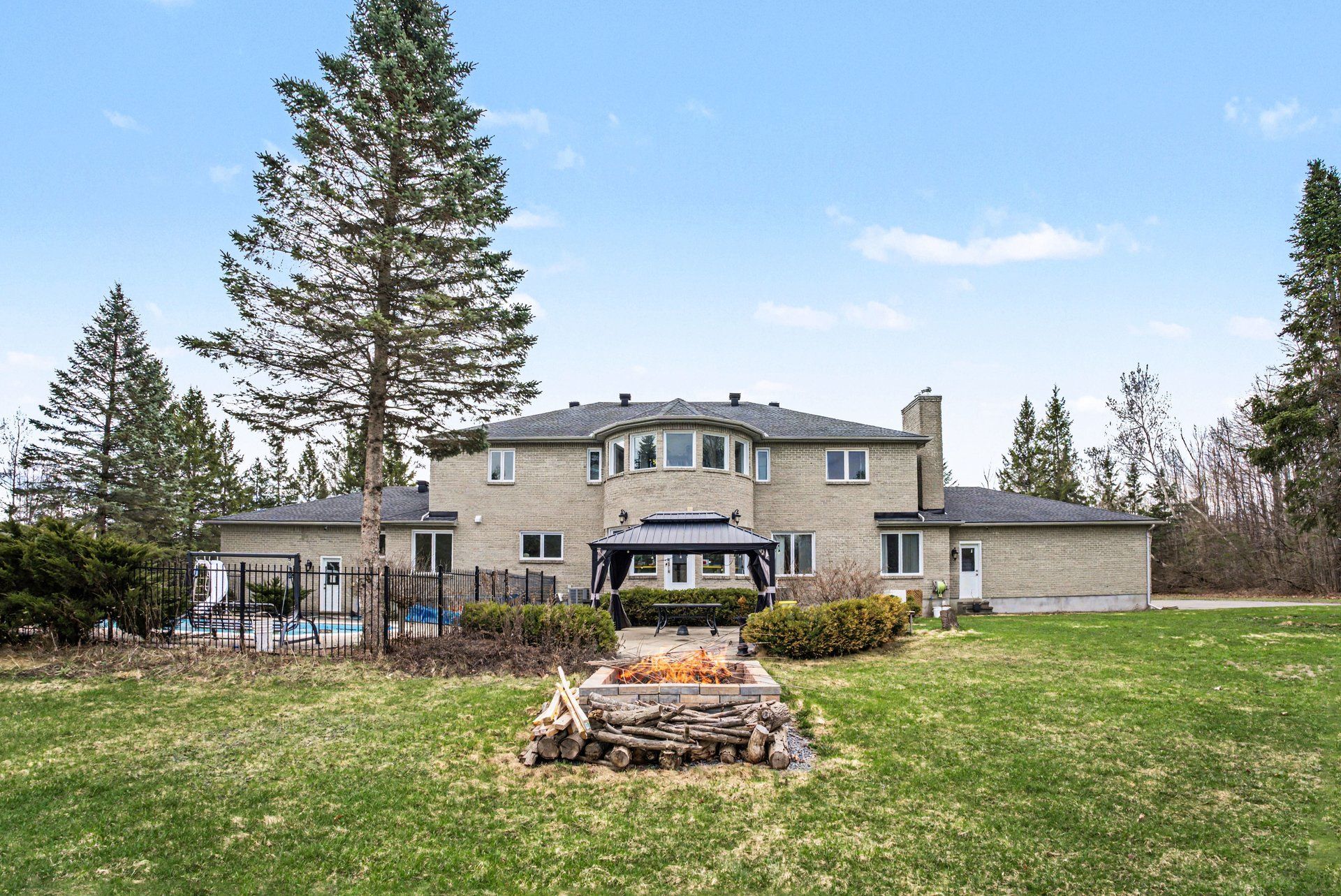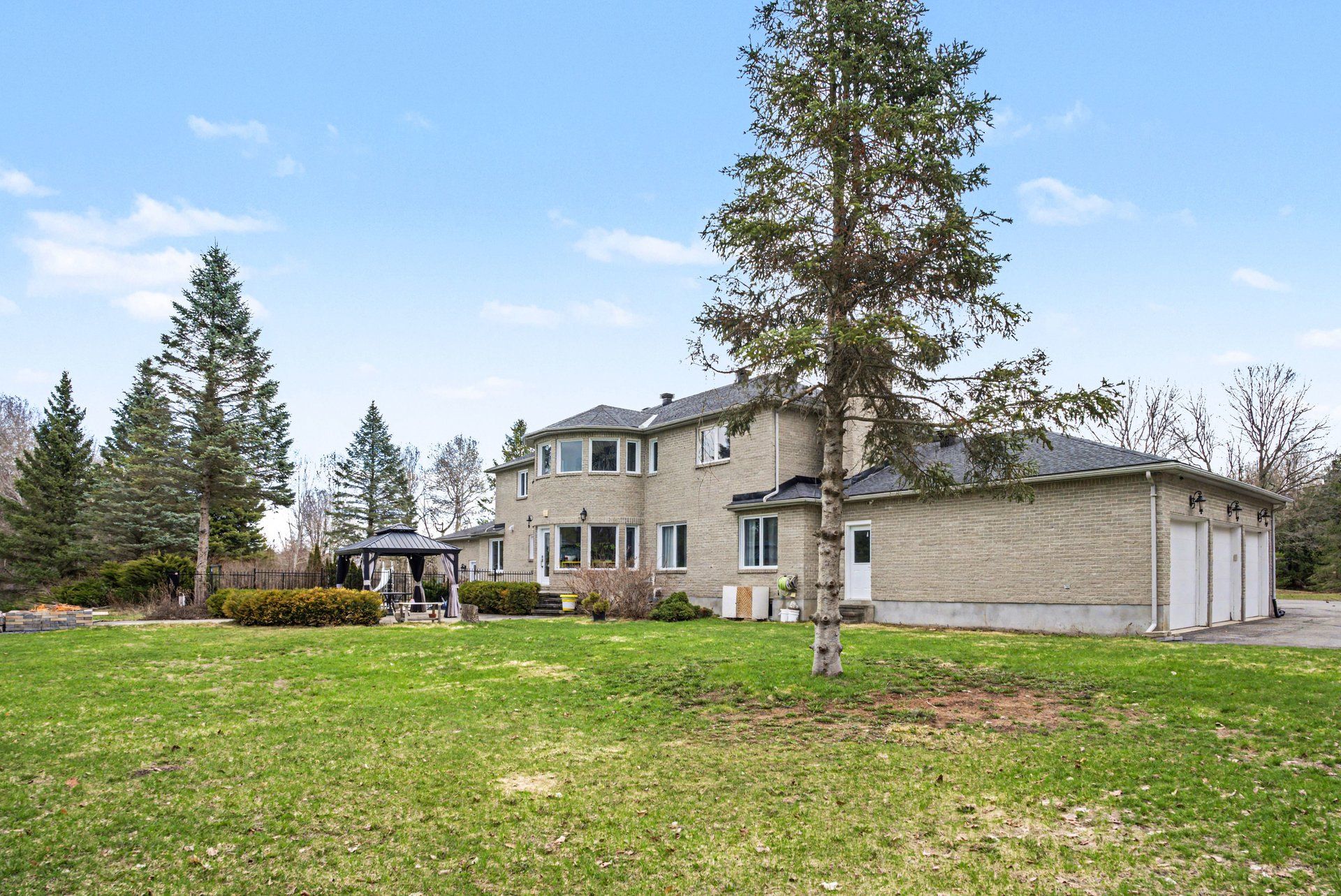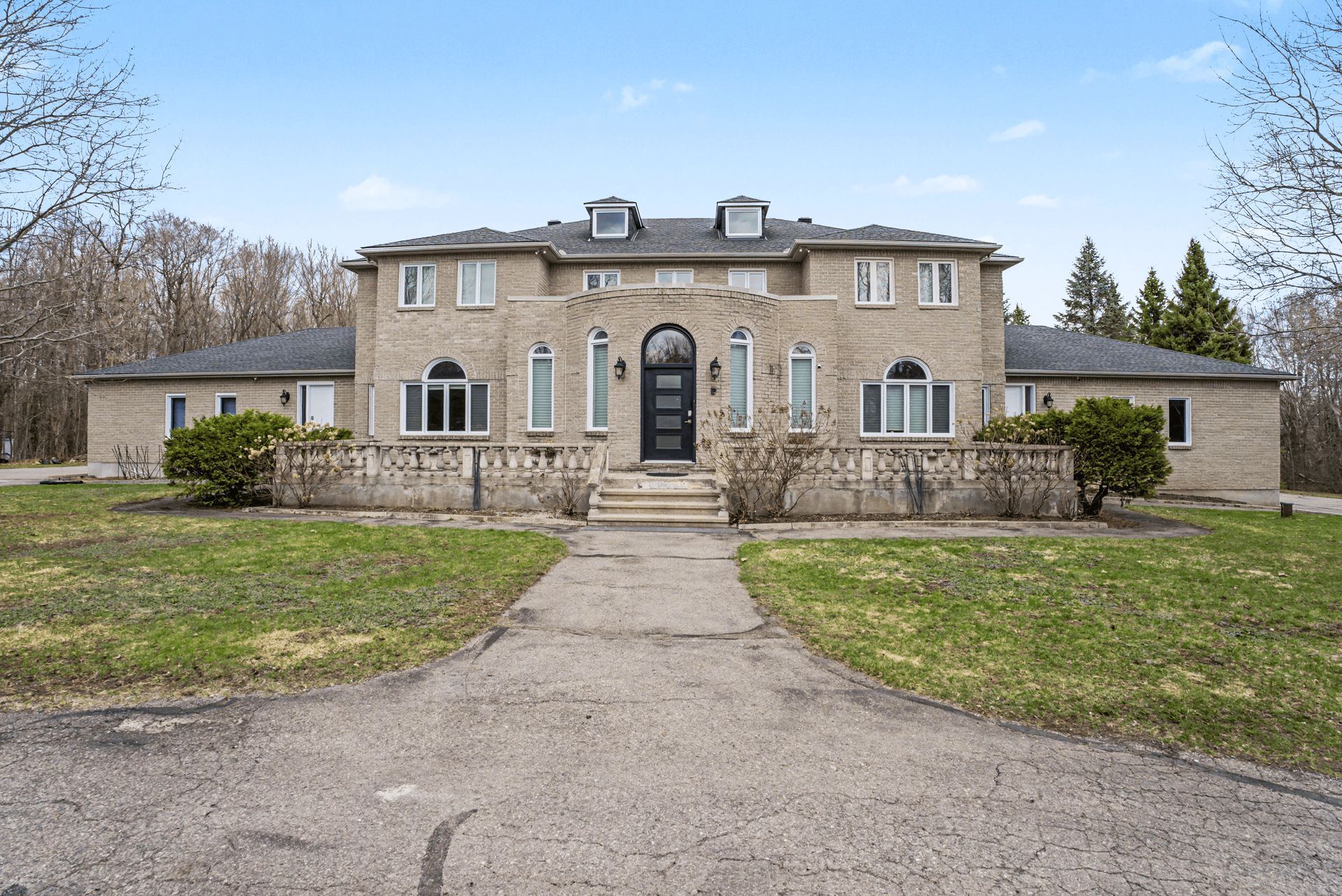 Welcome to your private estate in the heart of rideau forest, set on approximately 2 acres surrounded by mature trees and manicured grounds. Offering over 5,500 sq ft above grade, this impressive all brick two story home features 5 bedrooms and 7 bathrooms, with every bedroom complete with its own ensuite. A grand vaulted foyer sets the tone, leading into expansive principal rooms designed for both everyday living and large scale entertaining. The formal dining room comfortably accommodates twenty guests, while the kitchen and breakfast area overlook the rear gardens and inground gunite pool, creating a seamless indoor outdoor connection. The main level includes multiple living spaces, a den or optional bedroom, and elegant finishes throughout including hardwood flooring and crown moulding. Upstairs, the primary suite is a retreat of its own, featuring a marble appointed 5 piece ensuite, generous walk in closet, and a private sitting area framed by oversized windows. The fully finished lower level adds exceptional versatility with a sprawling recreation room, media space, full bath, additional bedroom, and direct access from the garage, ideal for extended family or guests. Car enthusiasts and collectors will appreciate the rare dual triple car garages with inside entry, offering parking for six vehicles. Major updates include roof, windows and exterior doors replaced in 2018, along with two high efficiency furnaces, two a/c units, and two hot water tanks. Outdoors, enjoy a 36' x 17' inground pool enclosed by elegant wrought iron fencing, expansive interlock, and lush lawns that offer both privacy and presence. A distinguished residence in one of the city's most sought after estate communities.